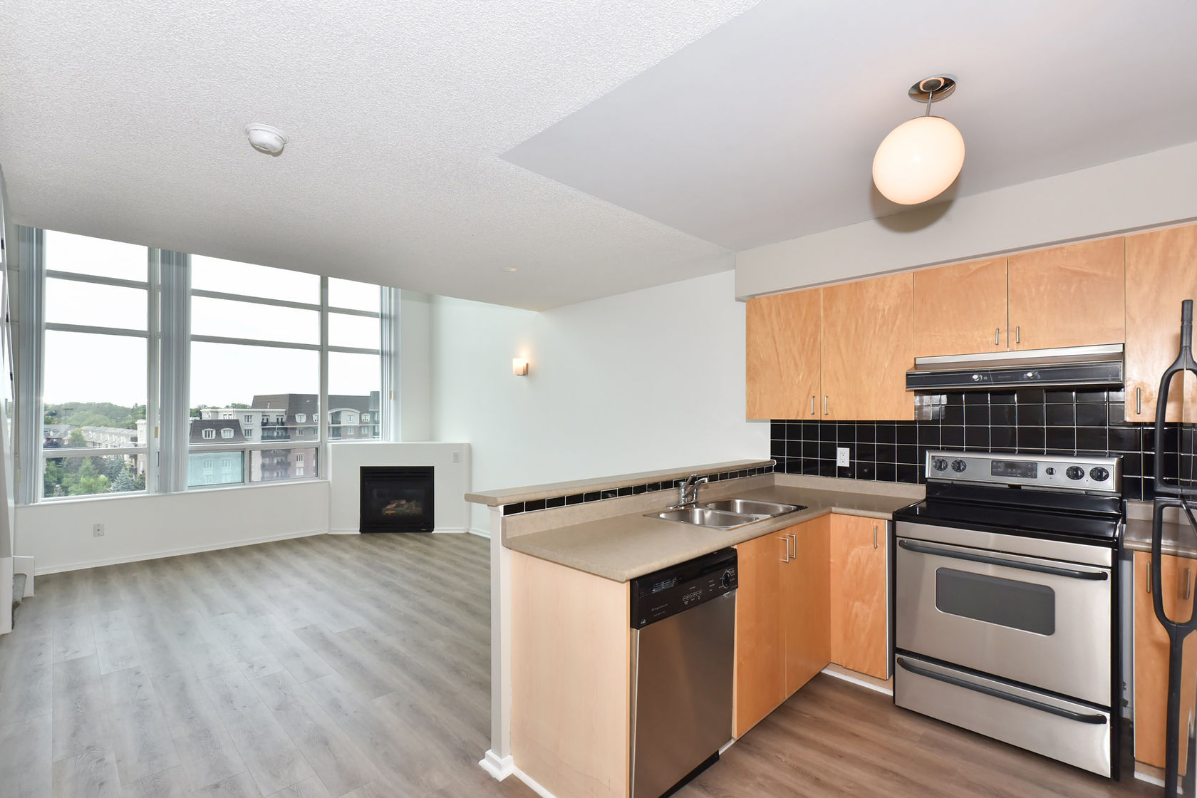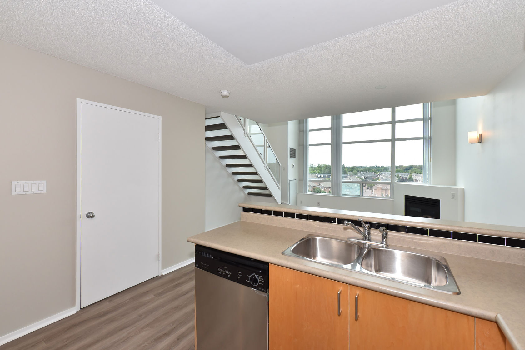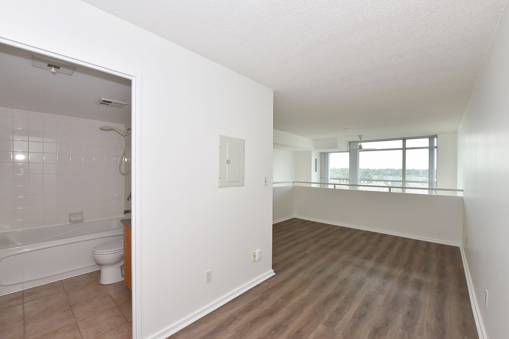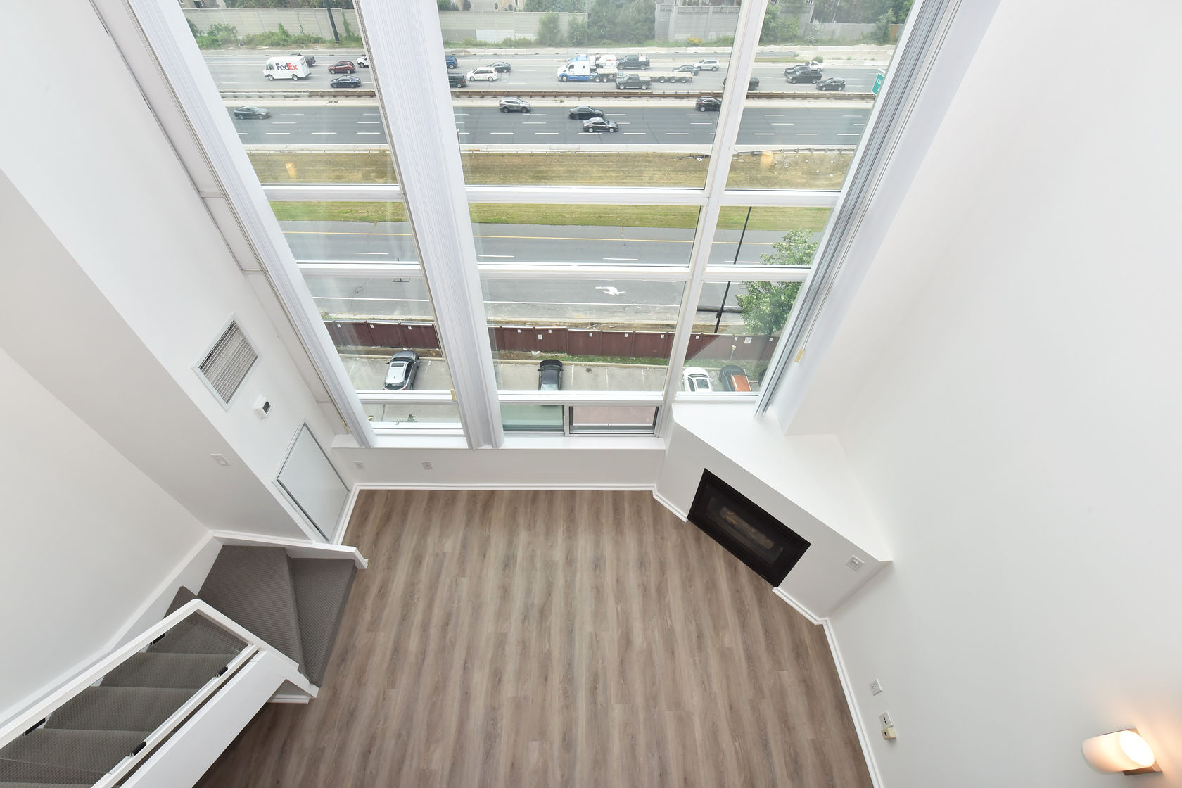 Welcome to Mystic Pointe! This stunning 2-storey loft boasts 17-foot floor-to-ceiling windows, providing plenty of natural light. The open-concept design features two washrooms and a gas fireplace. The main and upper levels have vinyl plank flooring. You'll have access to a variety of building amenities, including gatehouse security, a rooftop patio with BBQ and sundecks, a hot tub, sauna, squash court, billiards, and a lounge/party room. Parking is included in your rent. Located minutes from Lake, downtown Toronto, Queensway shops, and restaurants. This is the perfect place to call home!