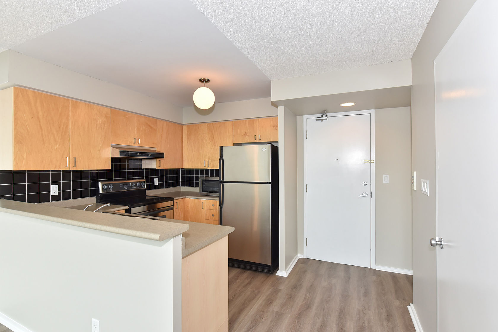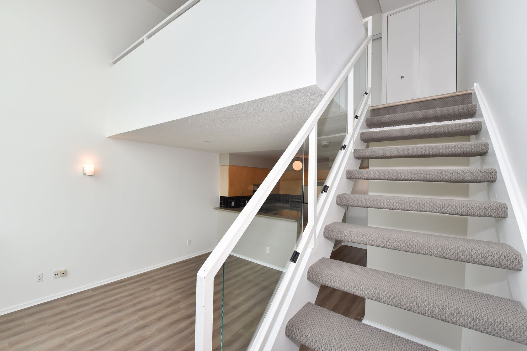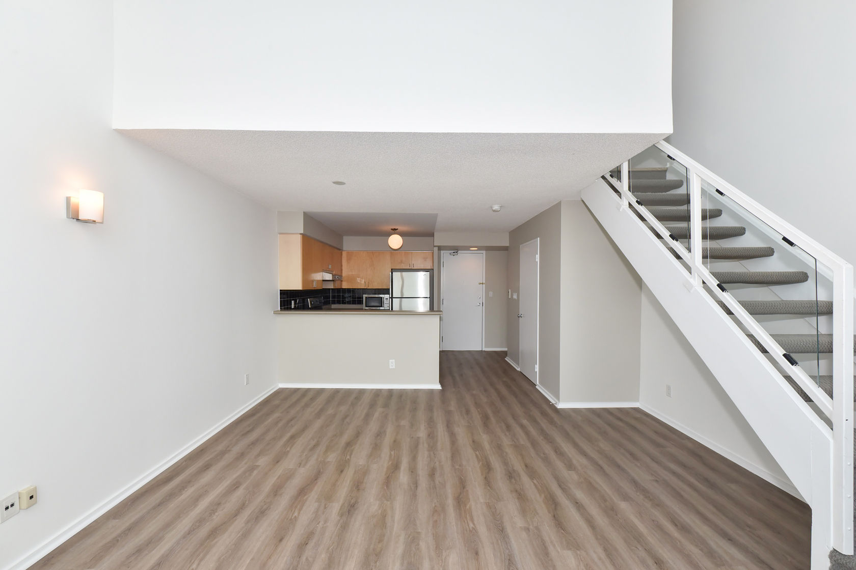 Welcome to Mystic Pointe! This stunning 2-storey loft boasts 17-foot floor-to-ceiling windows, providing plenty of natural light. The open-concept design features two washrooms and a gas fireplace. The main and upper levels have vinyl plank flooring. You'll have access to a variety of building amenities, including gatehouse security, a rooftop patio with BBQ and sundecks, a hot tub, sauna, squash court, billiards, and a lounge/party room. Parking is included in your rent. Located minutes from Lake, downtown Toronto, Queensway shops, and restaurants. This is the perfect place to call home!
