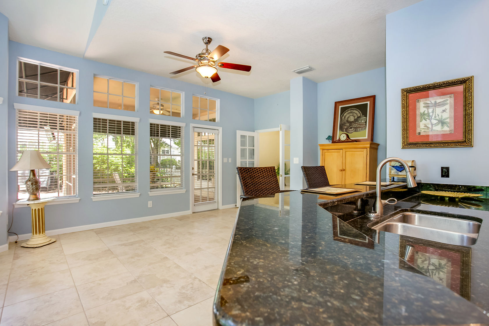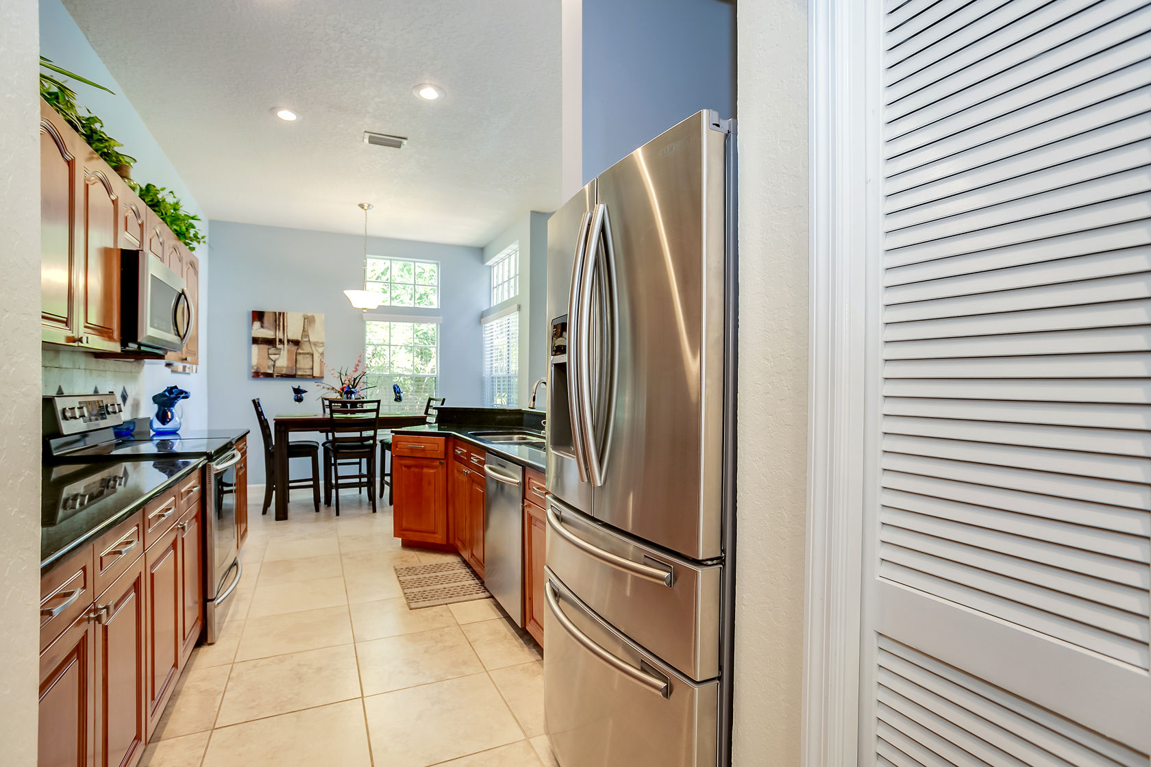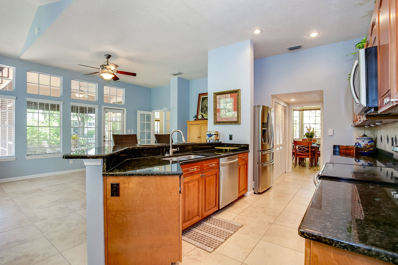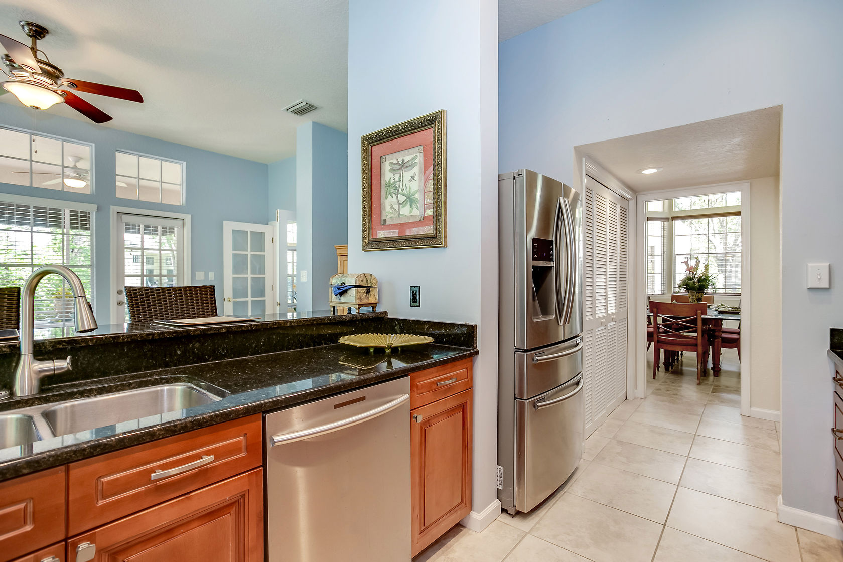 Beautiful home in gated community. Other special highlights include a charming gas fireplace, rich exposed brick, chic recessed lighting and ceiling fans, a Kenmore Elite washer/dryer, marble baths, tons of storage space, and ready-for-cable wiring in all rooms. Enjoy gatherings in the generously-sized living/dining area graced by a fireplace, wine cooler, huge windows and glass sliding doors that lead out to the rear deck. The recently-renovated gourmet kitchen will inspire your inner chef with its granite counters, marble center island with seating, large pantry, Kitchen Aid, GE Profile and Bosch stainless steel appliances.