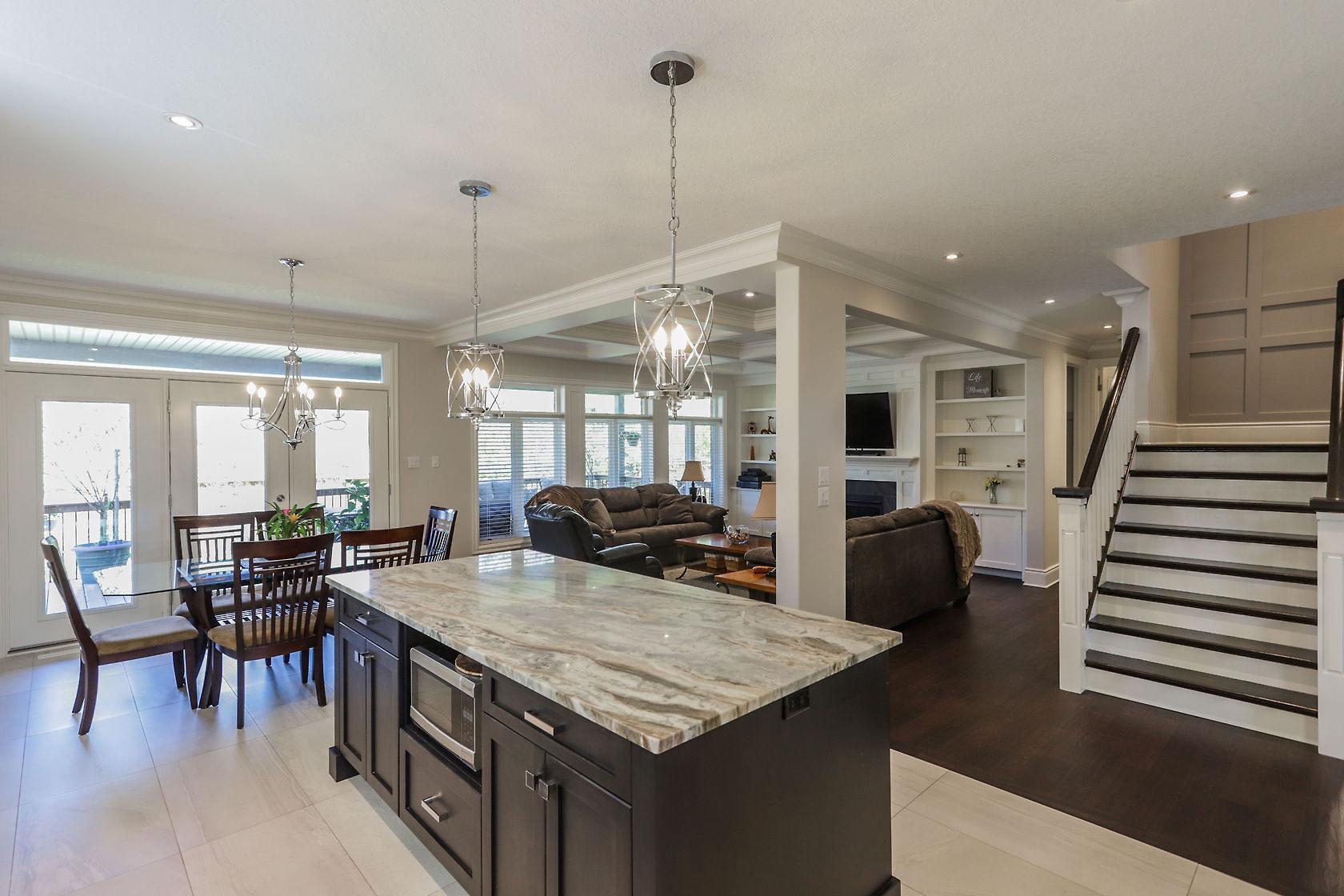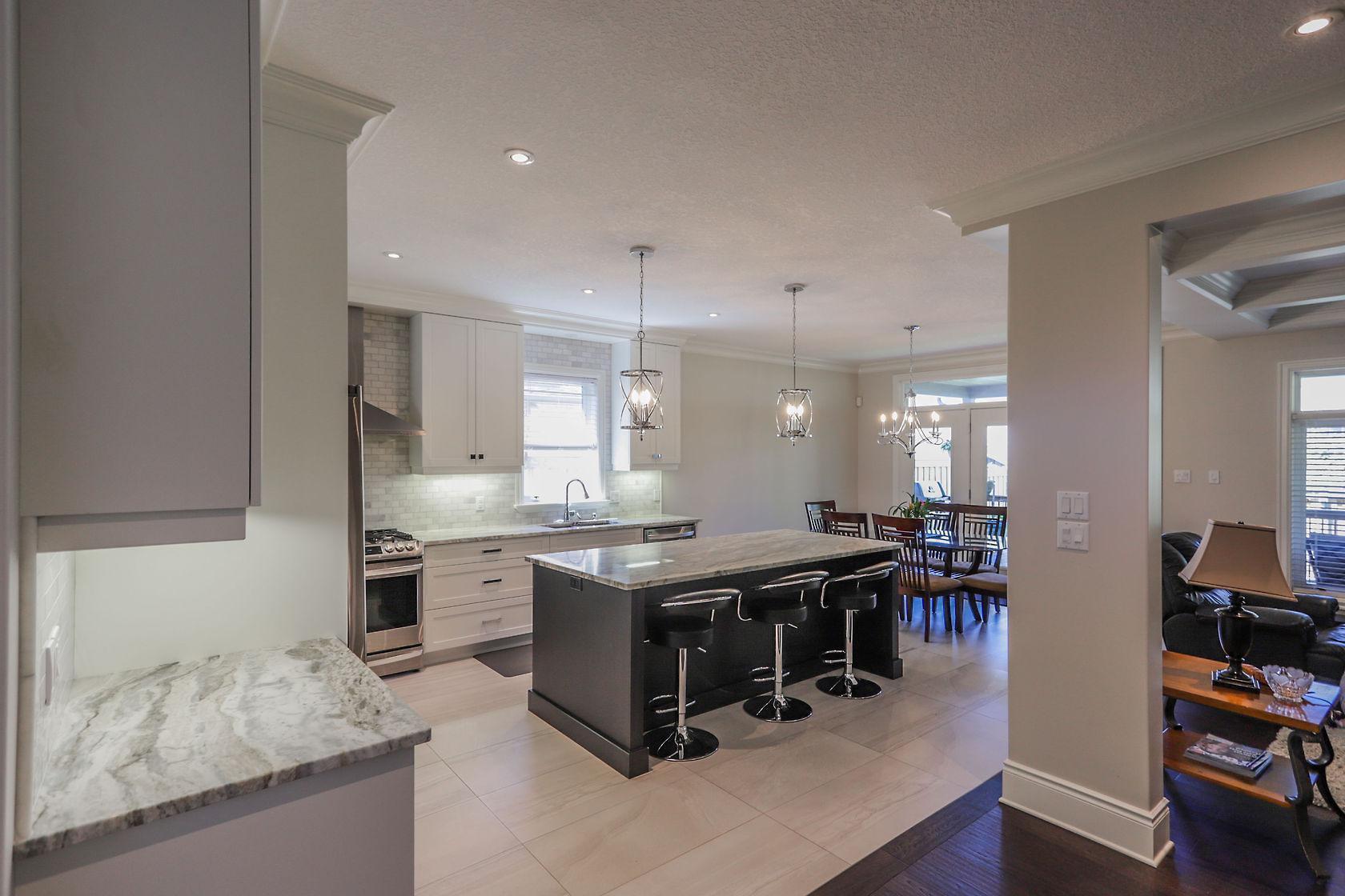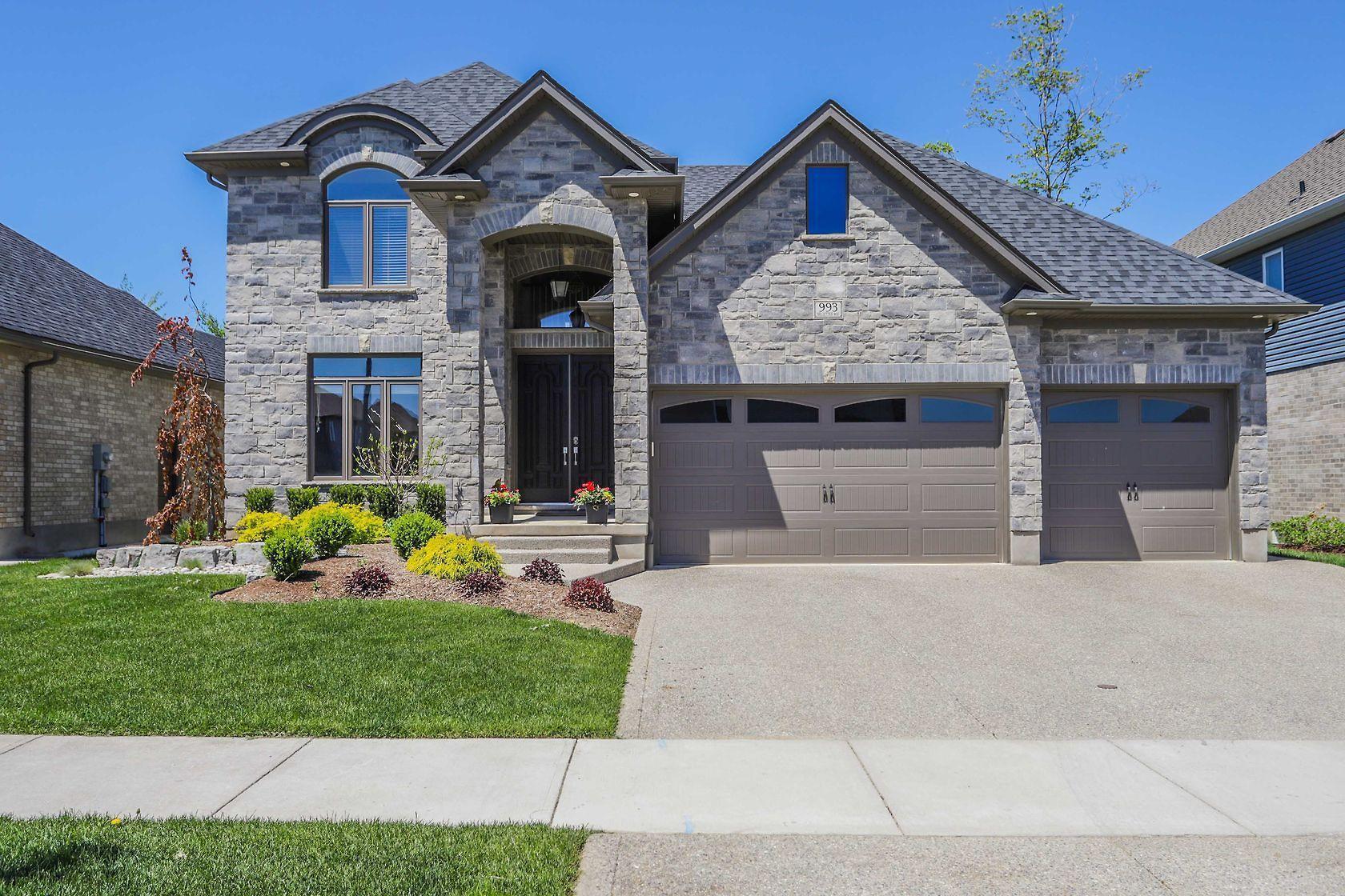 Spectacular home located in Northwest London with heated triple car garage. Interior features include a grand foyer, formal dining room, large bright windows, hardwood flooring throughout main/upper hall/master, crown molding, open concept layout, family room with inviting gas fireplace and custom built-ins, private den, 3pc bath on main includes glass shower, convenient main floor laundry. Beautiful white kitchen is sure to impress with large granite island, butler area and walk-in pantry. 2nd level offers 4 spacious bedrooms, 5 piece main bath, master retreat with spacious walk-in closet and deluxe spa 5pc ensuite. Finished lower adds large games/rec room with wet bar, 3pc bath & 5th bedroom. Large