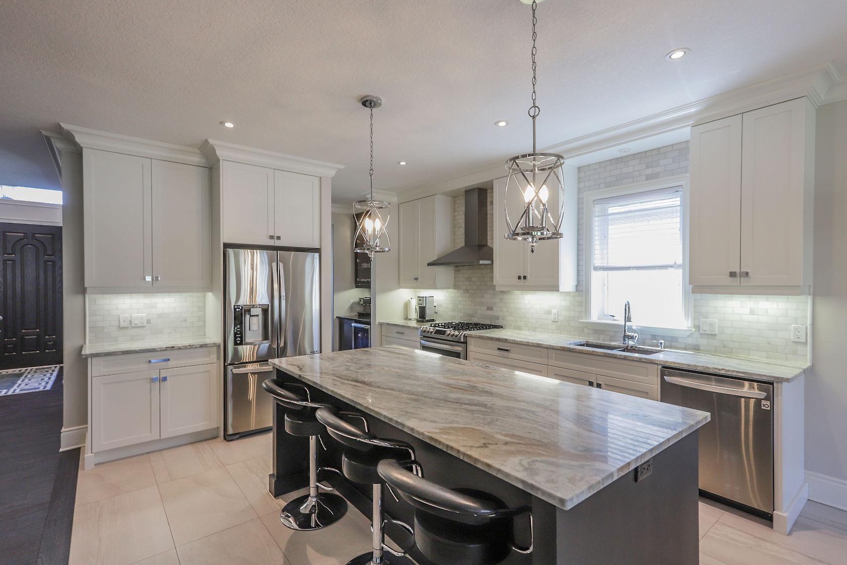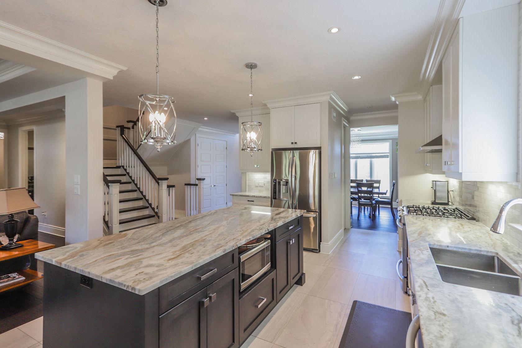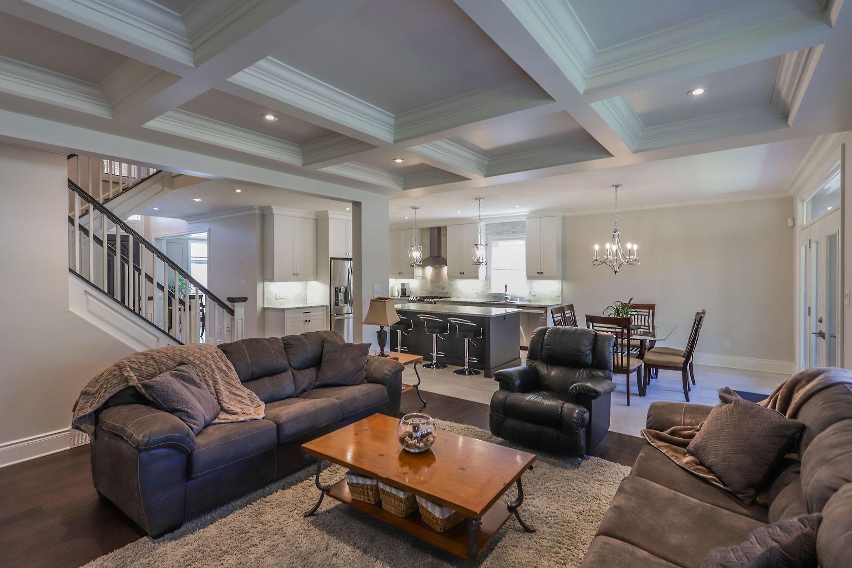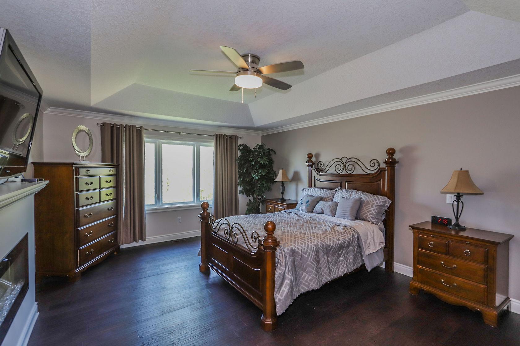 Spectacular home located in Northwest London with heated triple car garage. Interior features include a grand foyer, formal dining room, large bright windows, hardwood flooring throughout main/upper hall/master, crown molding, open concept layout, family room with inviting gas fireplace and custom built-ins, private den, 3pc bath on main includes glass shower, convenient main floor laundry. Beautiful white kitchen is sure to impress with large granite island, butler area and walk-in pantry. 2nd level offers 4 spacious bedrooms, 5 piece main bath, master retreat with spacious walk-in closet and deluxe spa 5pc ensuite. Finished lower adds large games/rec room with wet bar, 3pc bath & 5th bedroom. Large
