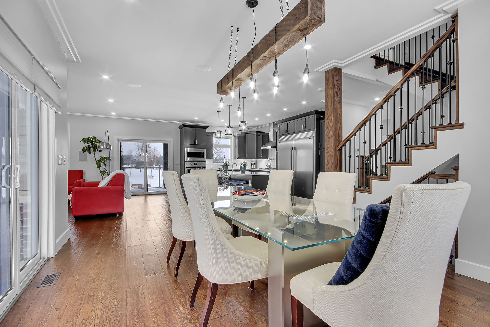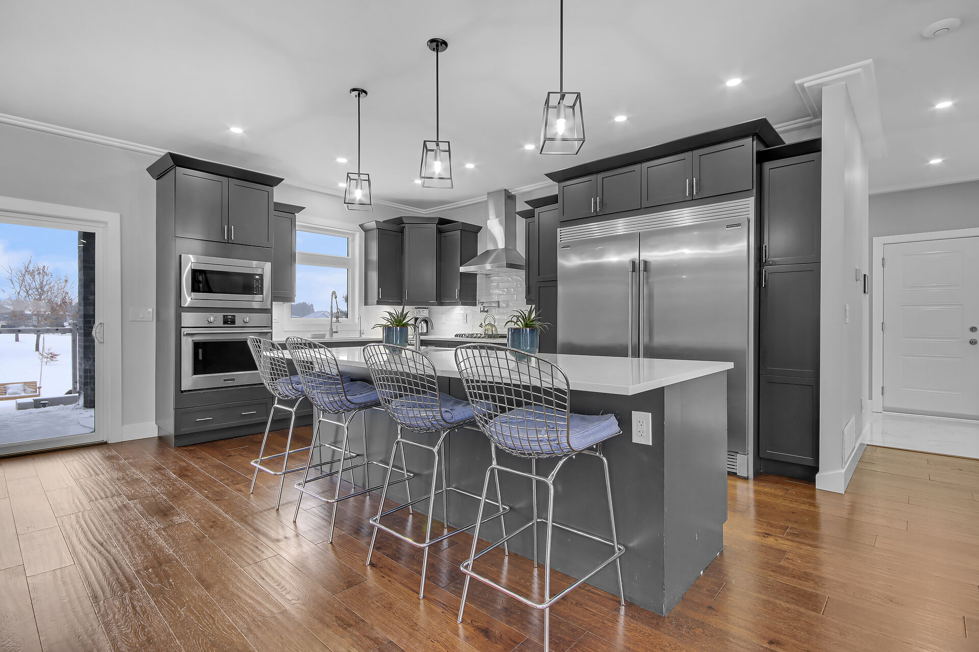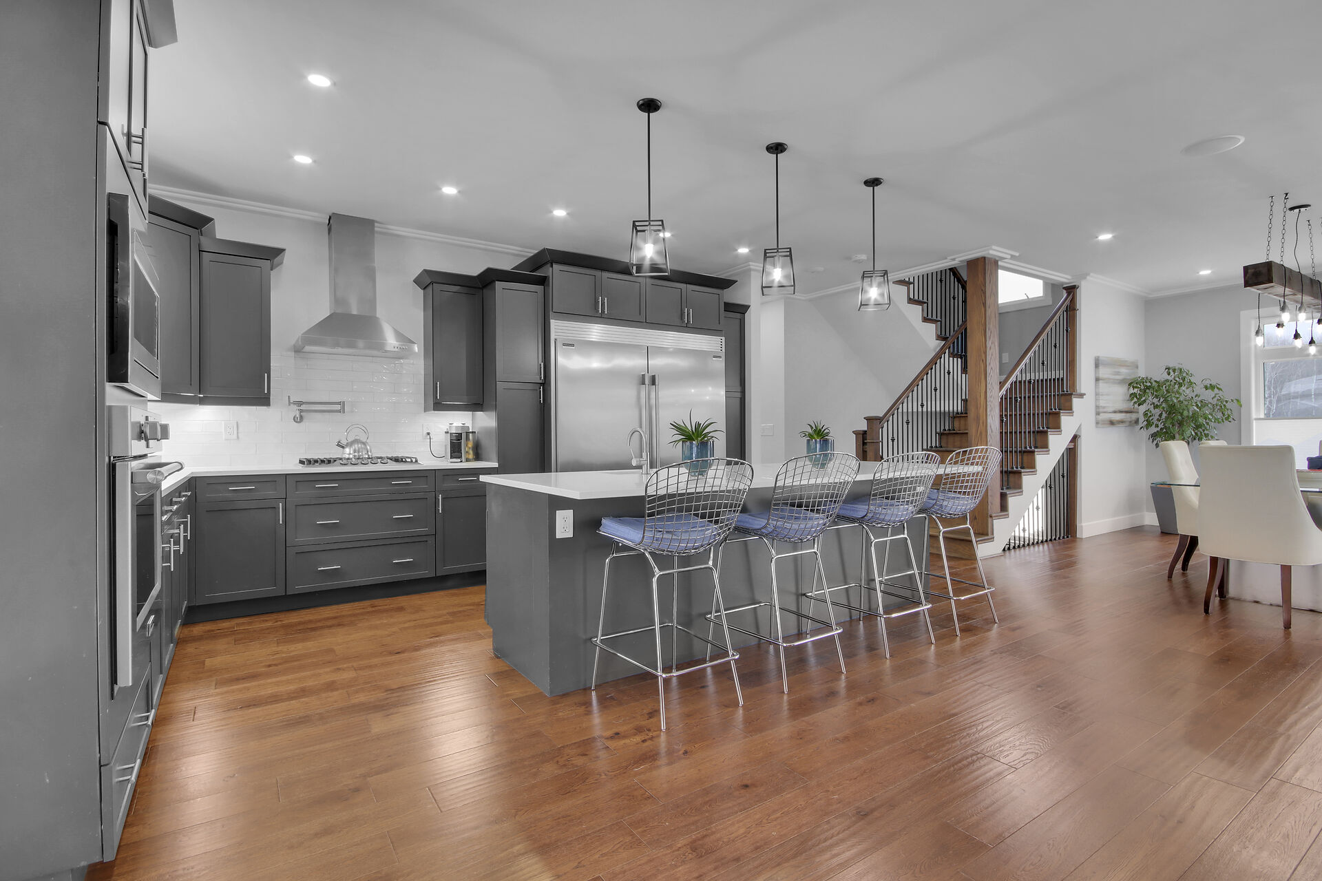 This custom built home is 3 years new offering spectacular open concept. Fabulous kitchen with beautiful appliances & large quartz entertaining/eating area. The is a SMART home with electrical, music, home security & heating all operating from either a wall panel or your cell phone. This home has been designed for a growing family. Built using the finest building supplies such as wood base for the roof rather than particle board. Exceptional for the size of this magnificent home. The bedrooms all feature oversized closets & banks of windows. The lower level is finished with a full home gym offering bright windows and high ceilings as well. There is also a 4th bedroom in the lower level, bright & spacious.