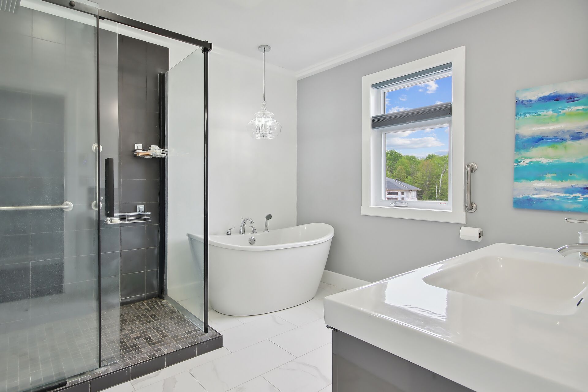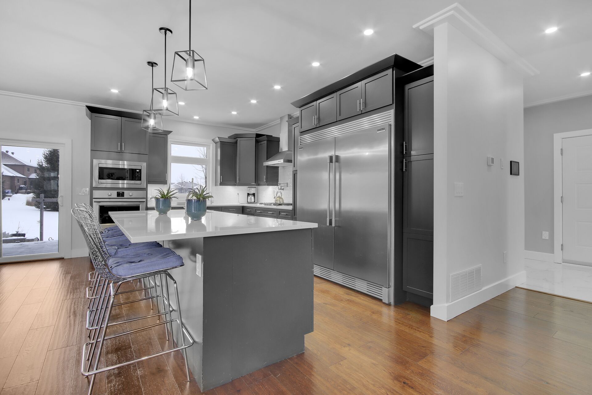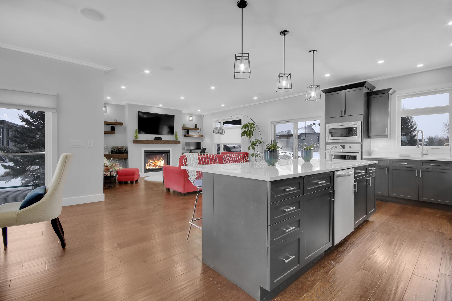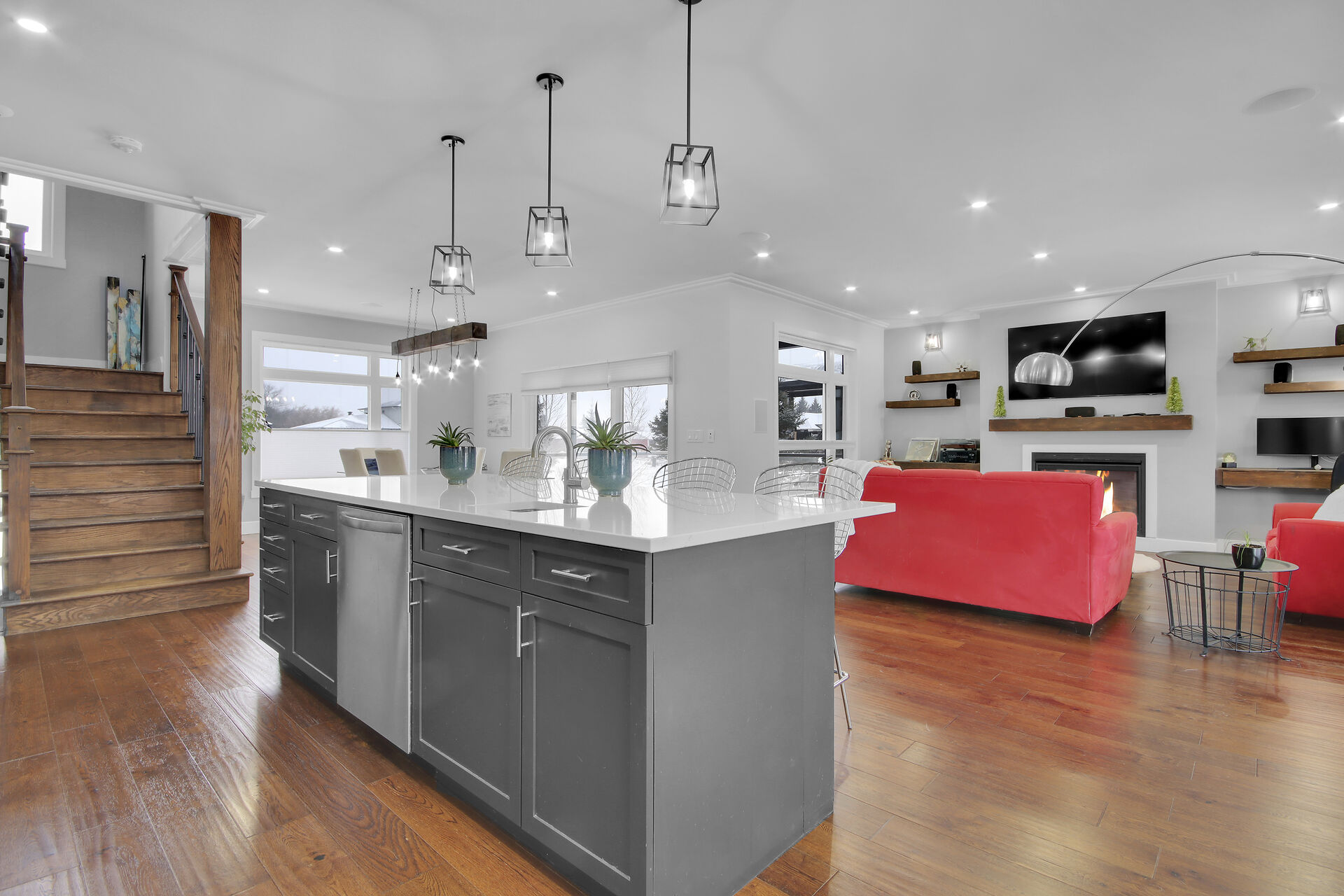 This custom built home is 3 years new offering spectacular open concept. Fabulous kitchen with beautiful appliances & large quartz entertaining/eating area. The is a SMART home with electrical, music, home security & heating all operating from either a wall panel or your cell phone. This home has been designed for a growing family. Built using the finest building supplies such as wood base for the roof rather than particle board. Exceptional for the size of this magnificent home. The bedrooms all feature oversized closets & banks of windows. The lower level is finished with a full home gym offering bright windows and high ceilings as well. There is also a 4th bedroom in the lower level, bright & spacious.