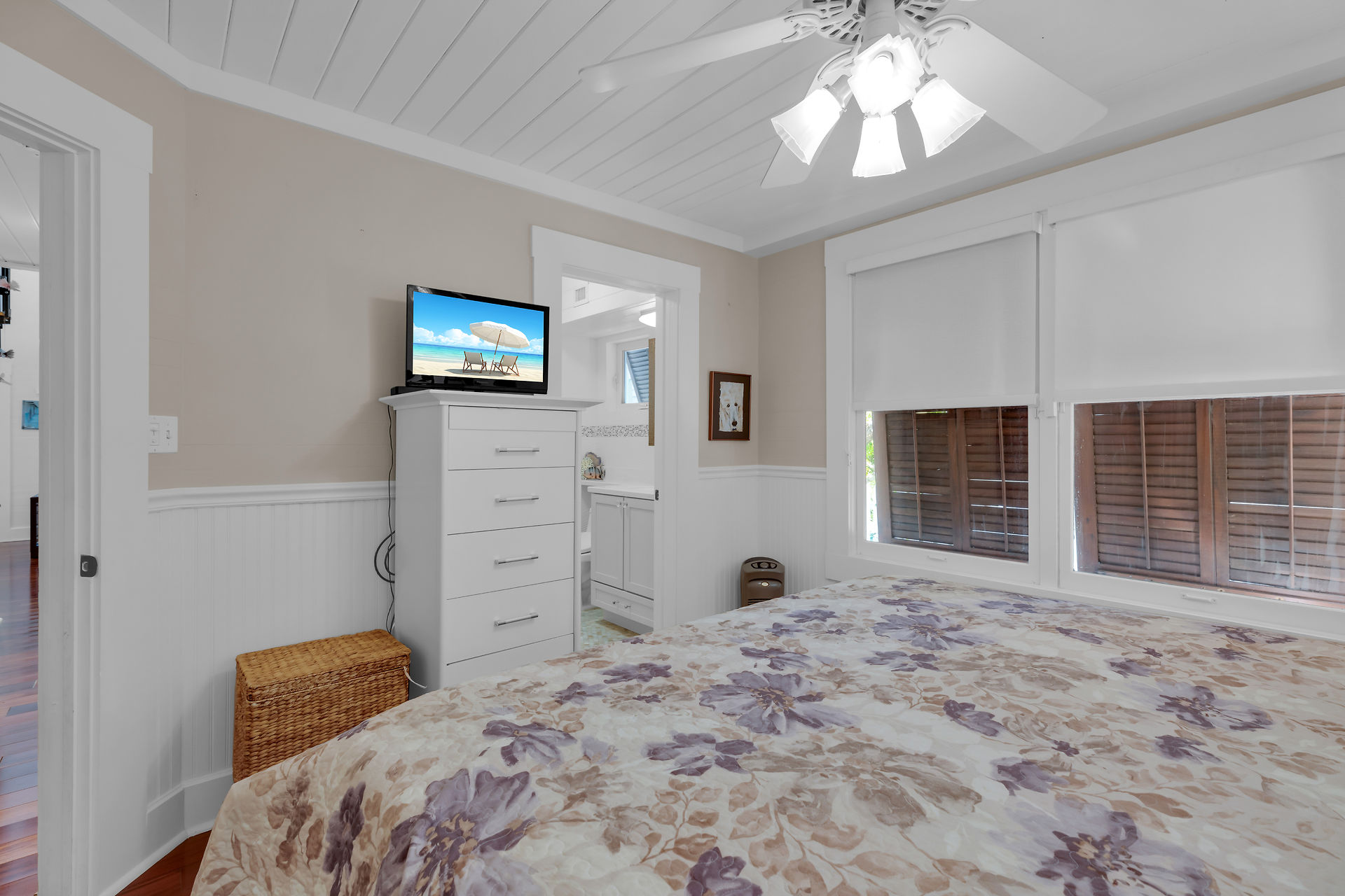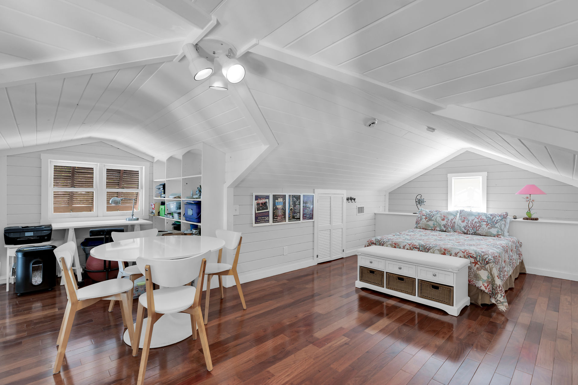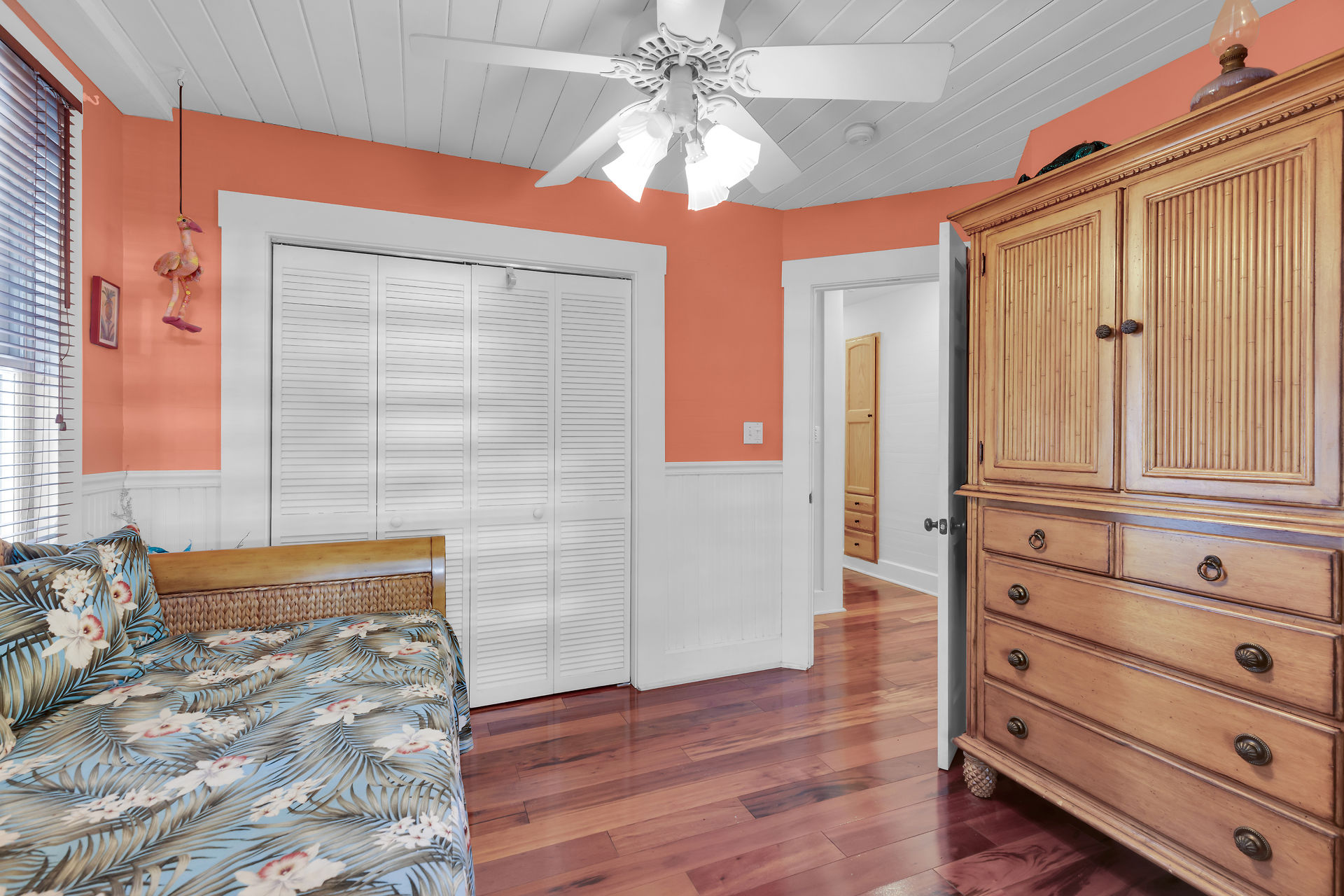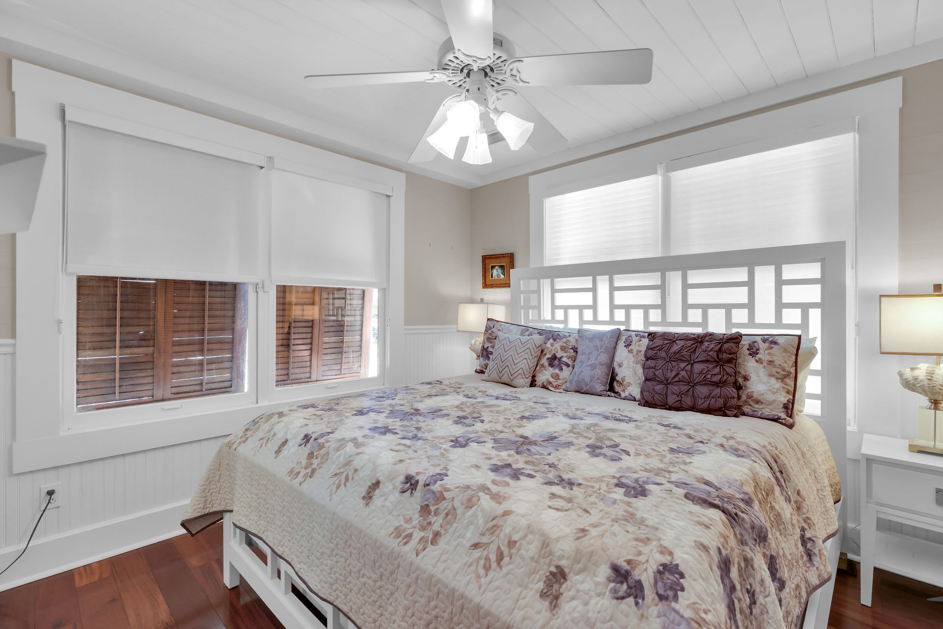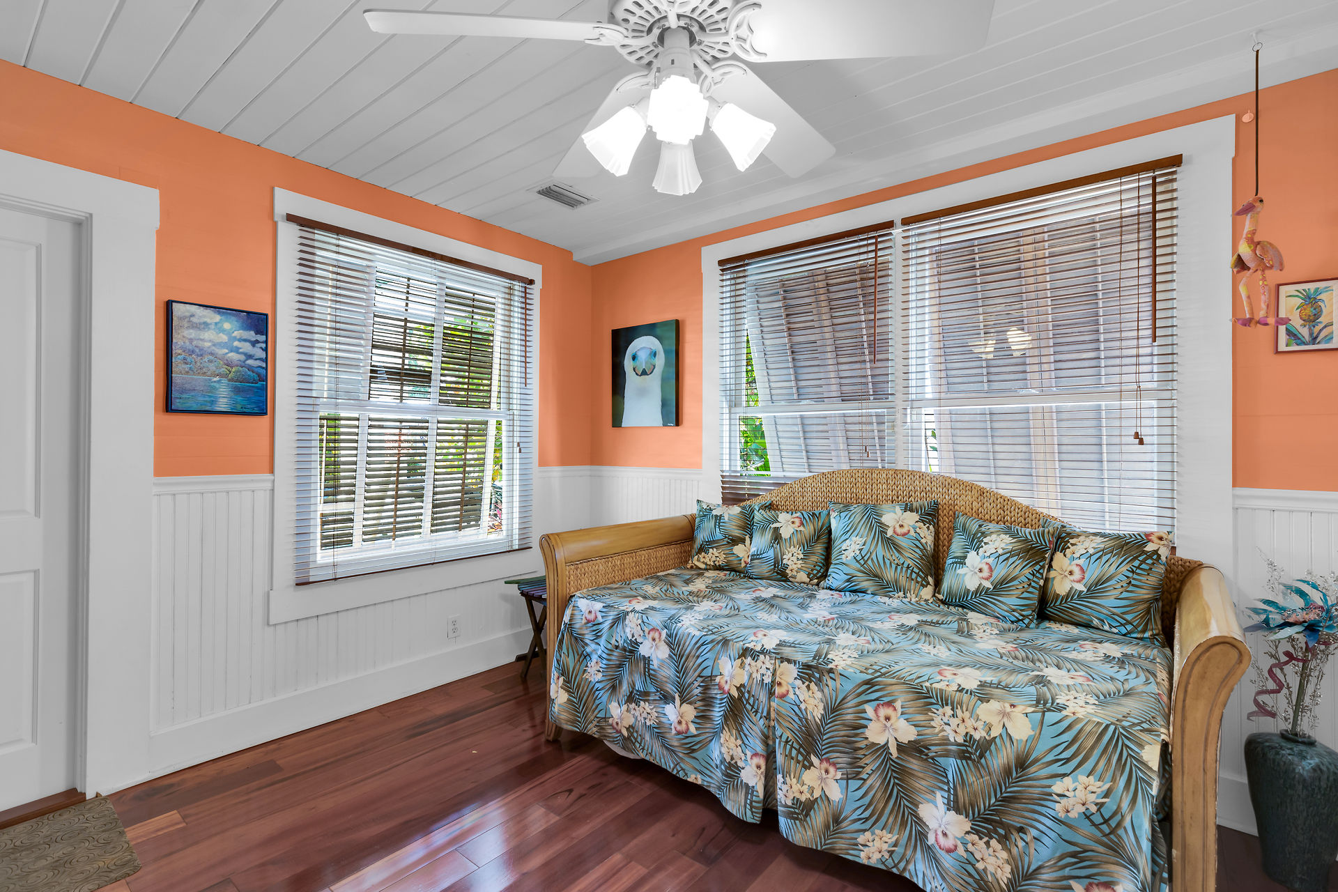 Welcome to this charming home, nestled in one of the most prestigious, highly sought after neighborhoods in Key West. It features 3 bedrooms, 2 full baths and one 1/2 bath. Relax or entertain in the open floor plan living area. 2 sets of french doors flow seamlessly to the wraparound porch, pool and guest cottage/studio. Access to the 1/2 bath from the back porch and guest cottage make spending time in the tropical pool area a pleasure. Dade county pine and a stunning cathedral ceiling add to the spacious and historic ambiance. The spiral staircase brings you to the 3rd bedroom and den/music room. The primary bath is beautifully updated. This home has been meticulously maintained to retain the historic ambiance.