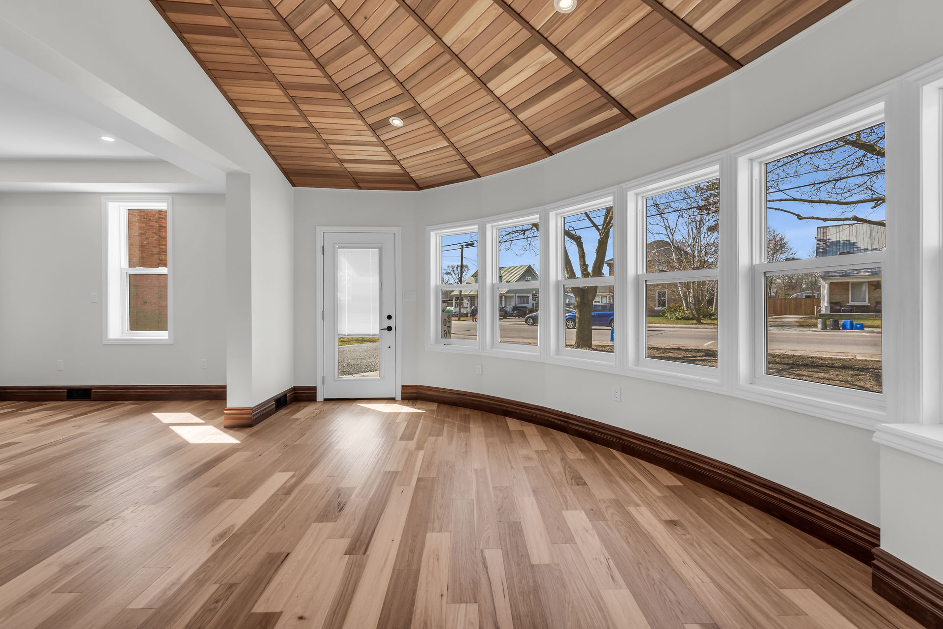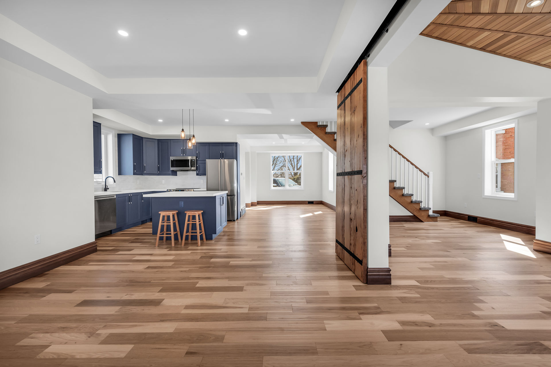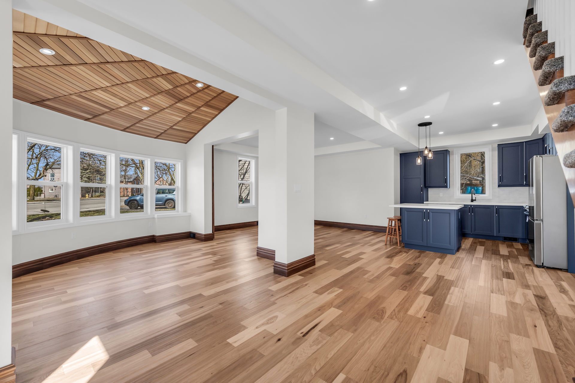 Beautiful 1-1/2 storey century style home extensively renovated and updated with exquisite attention to detail. Features 1800 sqft of stylishly decorated above grade living space with 3 bedrooms, 2 baths and upper-level laundry. The wow-factor begins as soon as you enter the front door. Expansive windows provide tons of natural light showcasing the open concept main floor layout featuring engineered Hickory hardwood flooring, living room with vaulted cedar ceiling, roomy family room and dining areas with custom sliding doors adjacent to the breathtaking custom kitchen and brand new hi-end stainless steel appliances. The mudrm with side door entry leads to a sprawling deck with a pavilion overlooking the backyard.