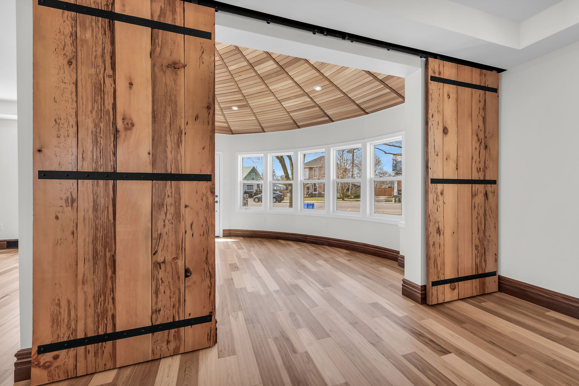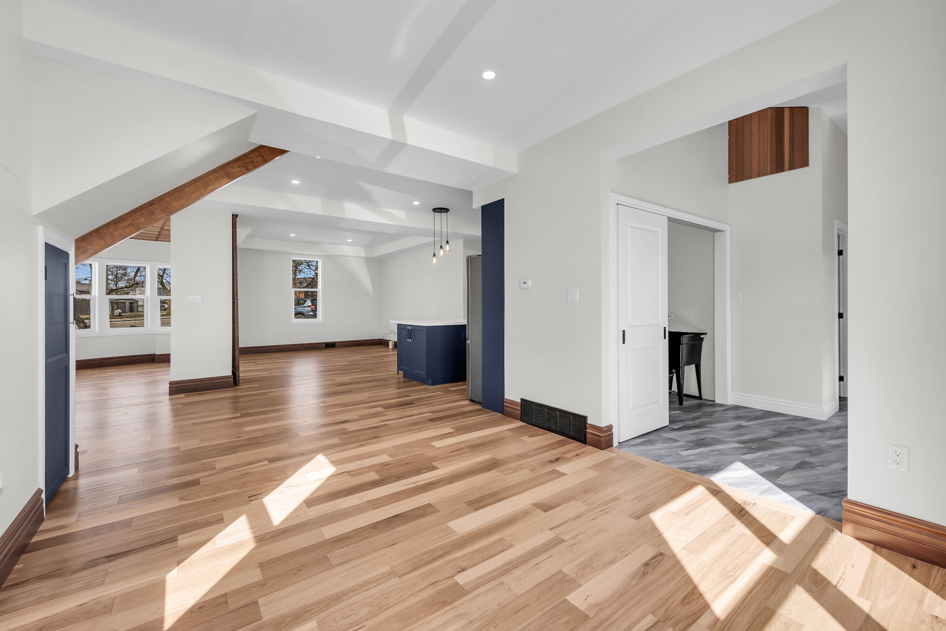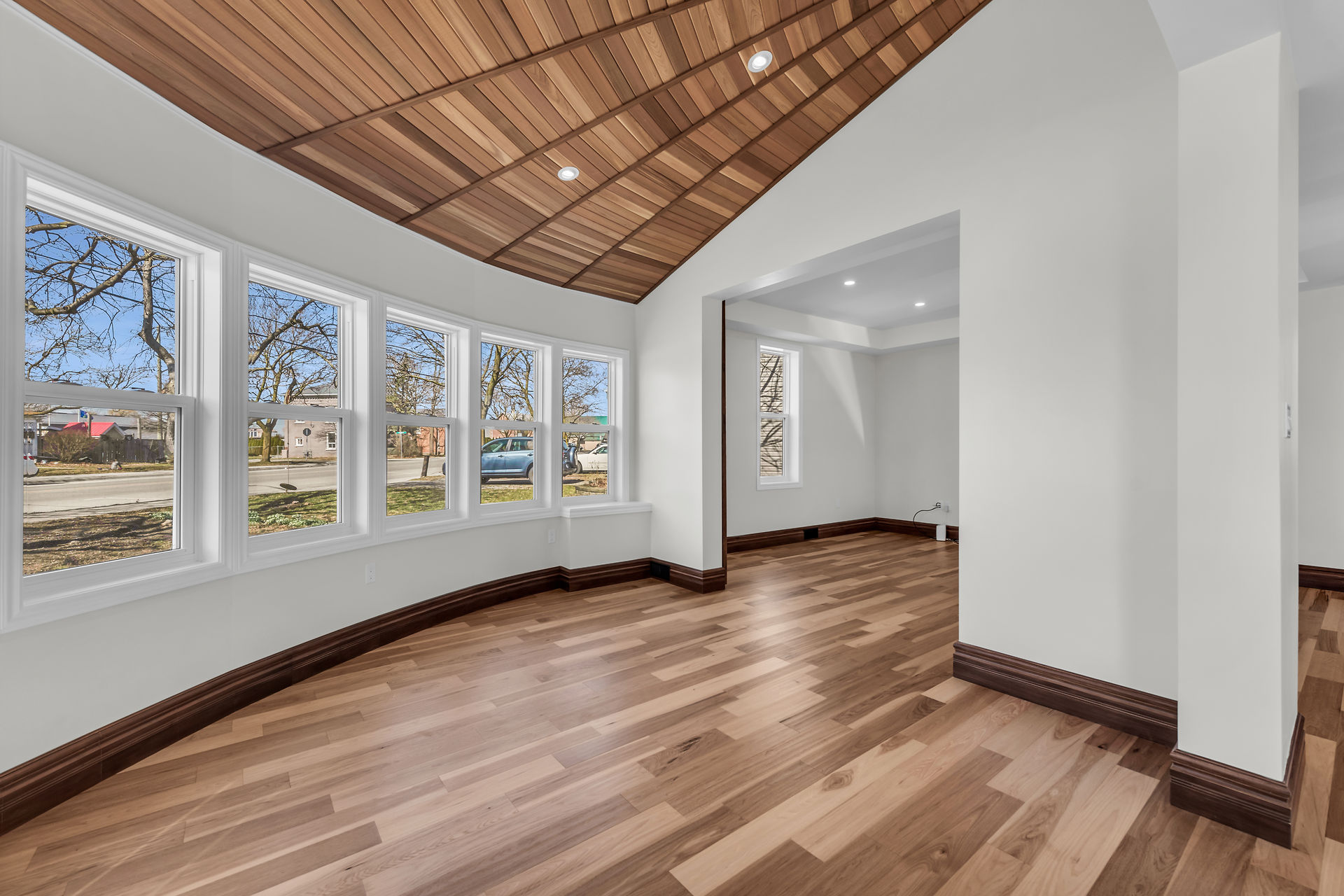Beautiful 1-1/2 storey century style home extensively renovated and updated with exquisite attention to detail. Features 1800 sqft of stylishly decorated above grade living space with 3 bedrooms, 2 baths and upper-level laundry. The wow-factor begins as soon as you enter the front door. Expansive windows provide tons of natural light showcasing the open concept main floor layout featuring engineered Hickory hardwood flooring, living room with vaulted cedar ceiling, roomy family room and dining areas with custom sliding doors adjacent to the breathtaking custom kitchen and brand new hi-end stainless steel appliances. The mudrm with side door entry leads to a sprawling deck with a pavilion overlooking the backyard.