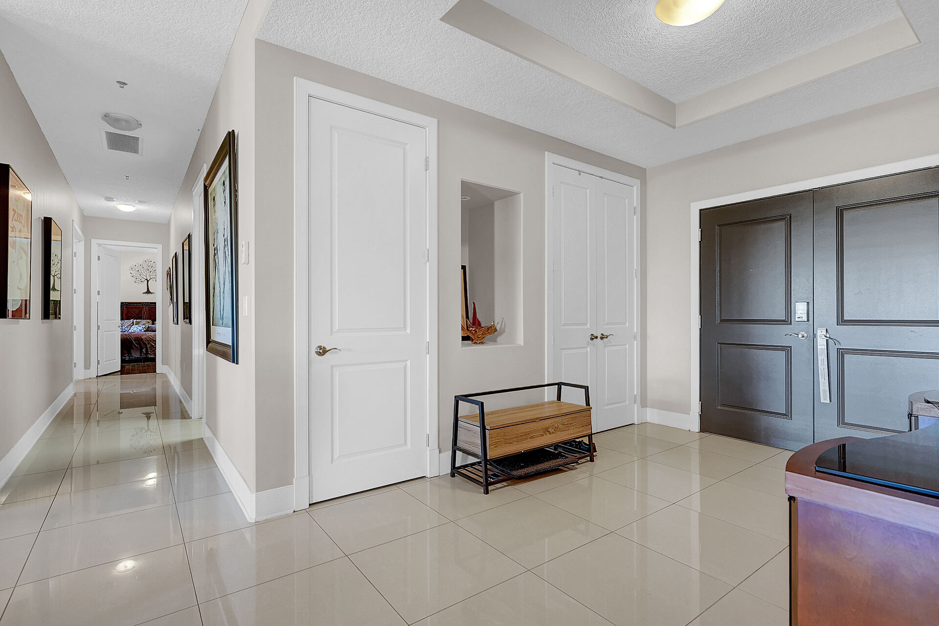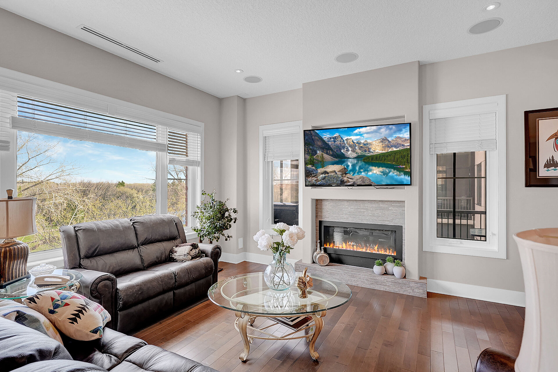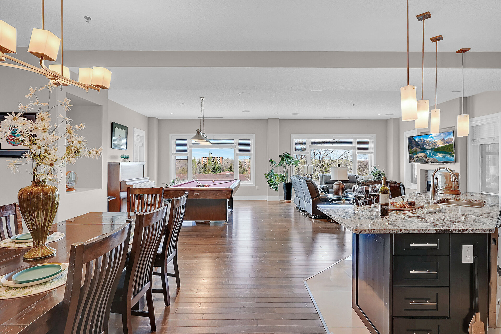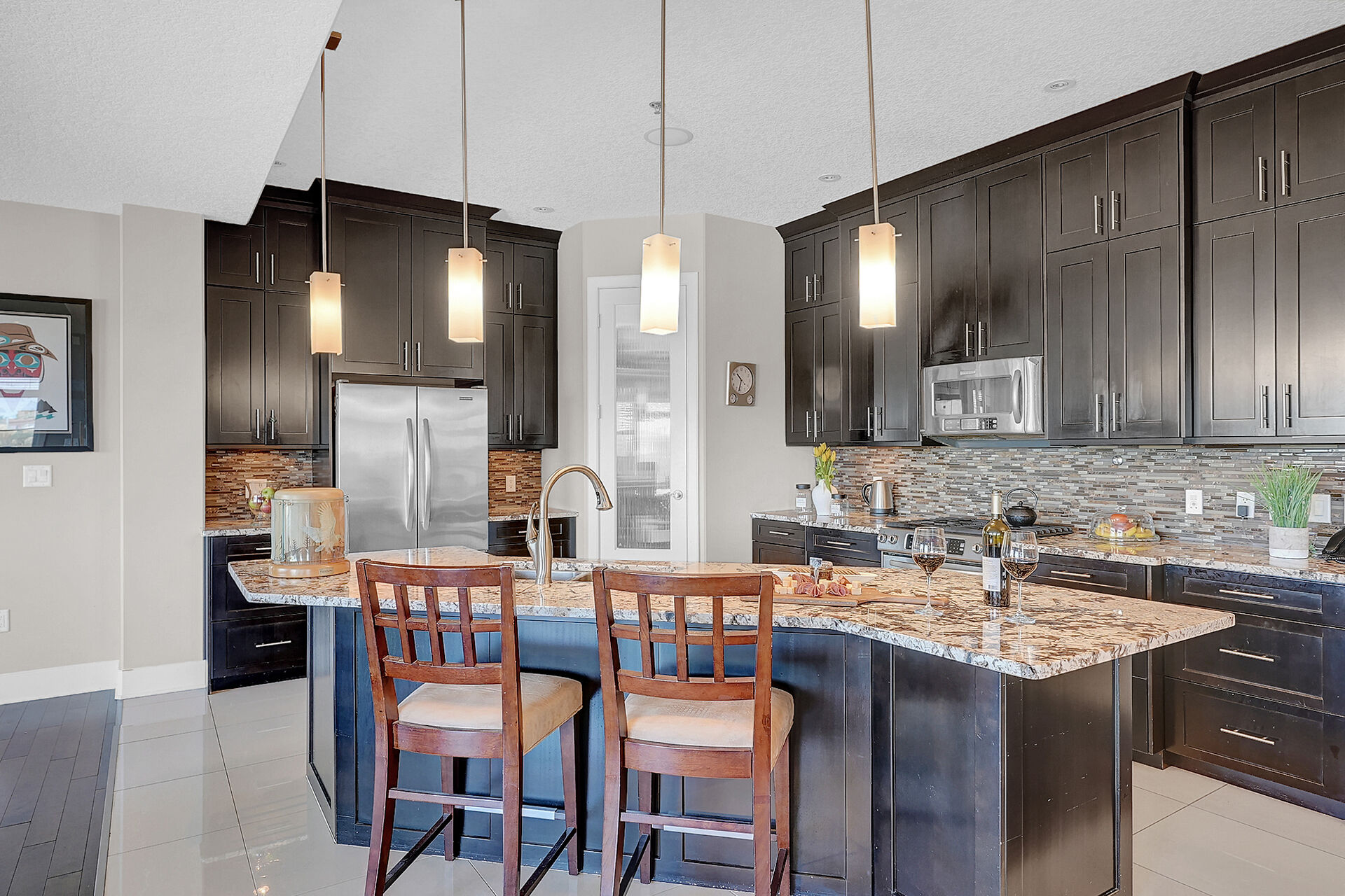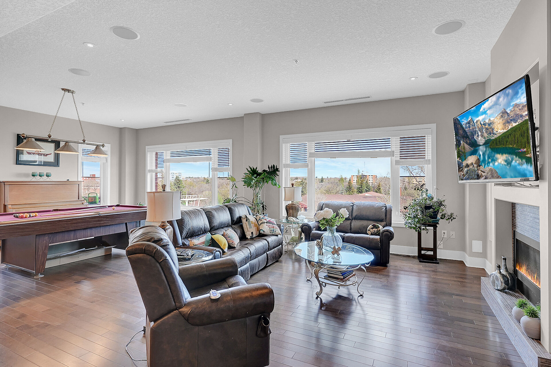 Unparalleled elegance & sophistication at Terrace East Penthouse Condo, a residence that epitomizes luxury living w/views of Crescent Park. This extraordinary condo is a sanctuary of style. The grandeur of the 12-foot ceilings w/8ft solid core doors, add to the expansive open-concept living, magnified by floor to ceiling windows inviting an abundance of natural light w/access to 2 Balconies w/1 being screened in. Living Room adorn by sheer space, hosts a Gas Fireplace w/A/V h/u, in addition to the b/i Sound System set thru out. 3 Beds/Den/2.5 Baths. Terrace East is a secure luxury complex, offering 2 underground parking stalls, guest room, gym, mail & library Rms. Visit vickirealty.com for more info & complex specs.
