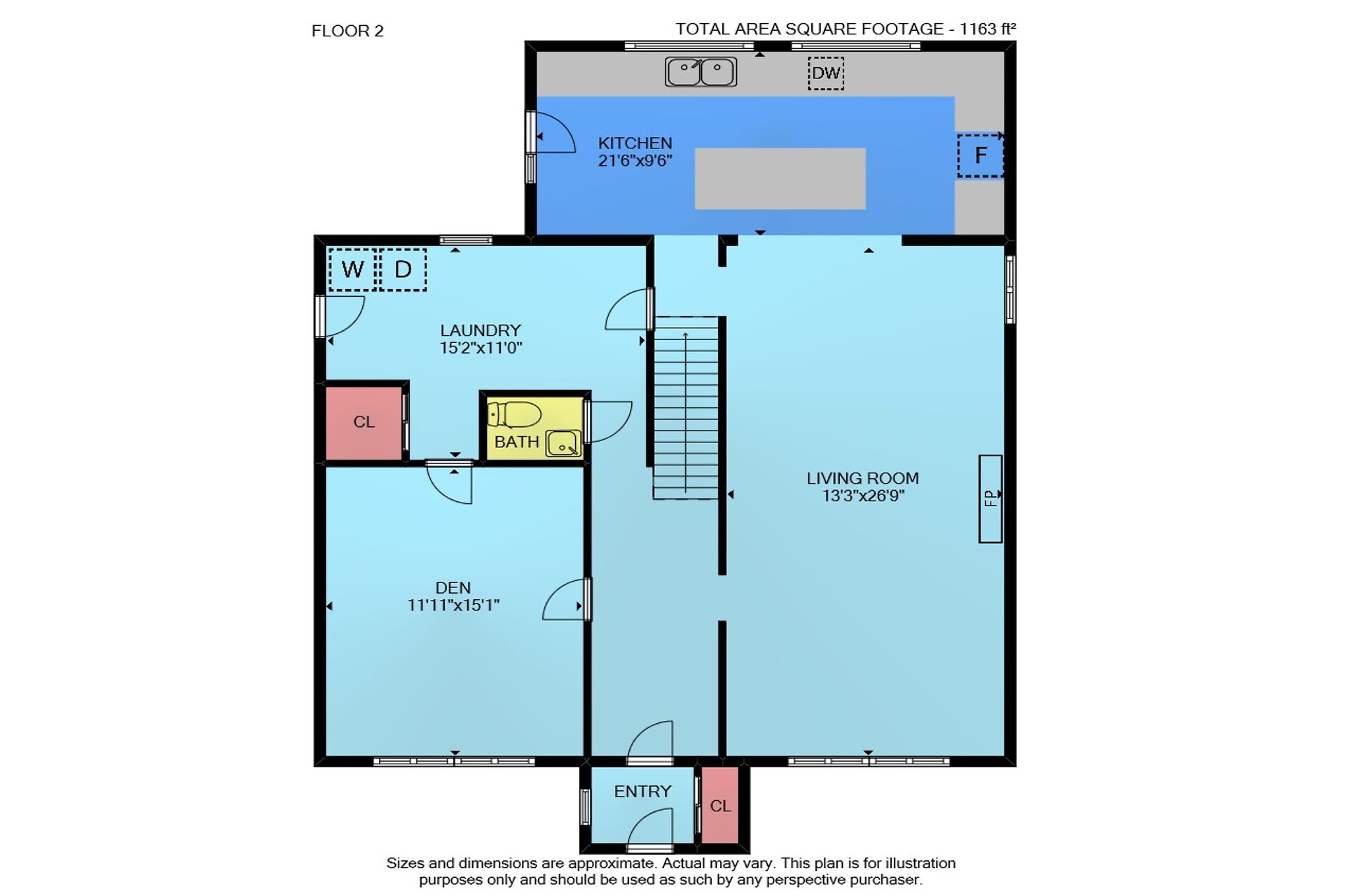 Sizes & Dimensions Are Approximate, Actual May Vary