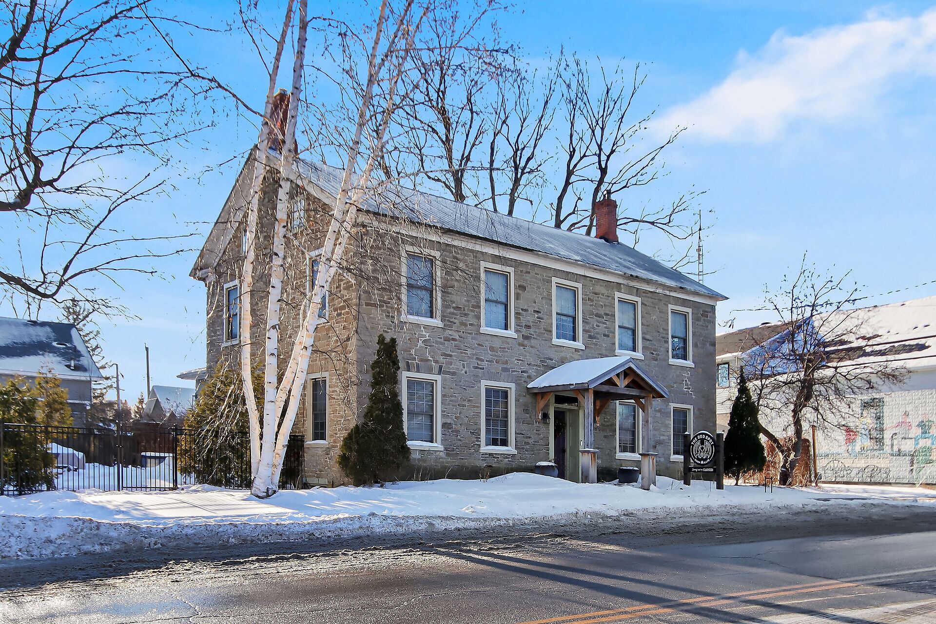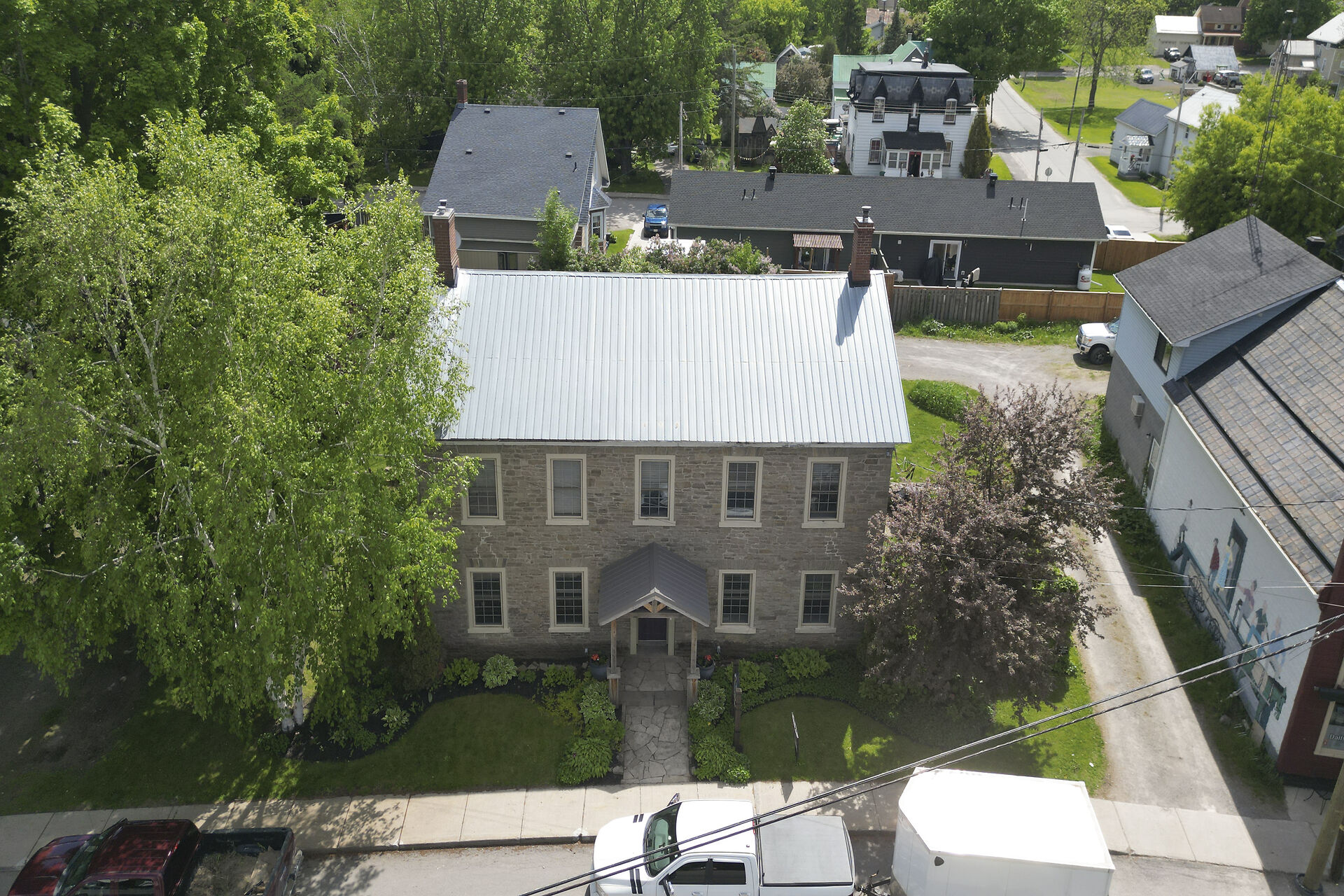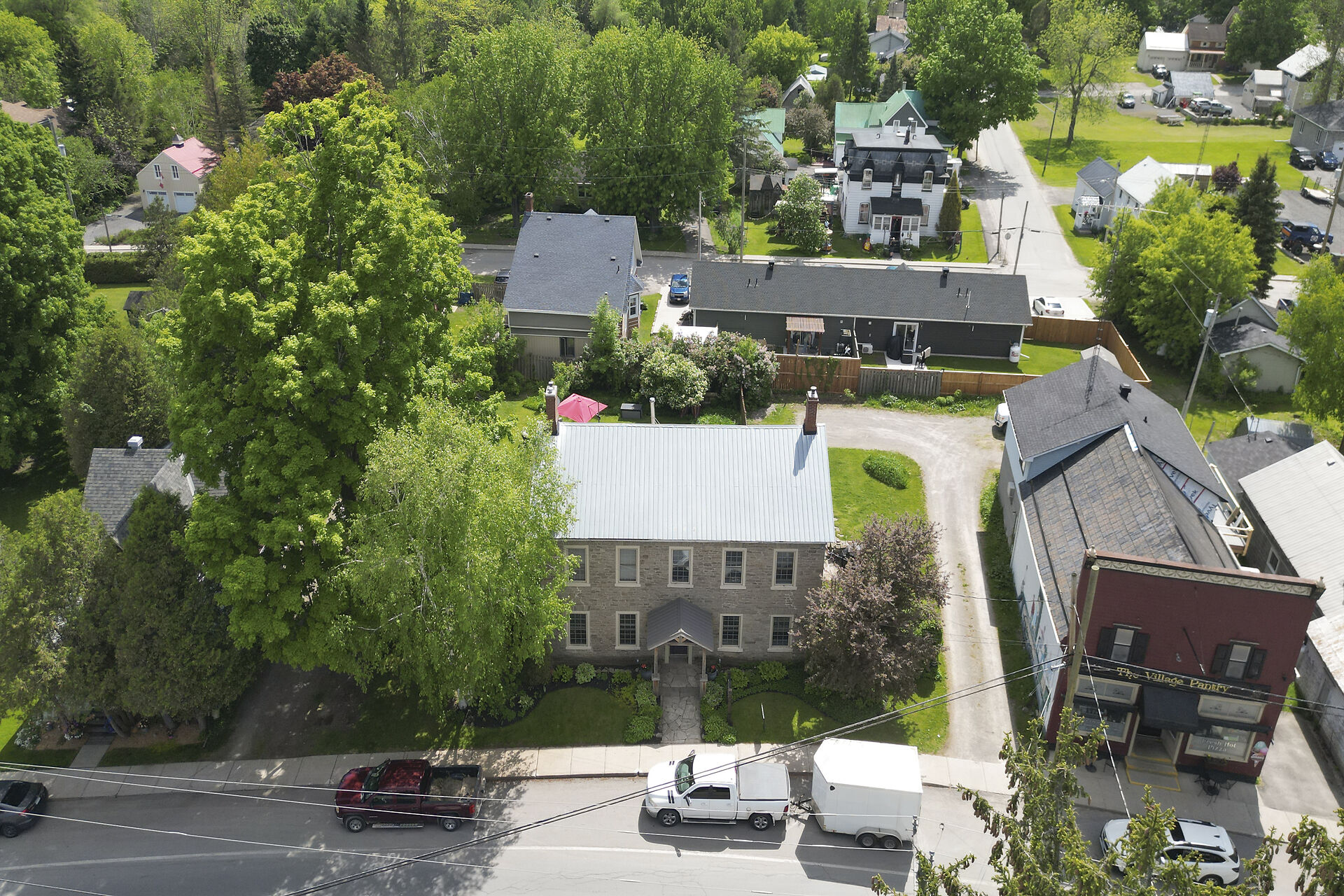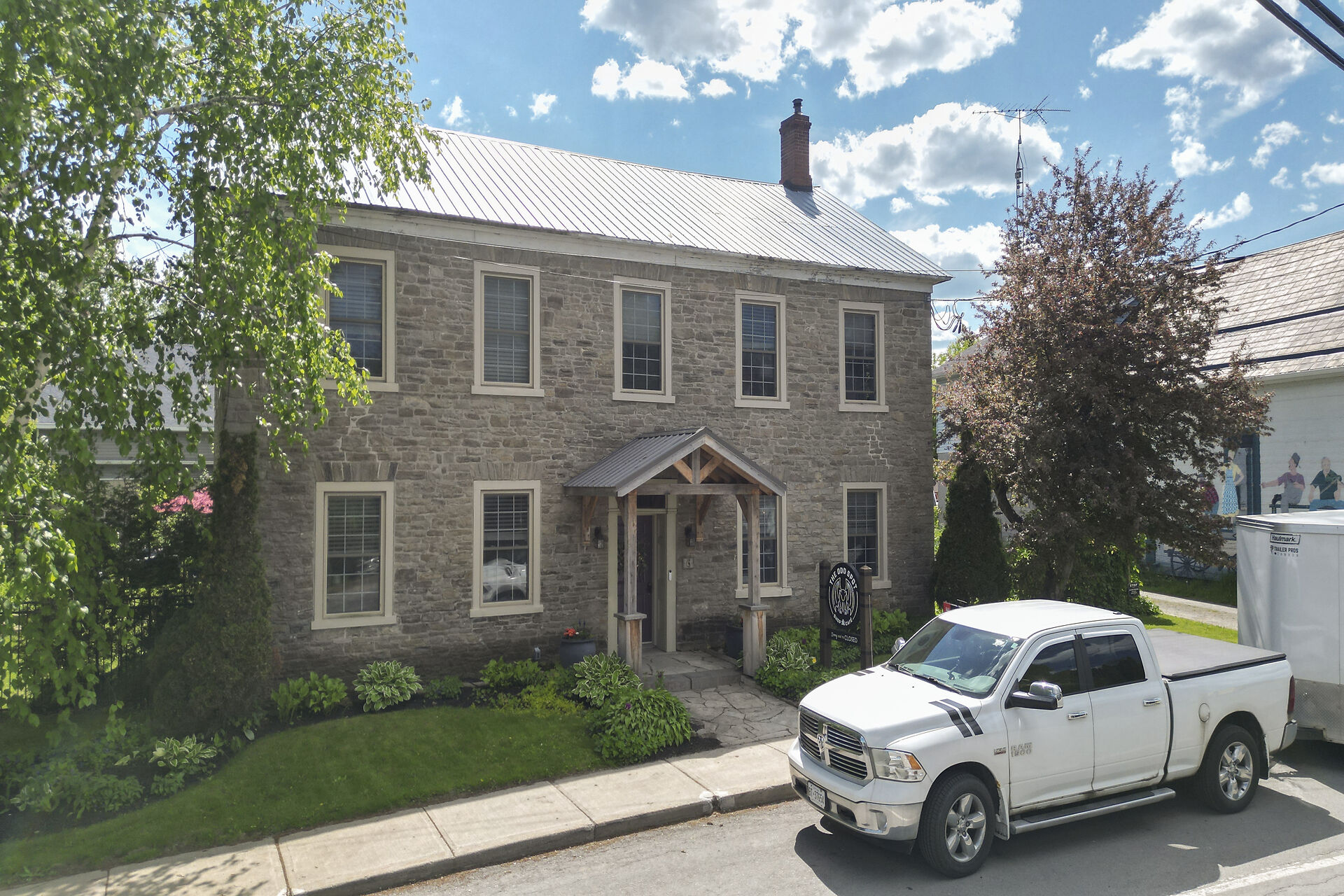 Remarkable 1837 stone building in the heart of historic Spencerville offers an opportunity to create a truly unique residence with the added potential for a live-work lifestyle. With approx $230,000 in upgrades, the property blends heritage charm with modern convenience & was most recently home to a popular cafe-deli featuring a welcoming main floor layout & sunny terrace. The 2nd level includes 3 spacious bedrooms, a kitchenette, & full bathroom ideal for transforming into a comfortable home while the attic offers additional untapped potential. Whether you envision a character-filled private residence or a combination of home & boutique business, this turnkey property is ready for your vision. Close to hwy access