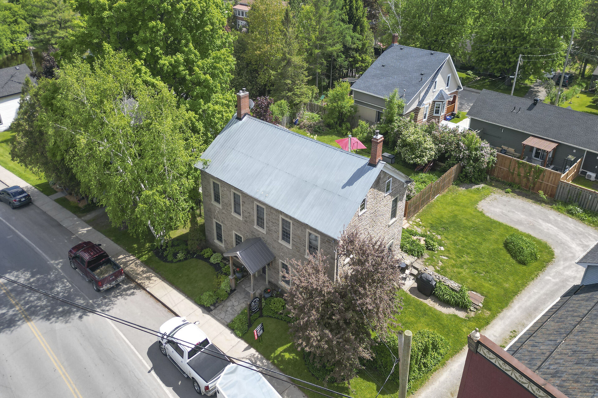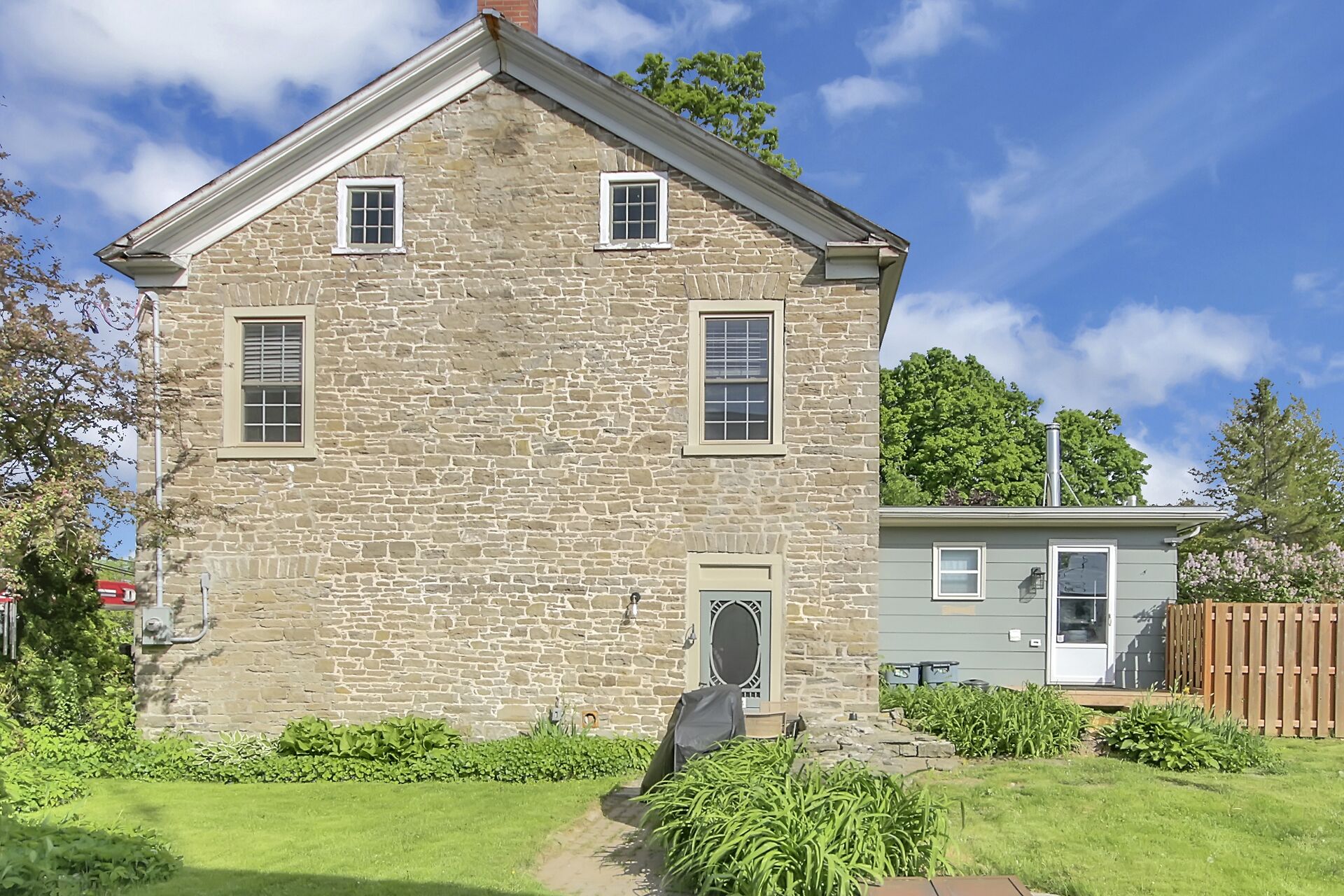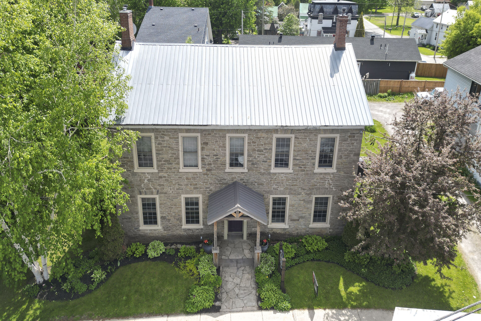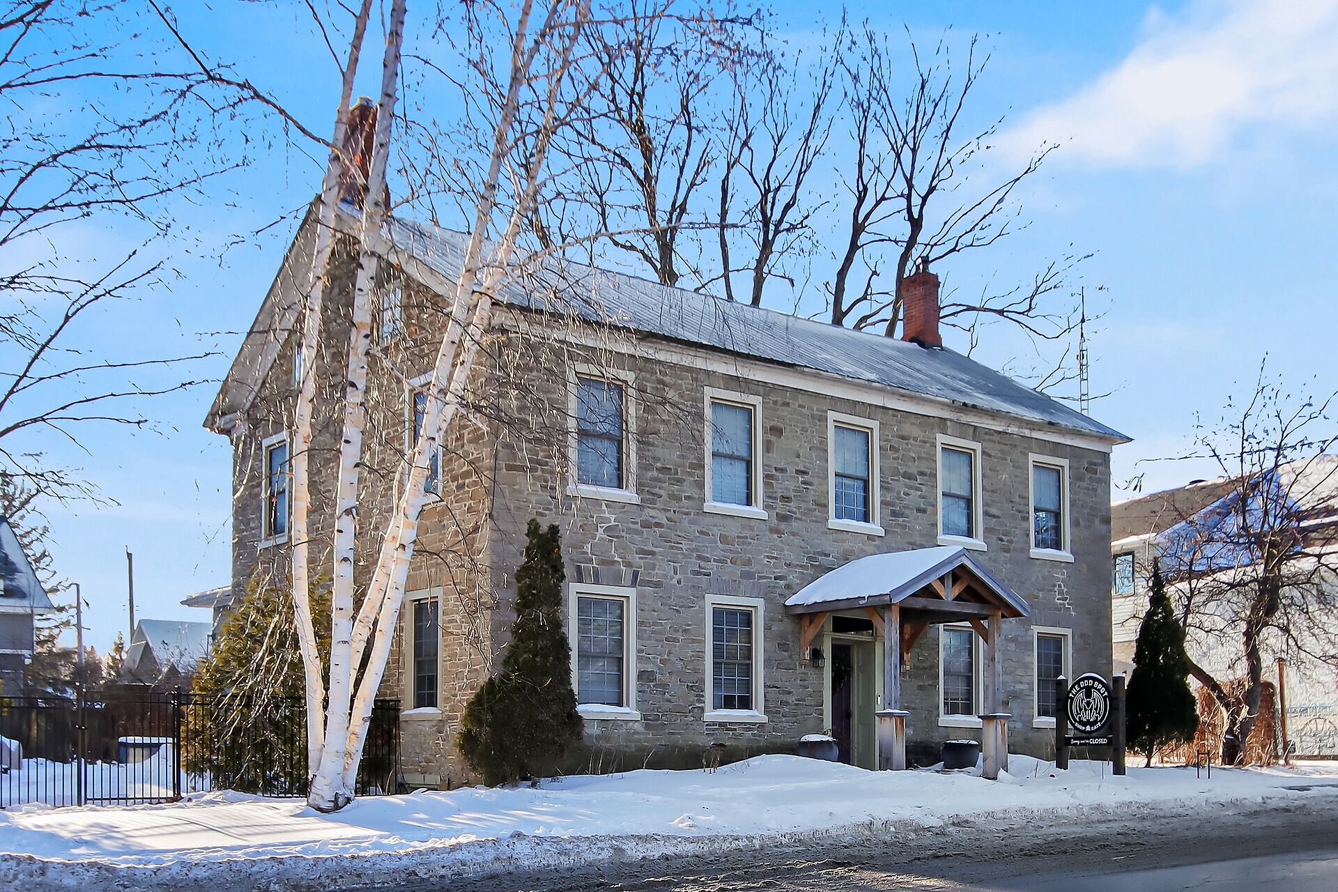 Remarkable 1837 stone building in the heart of historic Spencerville offers an opportunity to create a truly unique residence with the added potential for a live-work lifestyle. With approx $230,000 in upgrades, the property blends heritage charm with modern convenience & was most recently home to a popular cafe-deli featuring a welcoming main floor layout & sunny terrace. The 2nd level includes 3 spacious bedrooms, a kitchenette, & full bathroom ideal for transforming into a comfortable home while the attic offers additional untapped potential. Whether you envision a character-filled private residence or a combination of home & boutique business, this turnkey property is ready for your vision. Close to hwy access