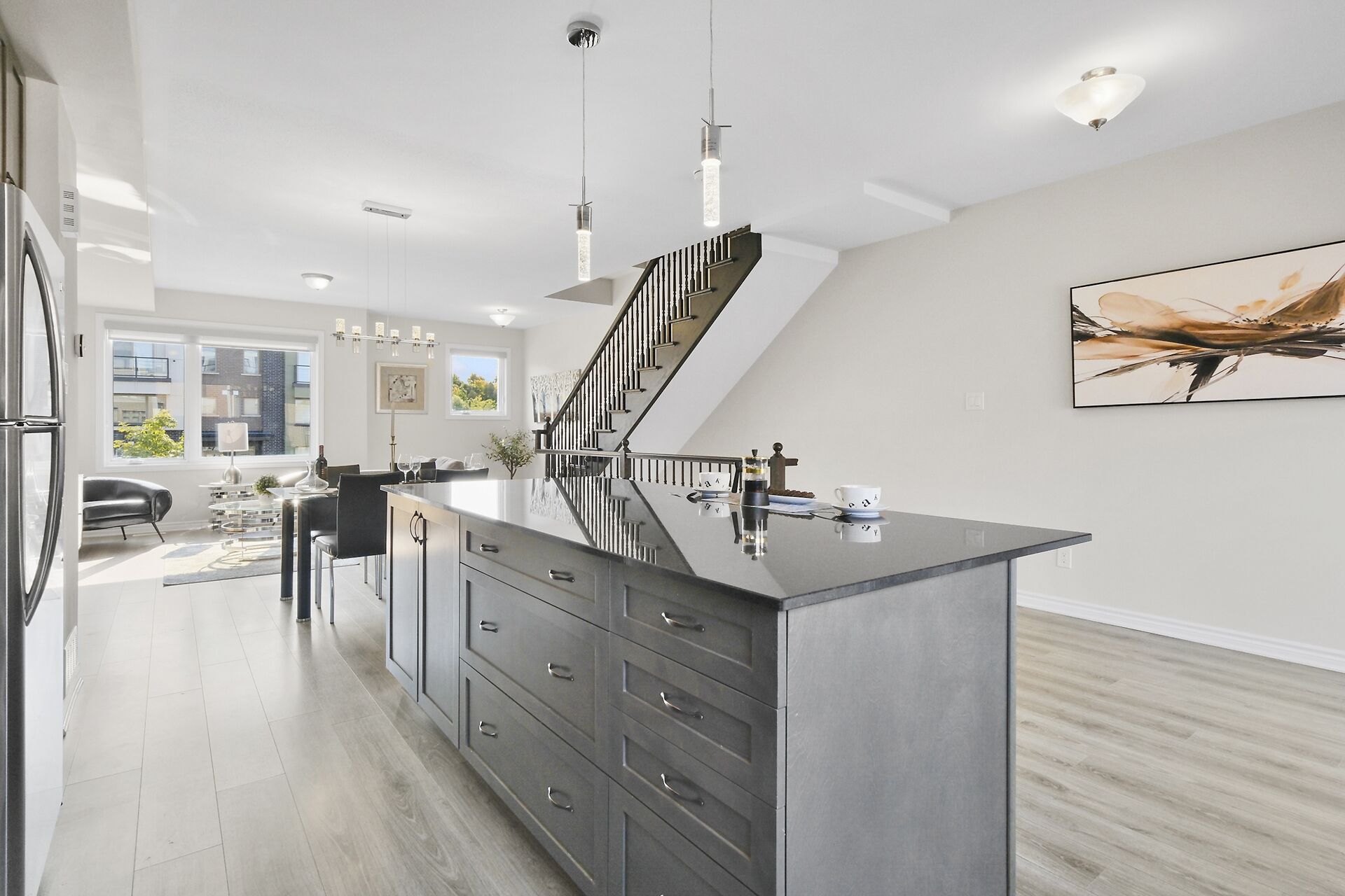 Welcome to this executive 4-storey townhome nestled in Iconic Wateridge. 1st main level has a Bedroom, 4 pce bath, inside entry to dbl garage. 2nd level complete with chef's kitchen, breakfast bar for 4, dining room, living room & balcony. 3rd level has a primary bedroom complete 2 dbl closets and 3 pce ensuite, 2 other bedrooms, a 4 pce bathroom, laundry & linen storage. Revel in the outdoor living spaces w 2 private terraces w scenic west view of the park & east gatineau hills. Located just minutes from downtown, Aviation Parkway, Montfort Hospital, NCC walking paths,Ottawa River, restaurants, trails & shopping centres. Welcome Home