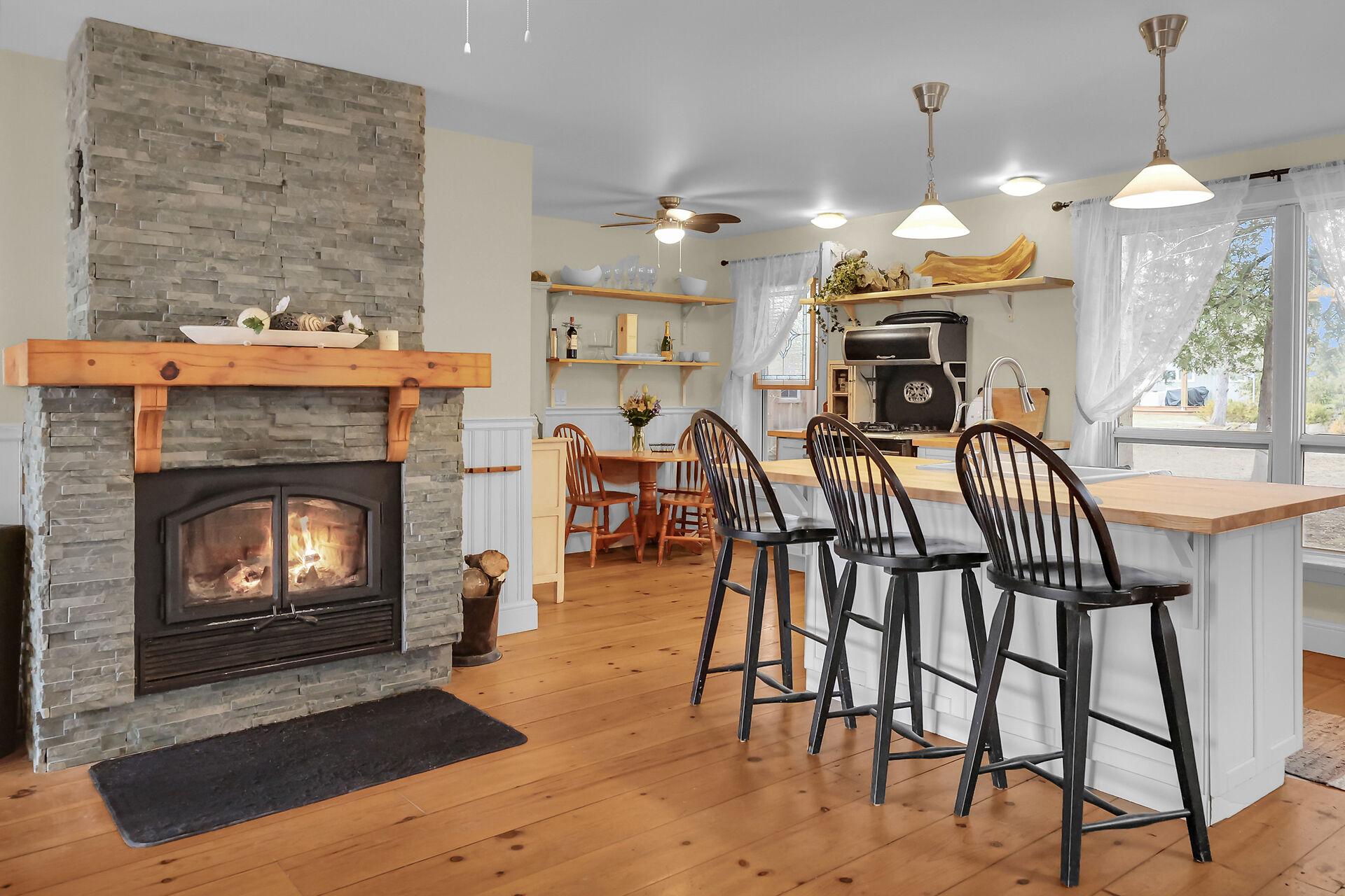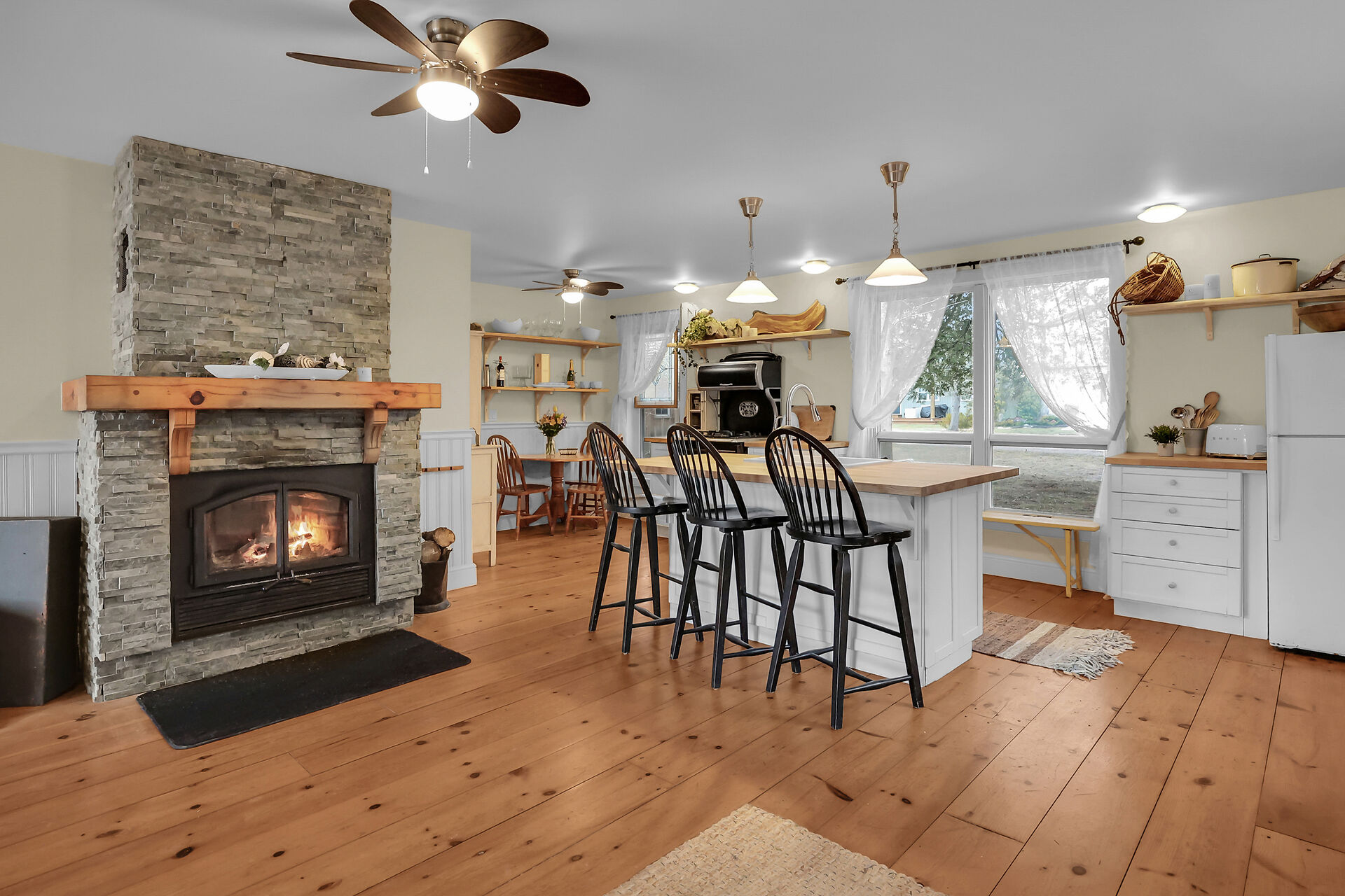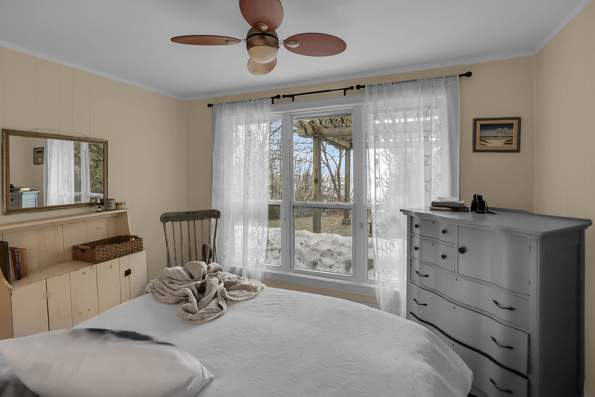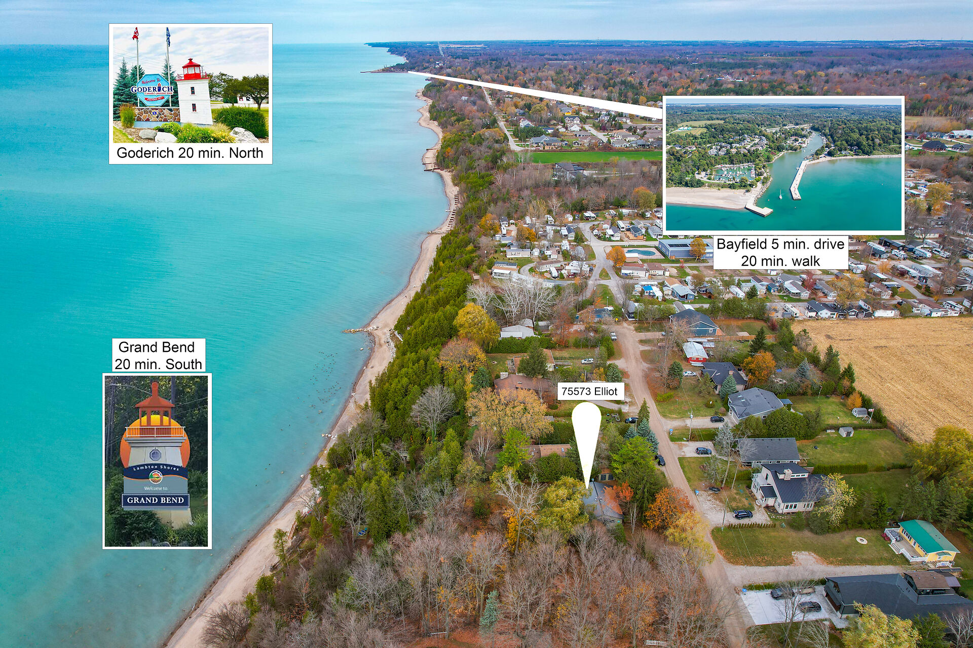 Nestled along the serene shores of Lake Huron, this four season waterfront cottage offers a charming escape where nature's beauty meets cozy comfort. Located in the historic Town of Bayfield, this picturesque home boasts breathtaking views of Lake Huron framed by lush greenery and vibrant sunsets that paint the sky. The cottage's rustic charm blends seamlessly with modern amenities, creating an inviting atmosphere perfect for relaxation and rejuvenation. This gem has 3 bedrooms, 1 bath, pine floors, gas stove, centre island and wood burning fireplace creating ambiance and warmth. The property has steps leading down to a deck overlooking the water, a bunkie for added sleeping quarters and a storage shed.