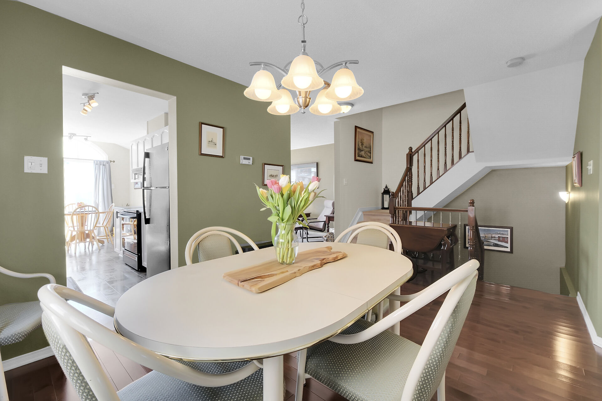 True four bedroom end unit The Park Place model built by Minto. 2015 sq. ft from bldr plans. Beautiful solarium kitchen overlooking two tier deck and landscaped yard with separate 2.9m x 2.2m eating area. Large living room has great light from large window, separate dining room. Primary bedroom with walk in clothes closet and four piece ensuite, separate shower and soaker tub. Lower level family room with gas fireplace and large window for natural light. Laundry / Utility area and huge storage area. Located close to Francis Duupuis Rec Center, parks, schools and public transit. Shopping is close by as well. Include all appliances, central vacuum, garage door opener with 2 remotes, workbench in garage with lights