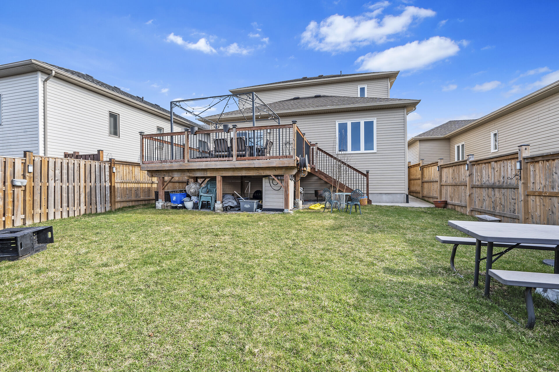 This beautifully crafted Marques home offers exceptional quality with 3+1 bedrooms and 3.5 bathrooms. The open-concept kitchen and dining area are perfect for family gatherings, while sliding doors lead to a spacious, fully fenced yard with a large deck for entertaining. The kitchen features quartz countertops and a generous island while the bright main floor office provides the perfect space for work or study. Upstairs includes a laundry room, three bedrooms, and a main bath, with the primary bedroom offering a walk-in closet and ensuite. The finished basement has a rec room, extra bedroom, and full bathroom. Storage is plentiful throughout the home and double-wide driveway allows for side-by-side parking.