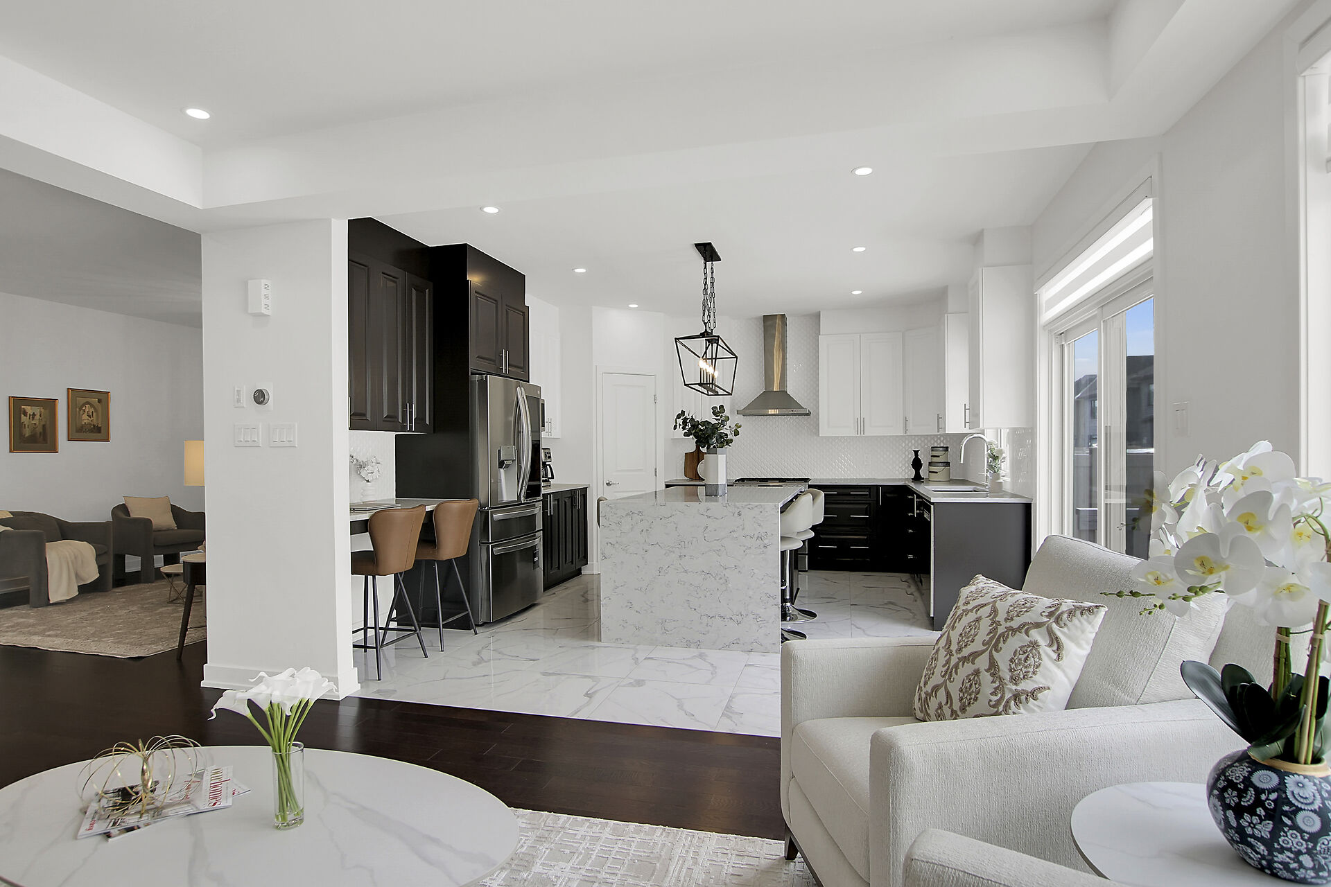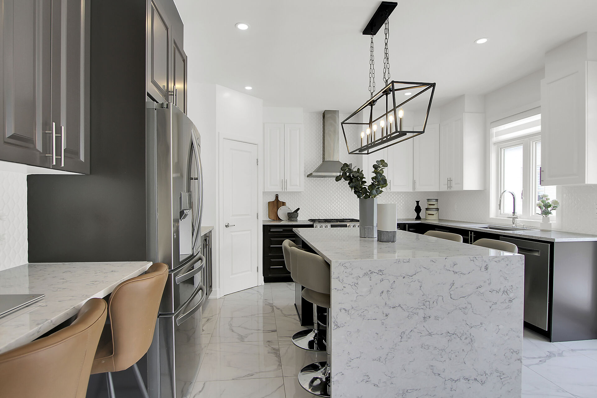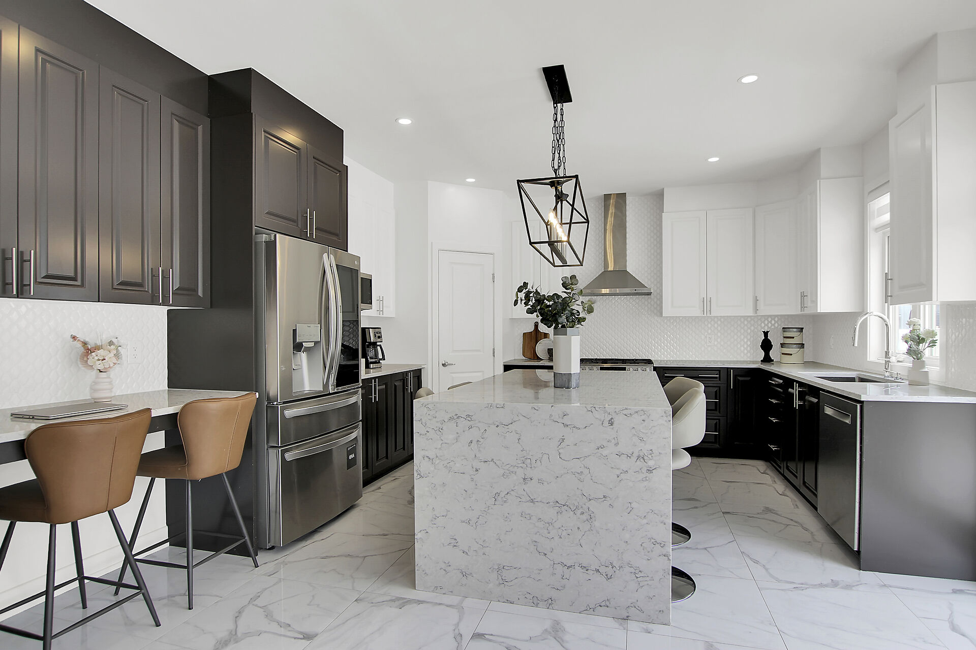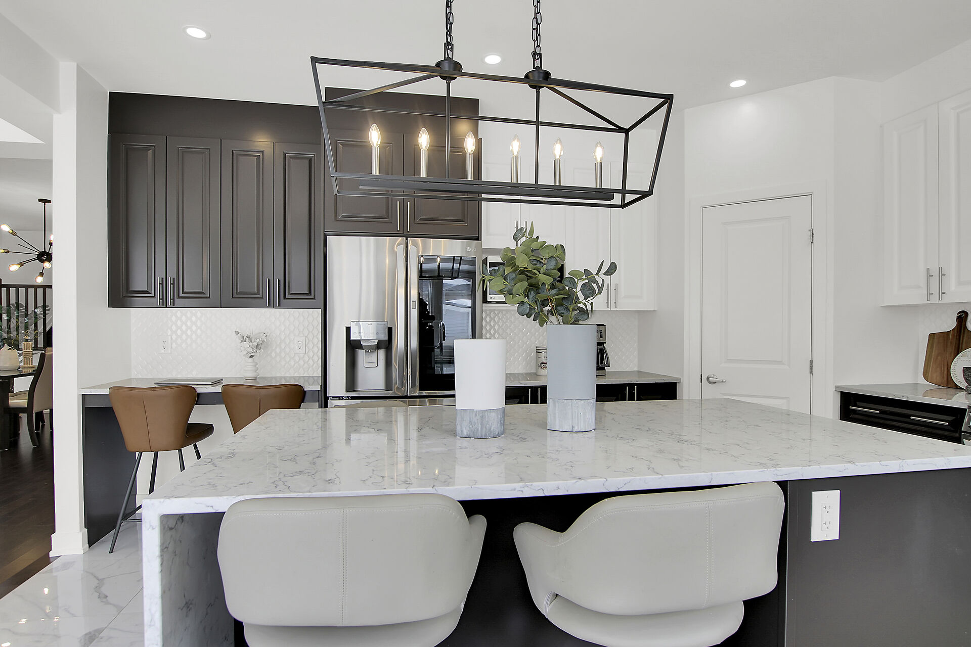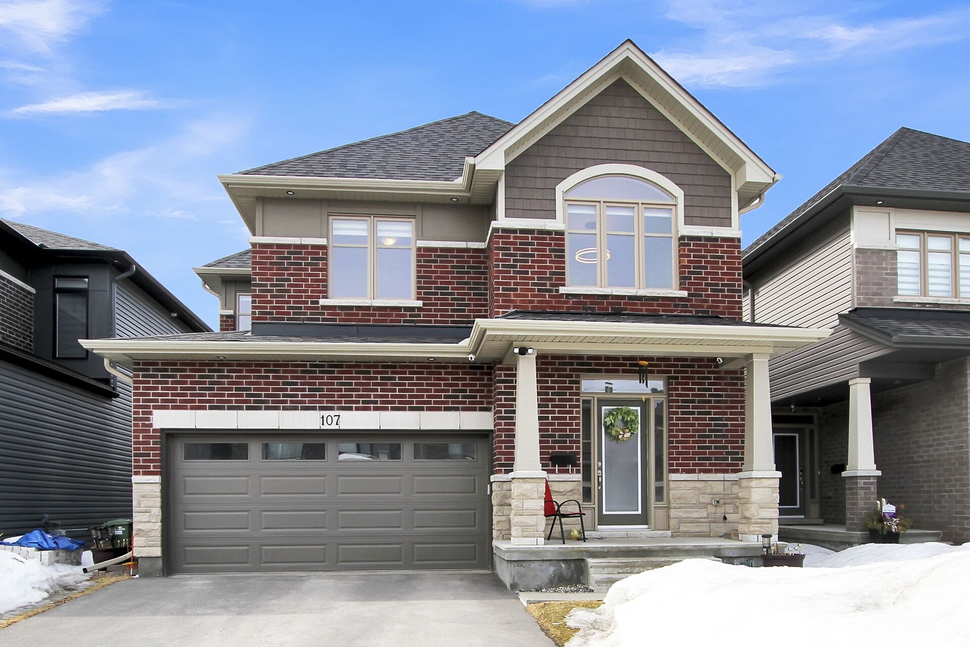This beautifully upgraded 5-bedroom, 3.5-bathroom home combines elegance and modern charm in every detail. Enjoy a spacious layout with formal living and dining areas, a bright great room with large windows and a cozy two-way fireplace. The chef-inspired kitchen features quartz countertops, custom cabinetry, stainless steel appliances, and a large island perfect for entertaining. Upstairs features four spacious bedrooms, including a luxurious primary suite with a five-piece ensuite and walk-in closet, a 2nd full bath, and a versatile loft space. The fully finished basement includes a large recreation room, 5th bedroom and full bath. EV-ready garage and fenced yard. Steps to LRT, top schools, parks and shopping.