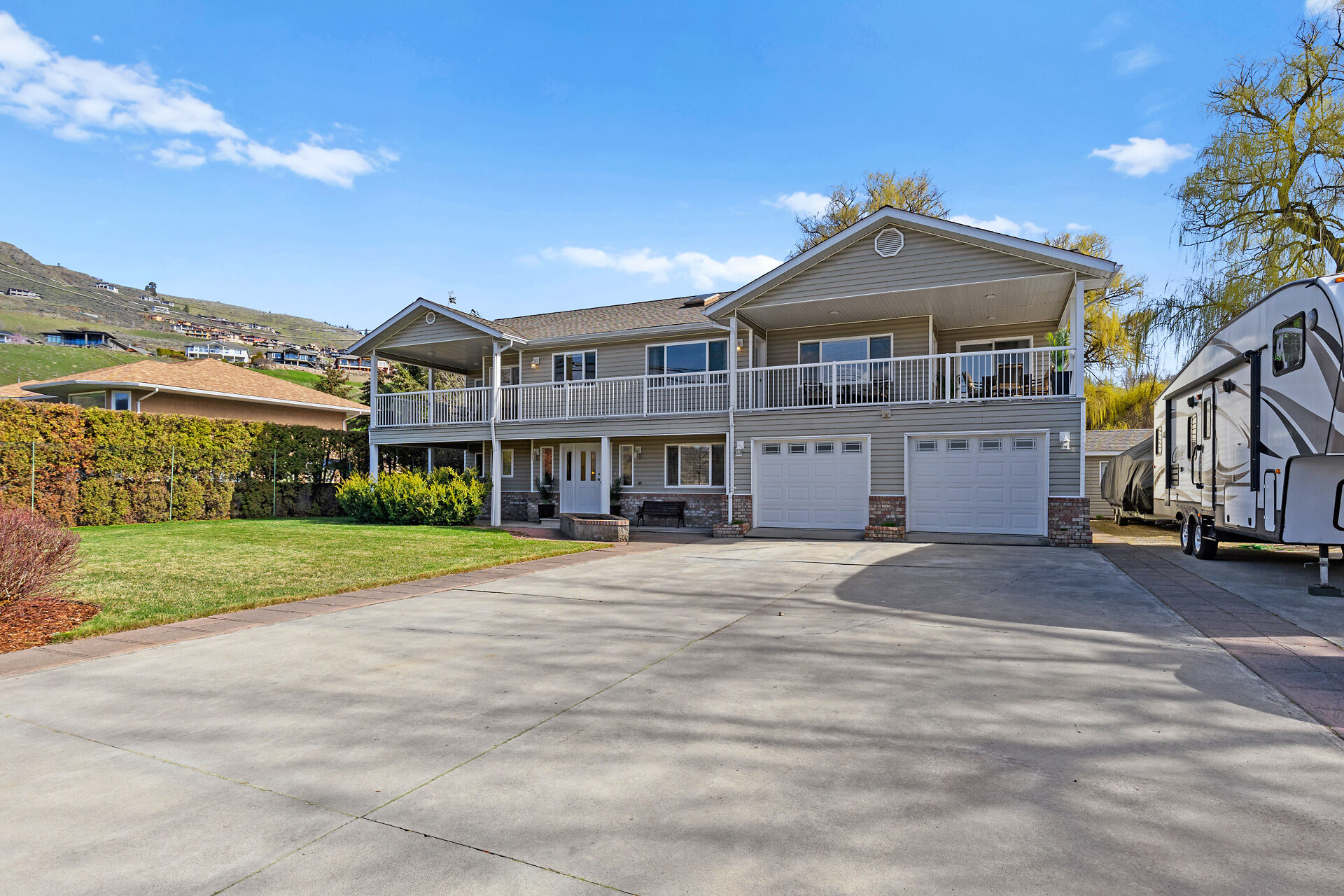 Welcome to your dream home in the heart of the Okanagan! Located directly across from the sparkling shores of Kin Beach on Okanagan Lake, this spacious 5 bed, 3 bath home offers the ultimate in comfort, convenience & lifestyle. This is more than just a home – it's a private retreat, perfect for families, entertainers & outdoor enthusiasts alike. Enjoy stunning lake views from the front-facing windows, or step out onto the wraparound covered front deck to soak in the serene surroundings while enjoying your morning coffee or evening wine. Out back, your own private backyard oasis awaits. Unwind in the hot tub, listen to the gentle sounds of the fountain, or host gatherings in your outdoor kitchen space.