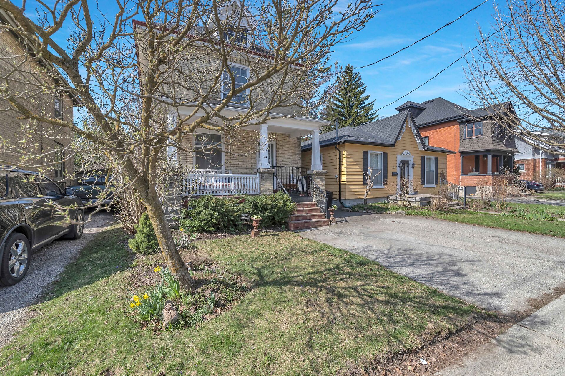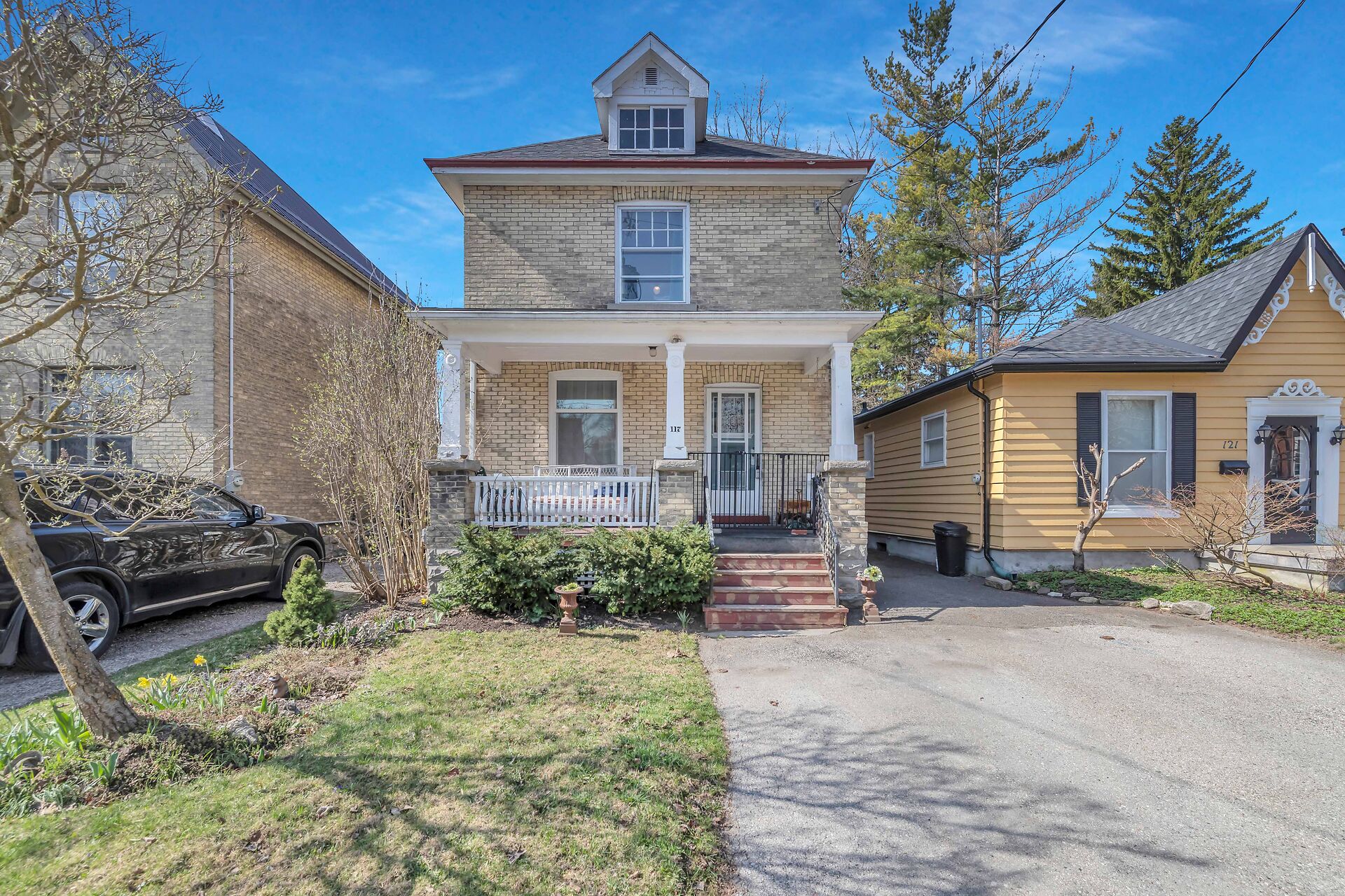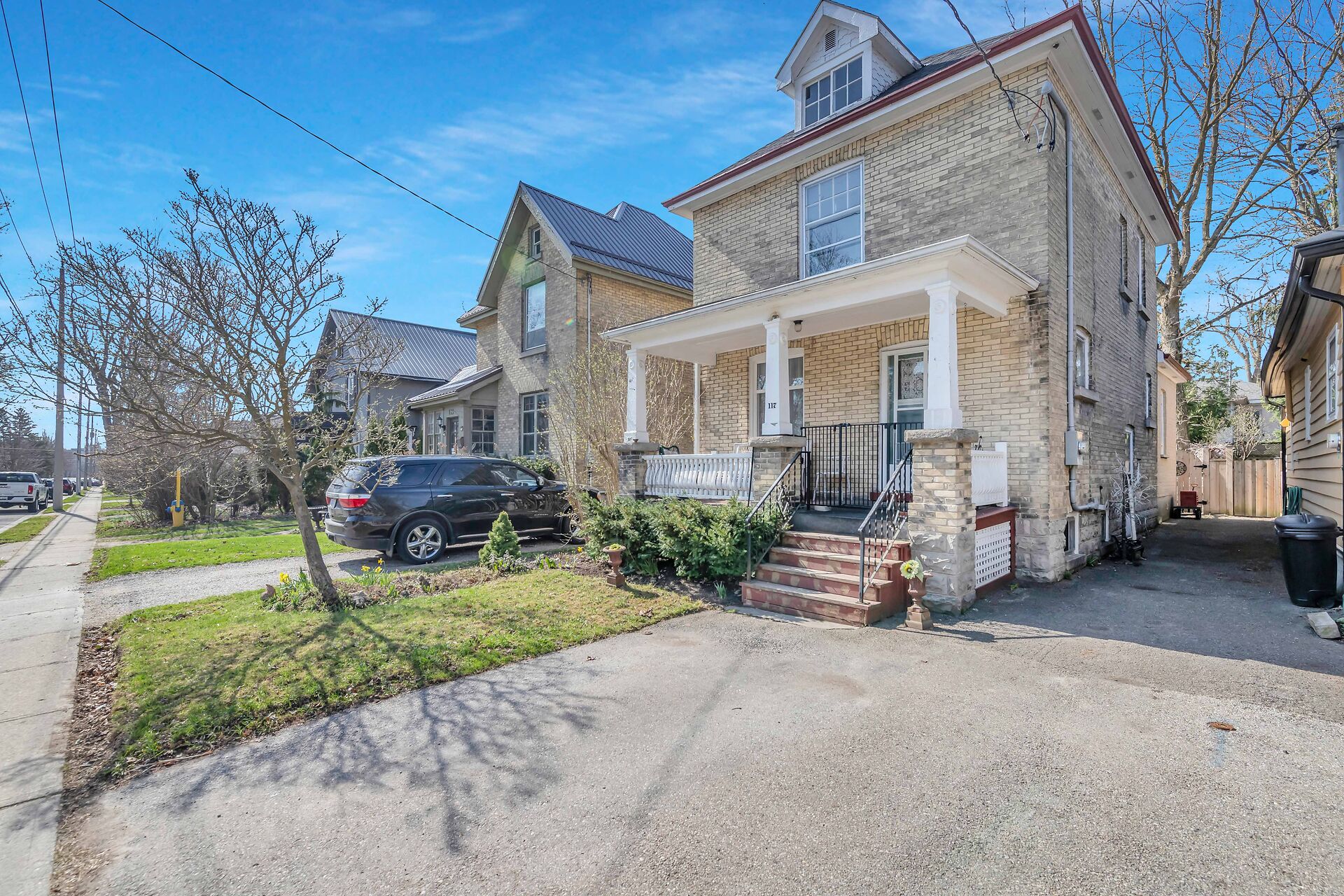 Remarks Public: Home on Hibernia! Nestled on one of Stratford's most sought-after streets in the coveted Avon ward, this yellow 'brick century home boasts a timeless charm. Step into the warm embrace of the living room and dining room, where period charm takes center stage. The wood floors, a cozy wood burning fireplace and original trim exudes "character. The seamless flow from room to room creates an inviting atmosphere for both relaxation and "entertainment. Enter the backyard through the bright kitchen to a fully fenced yard. There is a 2 piece powder room tucked away conveniently on the main floor. The upstairs offers 3 bedrooms including a 'large primary bedroom, all with original hardwood floors.