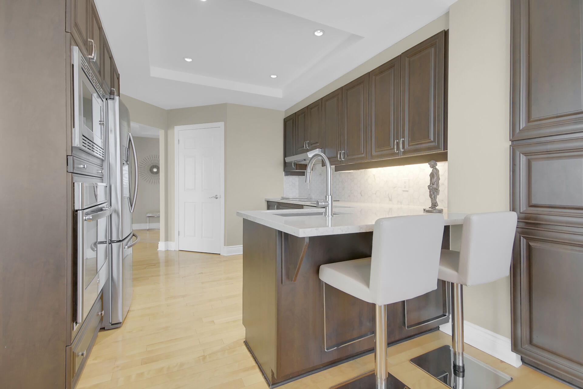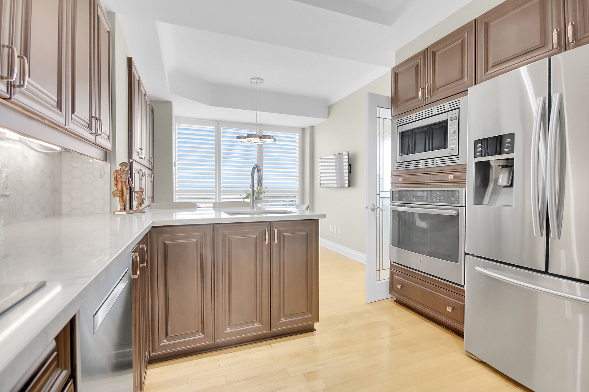 Spectacular upgraded condo in the heart of Westboro. Oversized renovated kitchen with spacious eating area, open concept living and dining rooms with crown mouldings, hardwood floors and over has spectacular sunset views of the Ottawa River. Both bathrooms have been renovated, spacious primary bedroom with oversized walk in closet. The development comes equipped with an indoor pool, saunas, exercise centre, lovely rear lawn, and most important is 24-7 security and concierge. There are 3 guest suites, party room with kitchen, TV lounge with daily activities that's perfect for socializing. Walk to grocery stores, LCBO, restaurants, bistros. coffee shops with transit just around the corner. This home sparkles!
