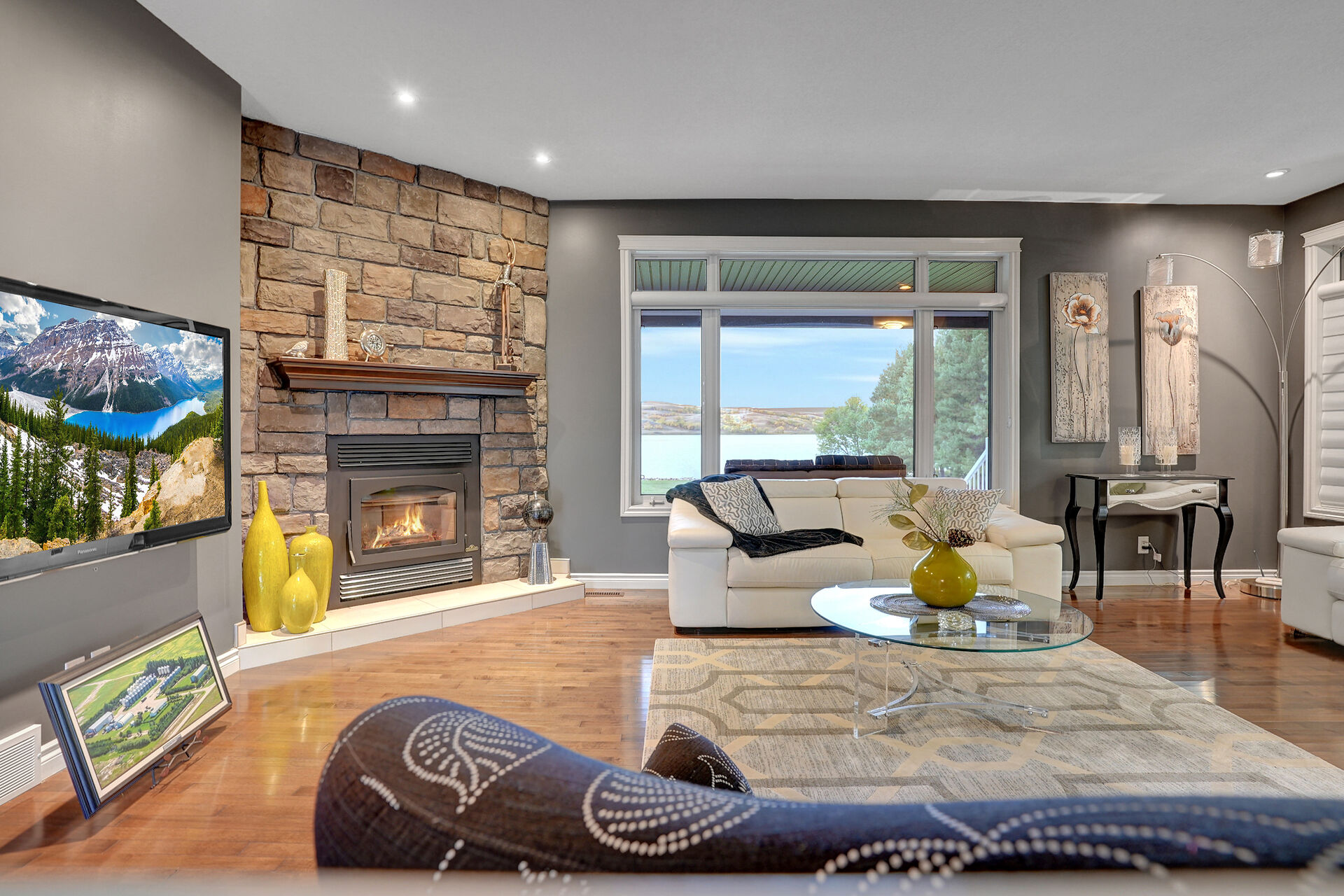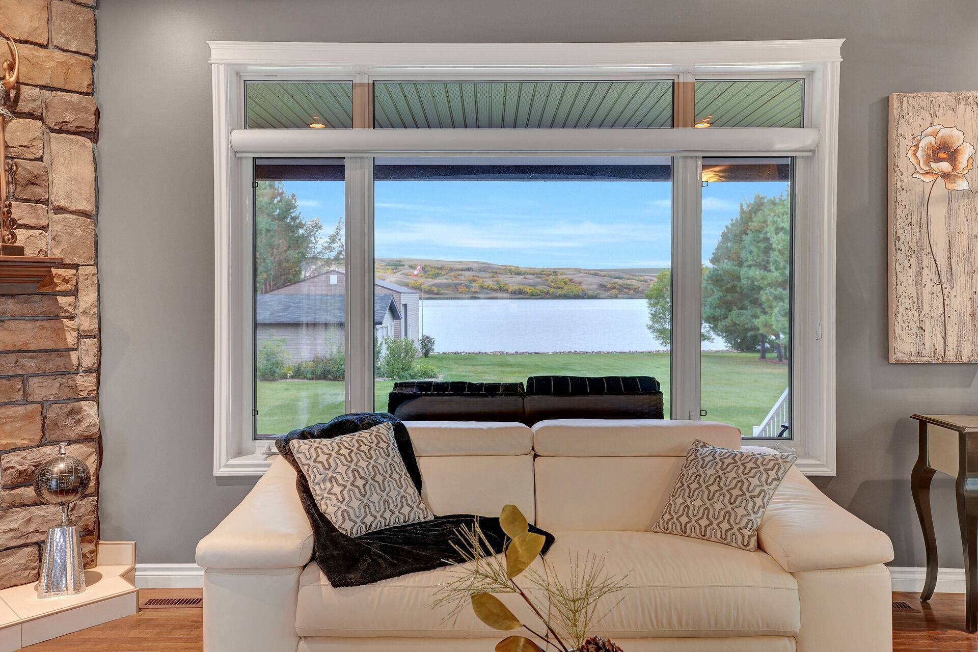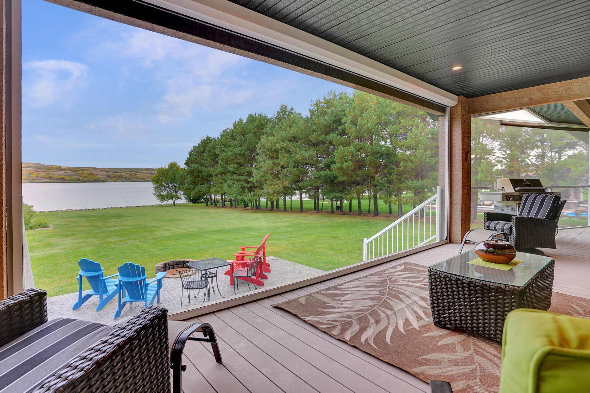 Located at Buffalo Pound Lake's North Shore Estates is the Custom-Built Waterfront Estate. Situated on three stunning parcels, this home boasts over 4100 square feet of finished living space, exquisite furnishings, and extra conveniences you will not want to live without. The stunning grounds, street appeal, and drive welcome you to the prestigious North Shore. With its tile and hardwood floors, the foyer welcomes you into the open-concept living, dining, and kitchen spaces, which are only complemented by breathtaking windows that overlook the rolling hills and lake. Off the dining room are patio doors leading to a covered deck that can be enjoyed on any day thanks to remote-controlled retractable screens!