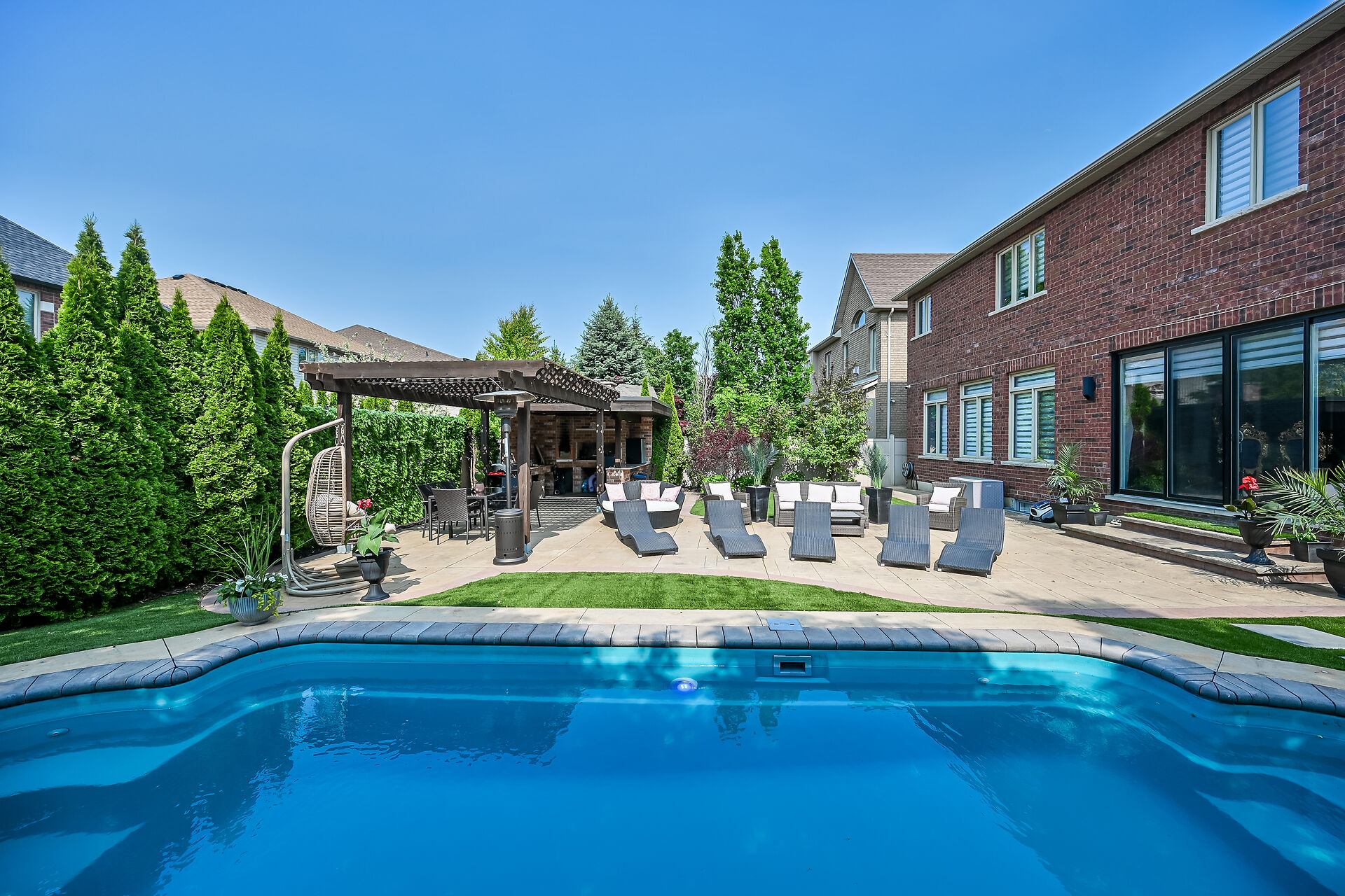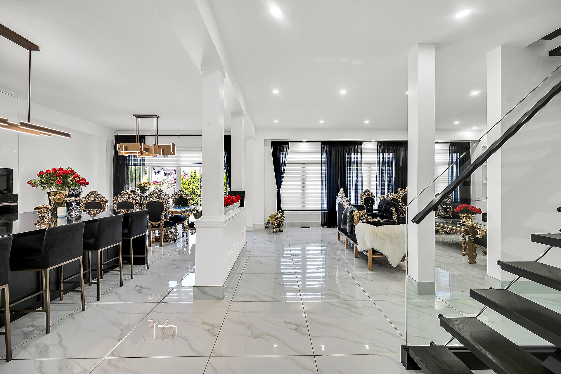 This 2 storey 4+1 bedrooms 4.5 Bathrooms home, with over 4000 square feet of finished space. Situated in Ancaster in prime Meadowlands location directly facing the conservation area, this is truly remarkable and offers an unparalleled living experience. The interior boasts desirable upgrades such as elegant granite countertops, stunning kitchen, beautiful hardwood flooring throughout, and impressive high ceilings that enhance the sense of space and light. Furthermore, the property offers a fully finished basement, a significant added value, which conveniently includes nanny quarters, a huge bar also a Den with filter system. Providing additional flexibility and privacy for a growing family or for hosting guests.