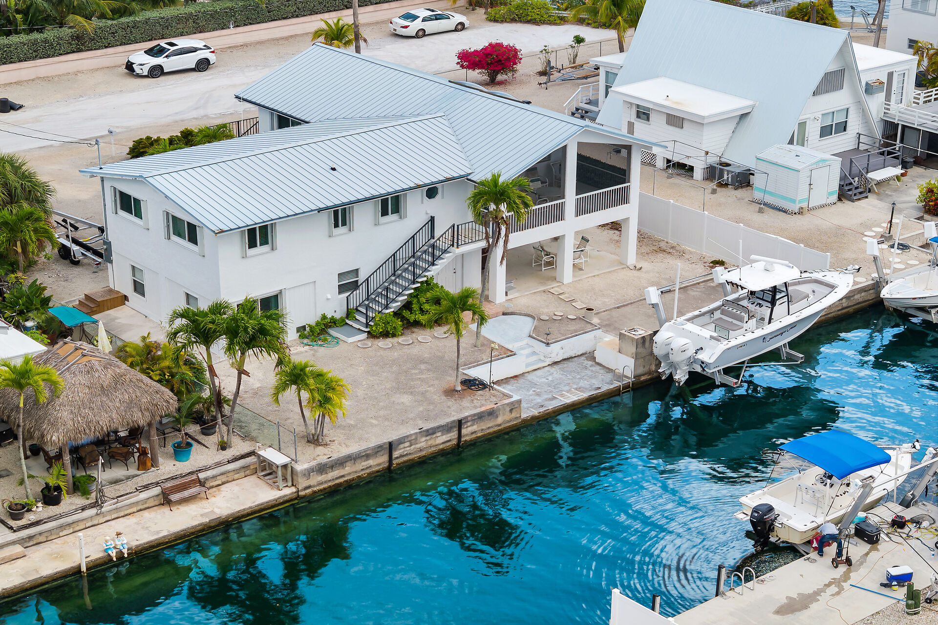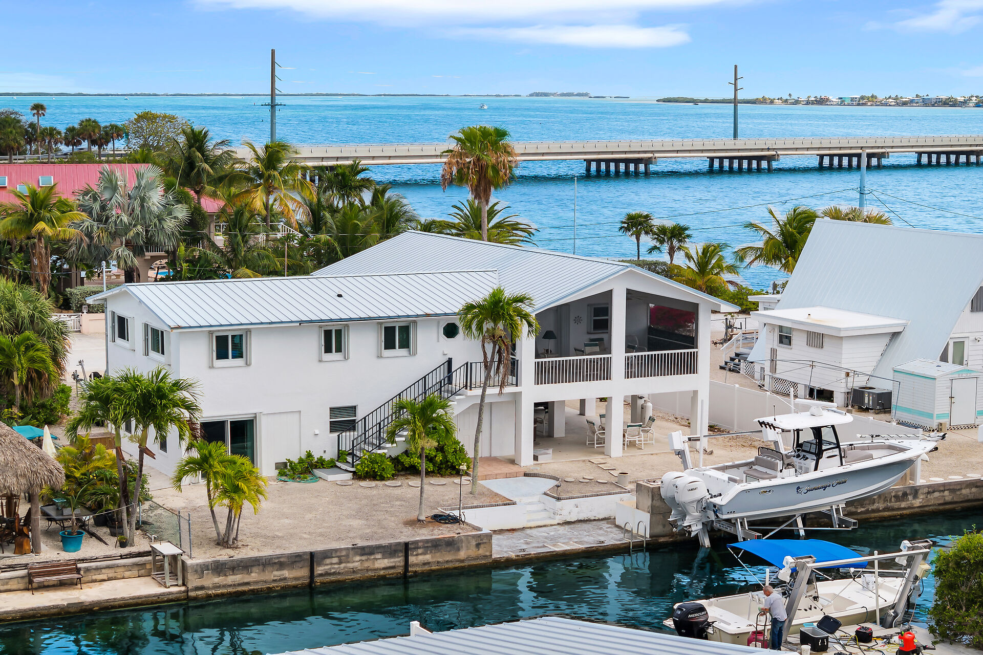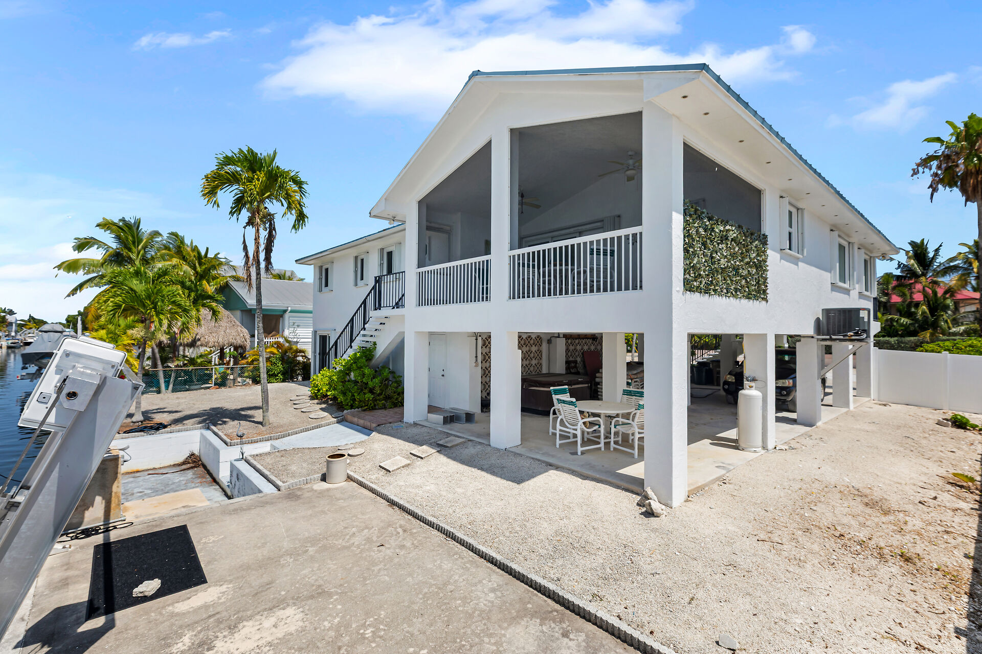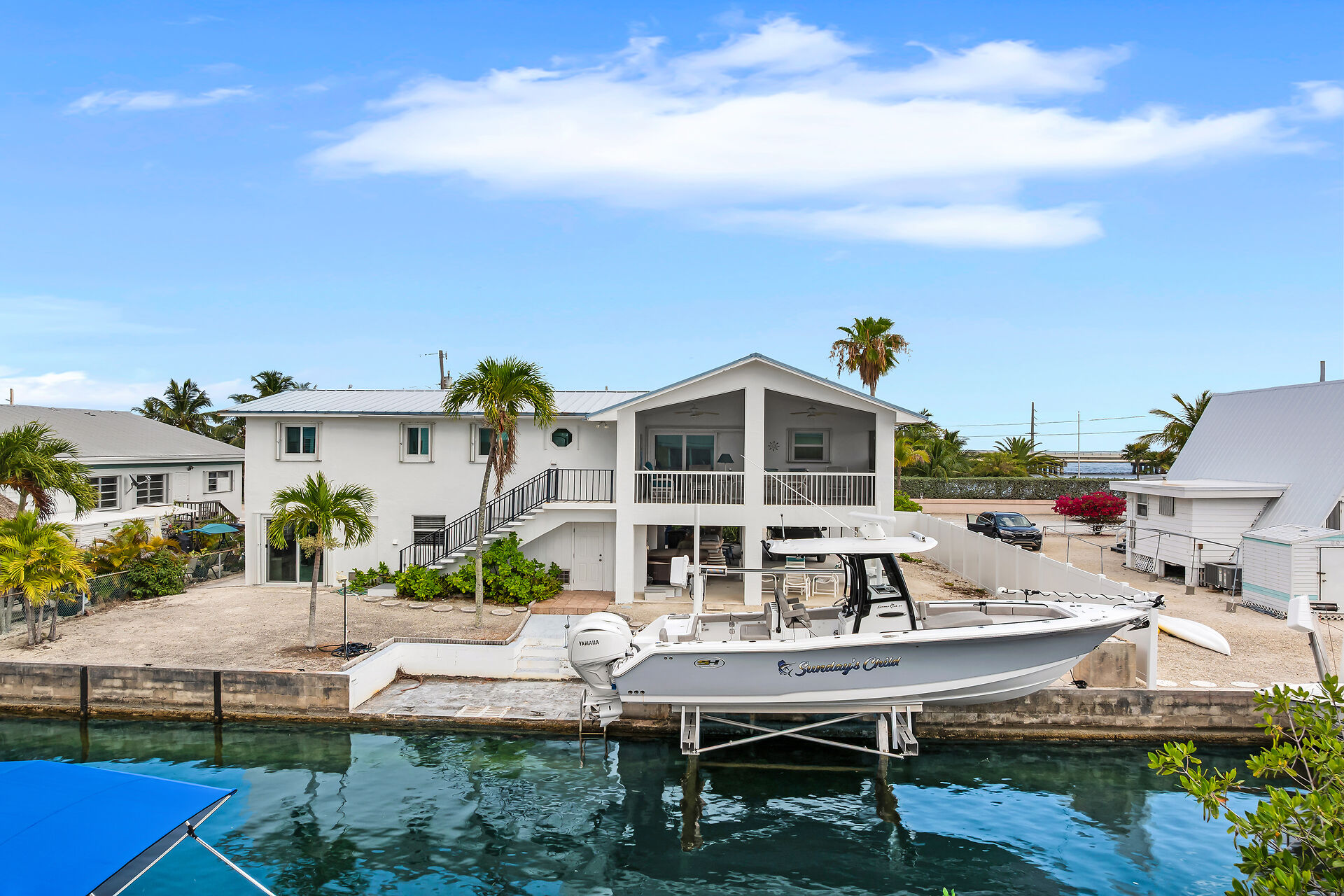 Just three homes in from Pine Channel, this elevated concrete home offers quick, easy access to open water. Enjoy peace of mind with Pre-FIRM status, impact windows/doors, and a 12,000-lb boat lift already hard-wired for convenience. The spacious, open layout flows into a chef-inspired kitchen with premium appliances, ample prep space, and storage galore. Elevator plans are in place, with room to add one later—ideal for aging in place or effortless grocery hauls. Inside and out, this well-maintained canal-front gem is designed for comfort, boating, and the best of Keys living.