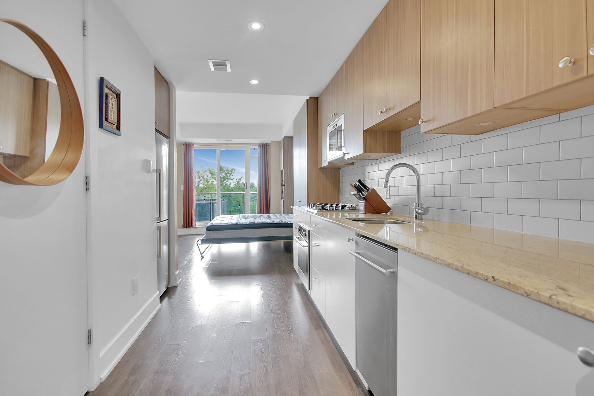 Welcome to The Kavanaugh. Located in Beachwood Village just minutes from the Market, Foreign Affairs and Parliament Hill this is an amazing location. Public transit at the door, guest suite in the building as well as a gym, rooftop patio, library and party room. This studio apartment is ready for a new owner. Built in Murphy Bed with closets and storage, kitchen has microwave hood fan, gas cooktop and dishwasher. Combo washer/dryer unit is included. Good sized 3 pc bathroom with large shower. Large balcony is accessed from the Livingroom and has a natural gas hookup for BBQ. Owned underground parking space with EV charger. Shopping including groceries is close by as well as many coffee shops and restaurants.
