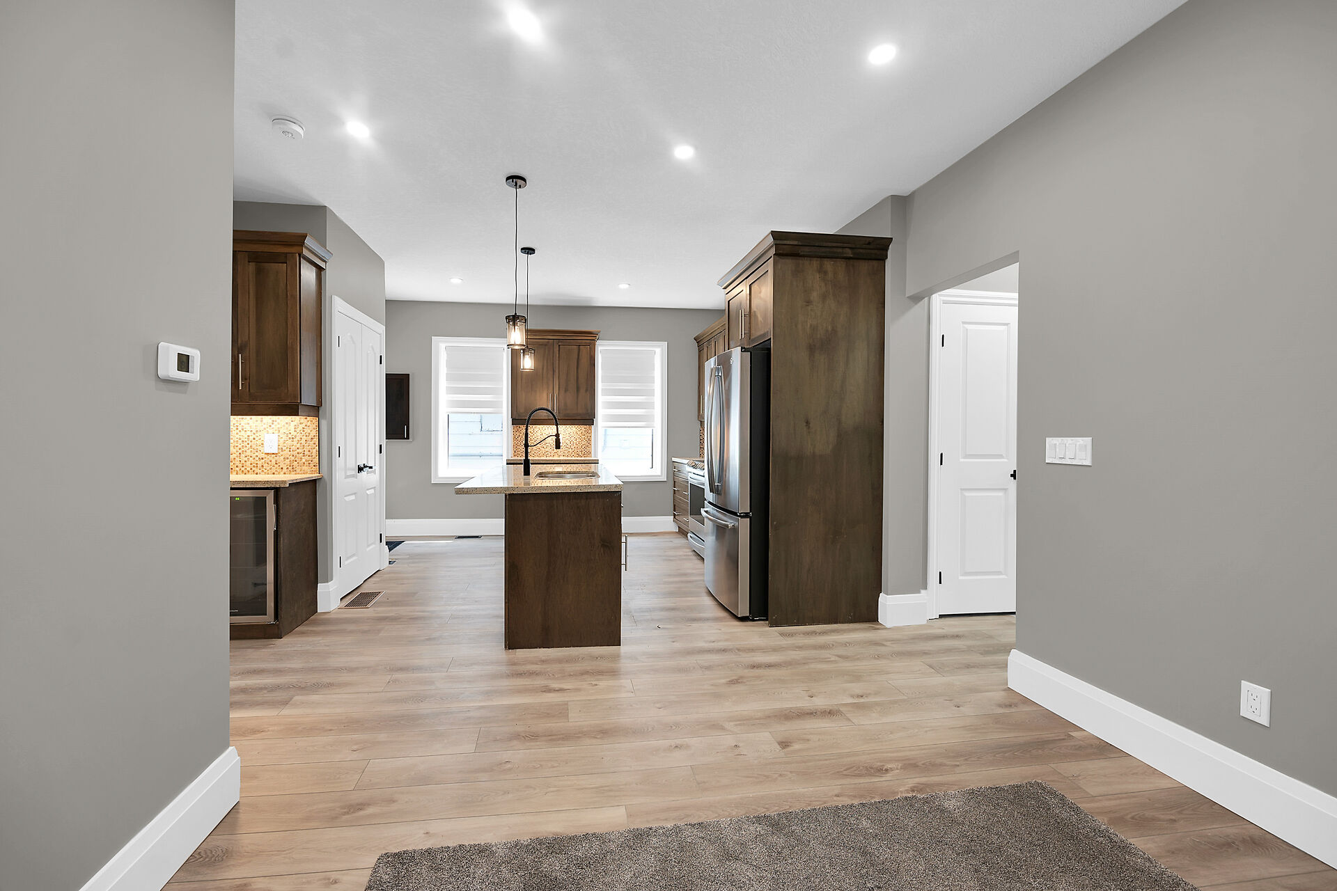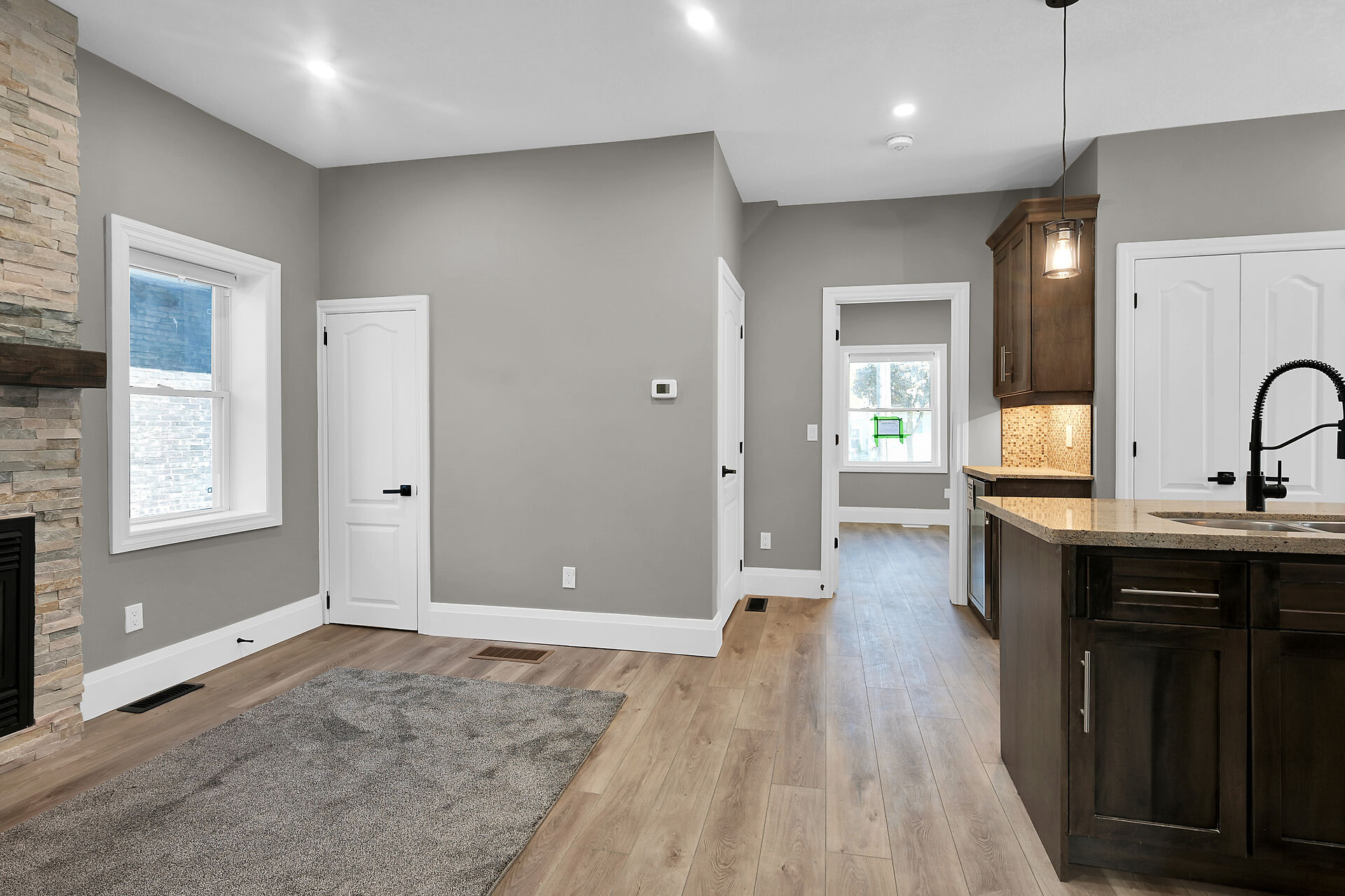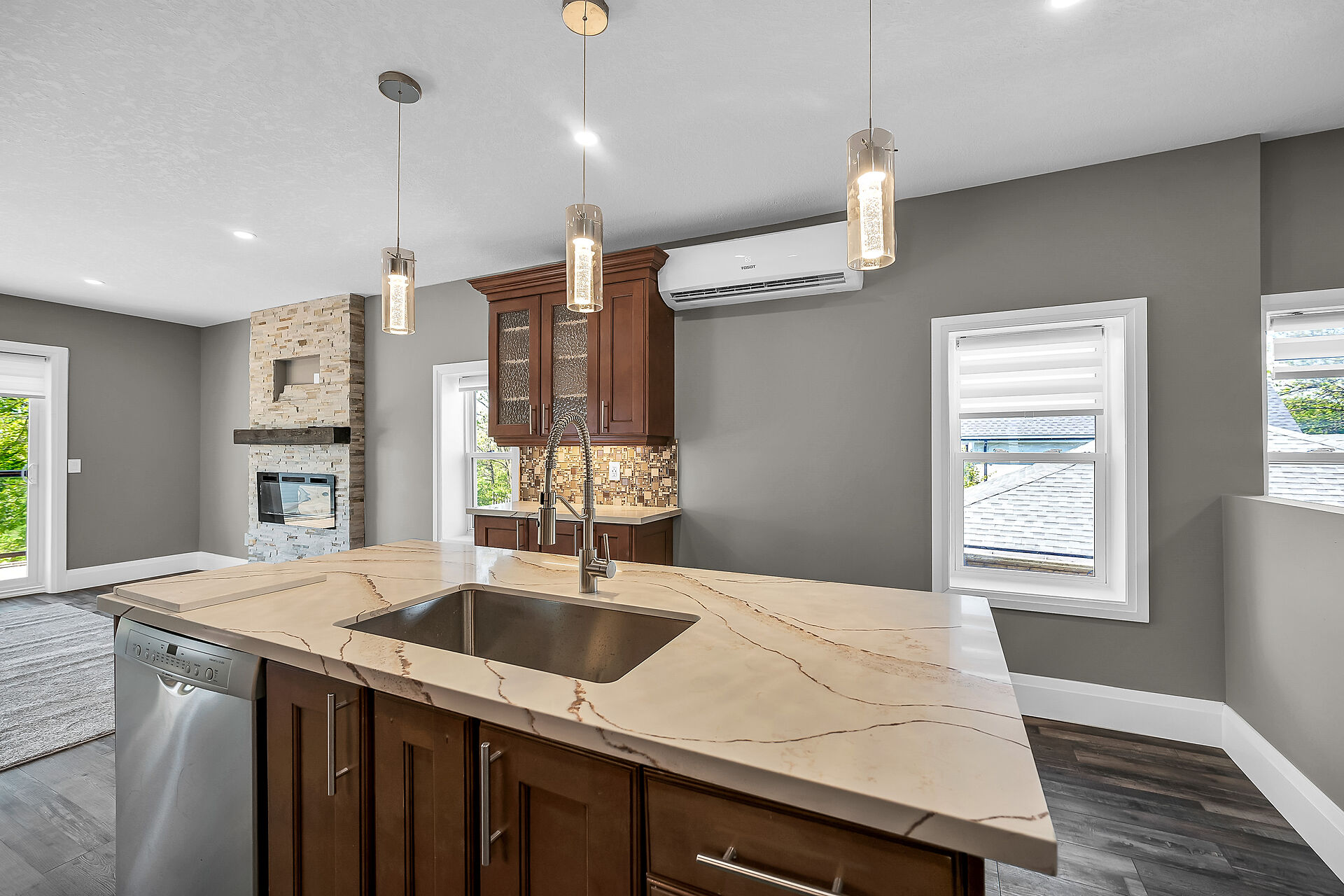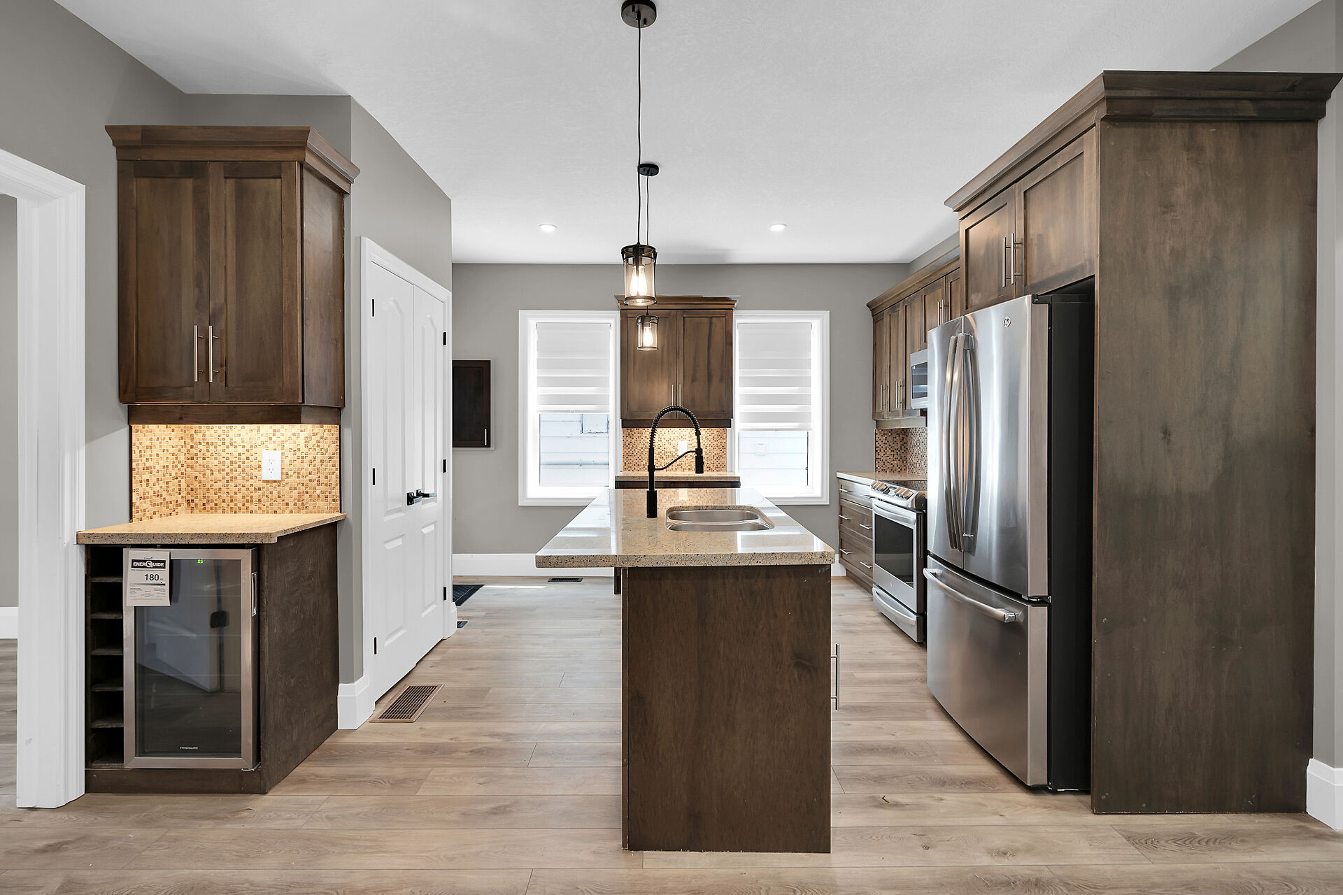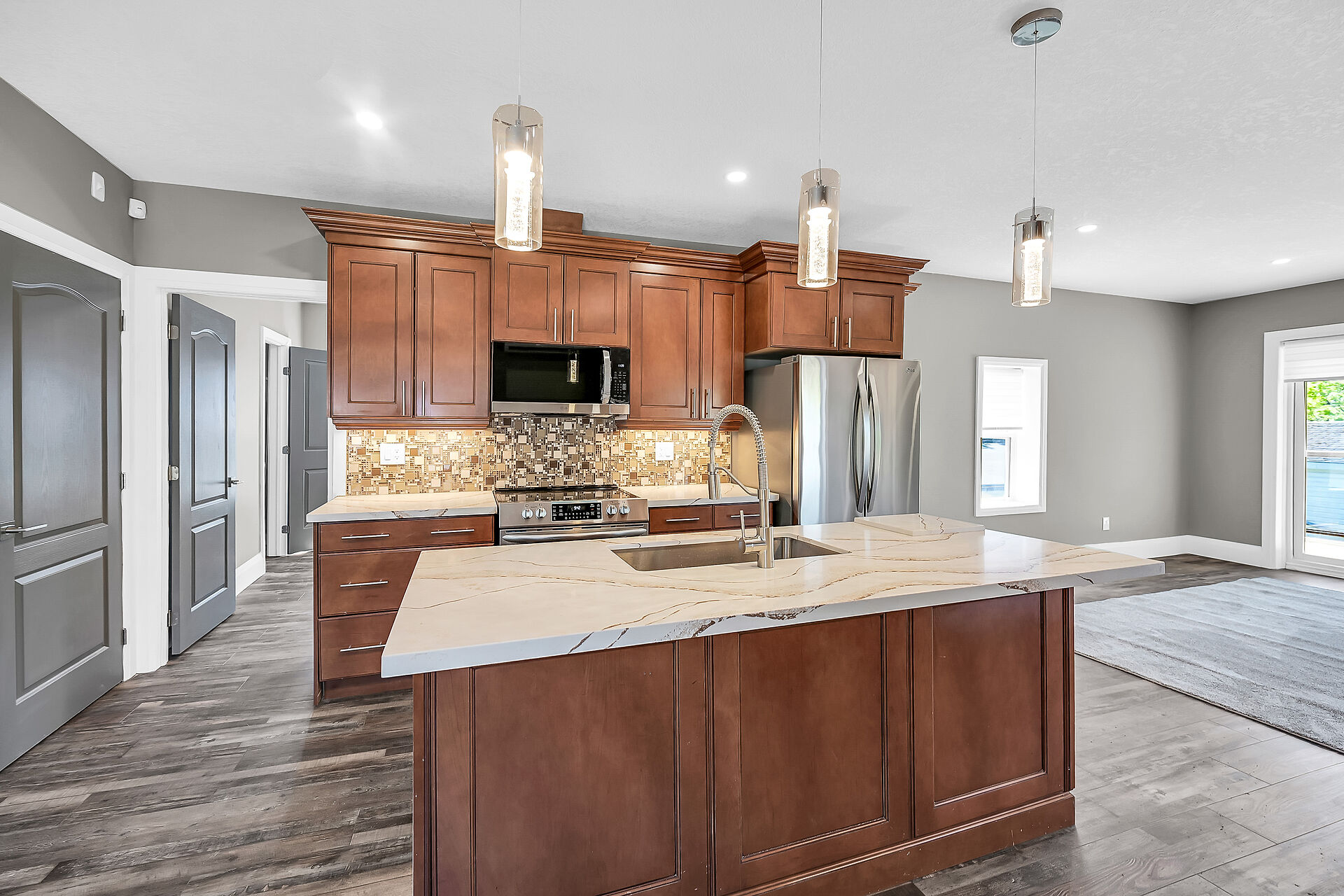 Don't miss this fantastic opportunity to own a spacious, versatile home with a self-contained accessory suite, ideal for extended family. Featuring 4 bedrooms total-2 on the main floor, 2 upstairs, each level has its own entrance, kitchen, laundry, and water softener. The main kitchen boasts granite counters; upstairs offers sleek Corian. Enjoy soaker jet tubs, a cozy gas fireplace on the main level, and an electric fireplace above. The private backyard backs onto the Grand River with scenic trails just steps away. Perfect for multi-generational living in a beautiful natural setting!
