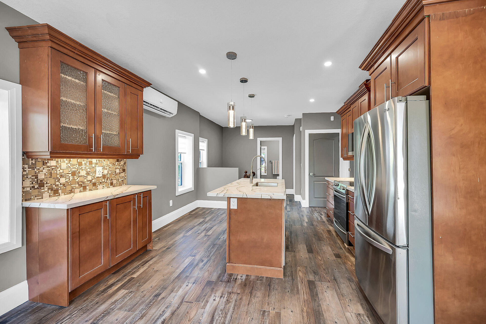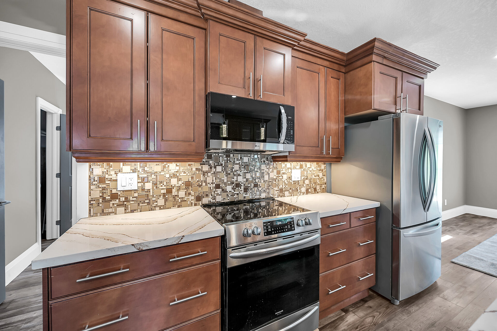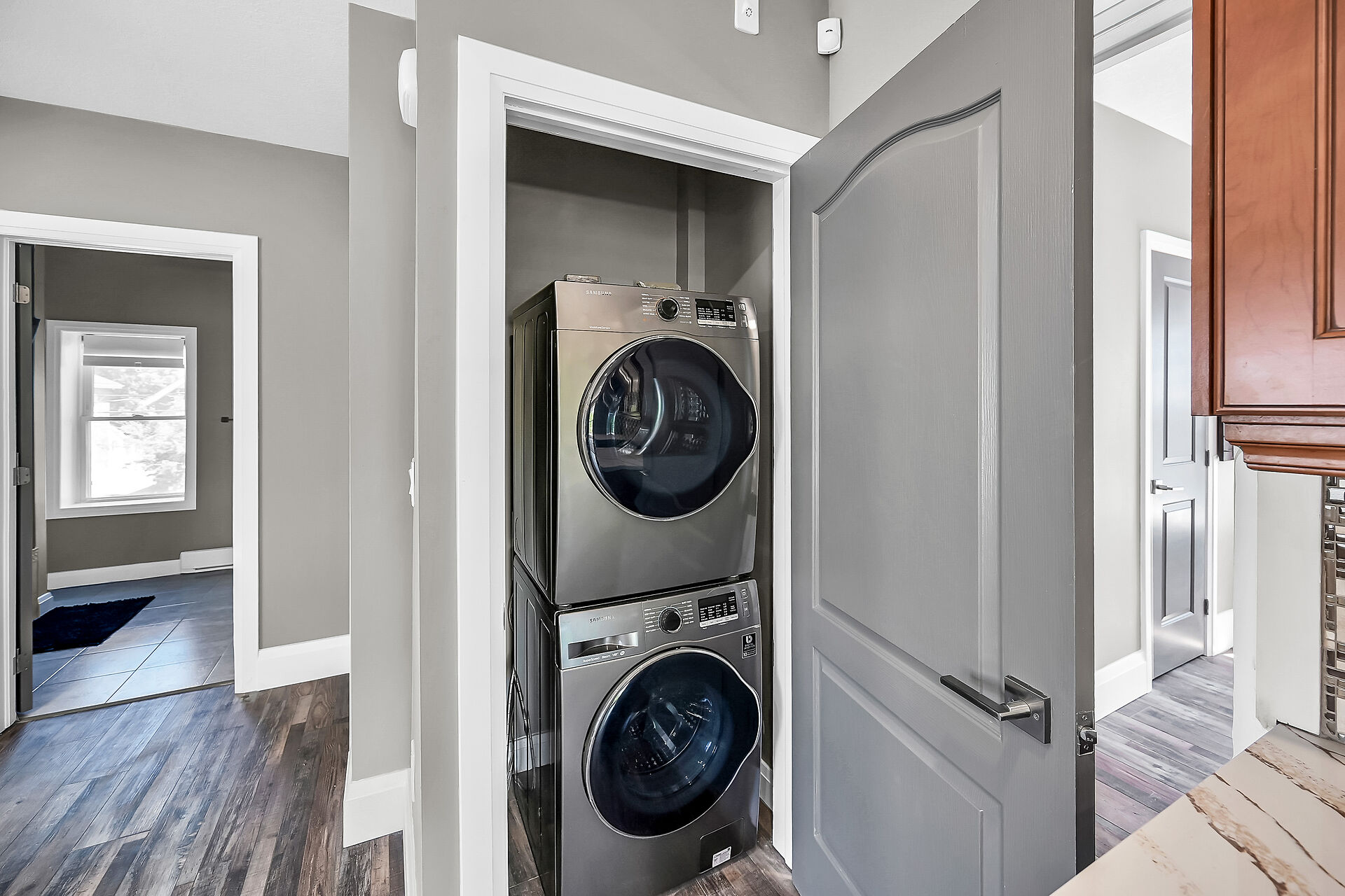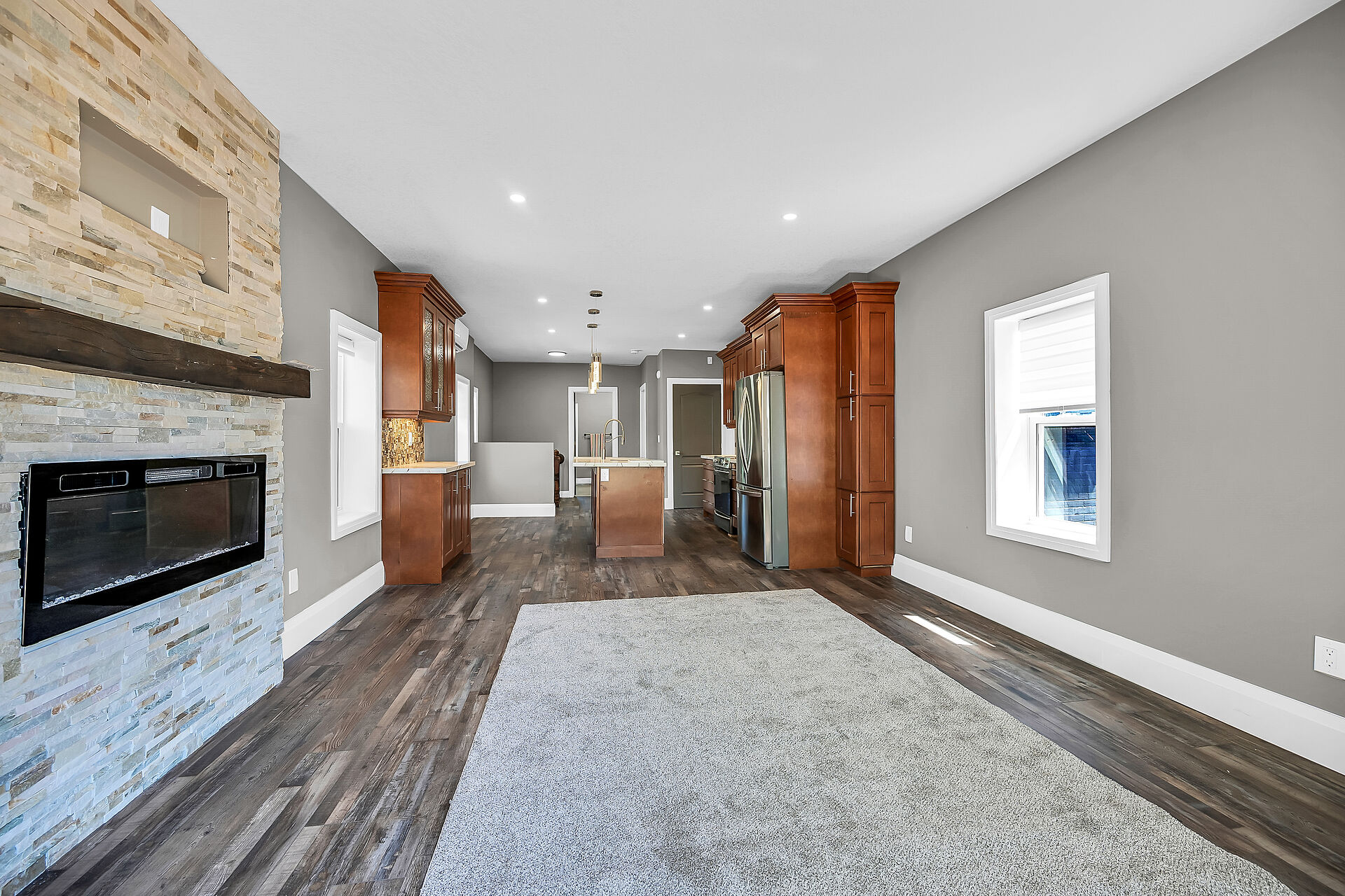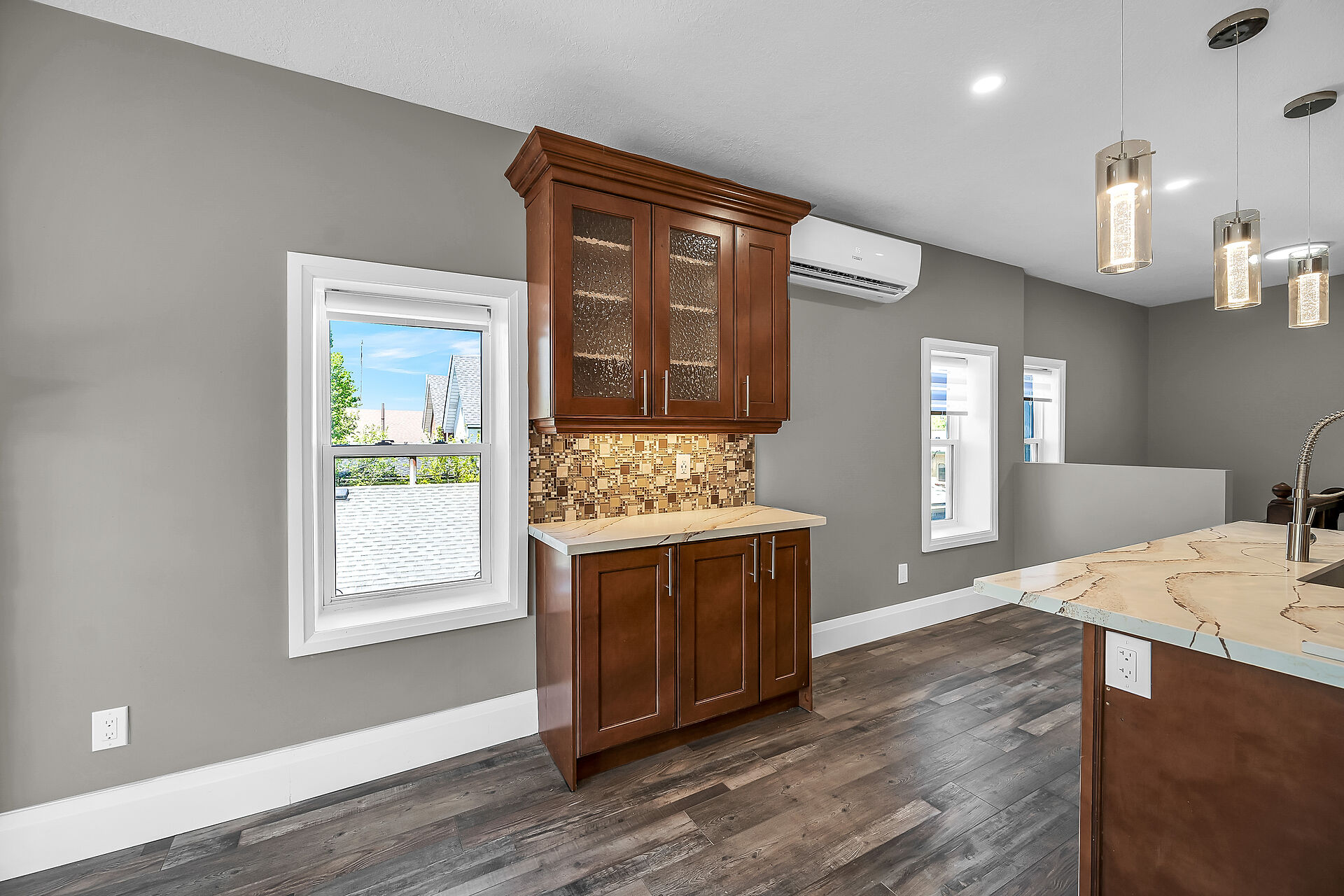Don't miss this fantastic opportunity to own a spacious, versatile home with a self-contained accessory suite, ideal for extended family. Featuring 4 bedrooms total-2 on the main floor, 2 upstairs, each level has its own entrance, kitchen, laundry, and water softener. The main kitchen boasts granite counters; upstairs offers sleek Corian. Enjoy soaker jet tubs, a cozy gas fireplace on the main level, and an electric fireplace above. The private backyard backs onto the Grand River with scenic trails just steps away. Perfect for multi-generational living in a beautiful natural setting!