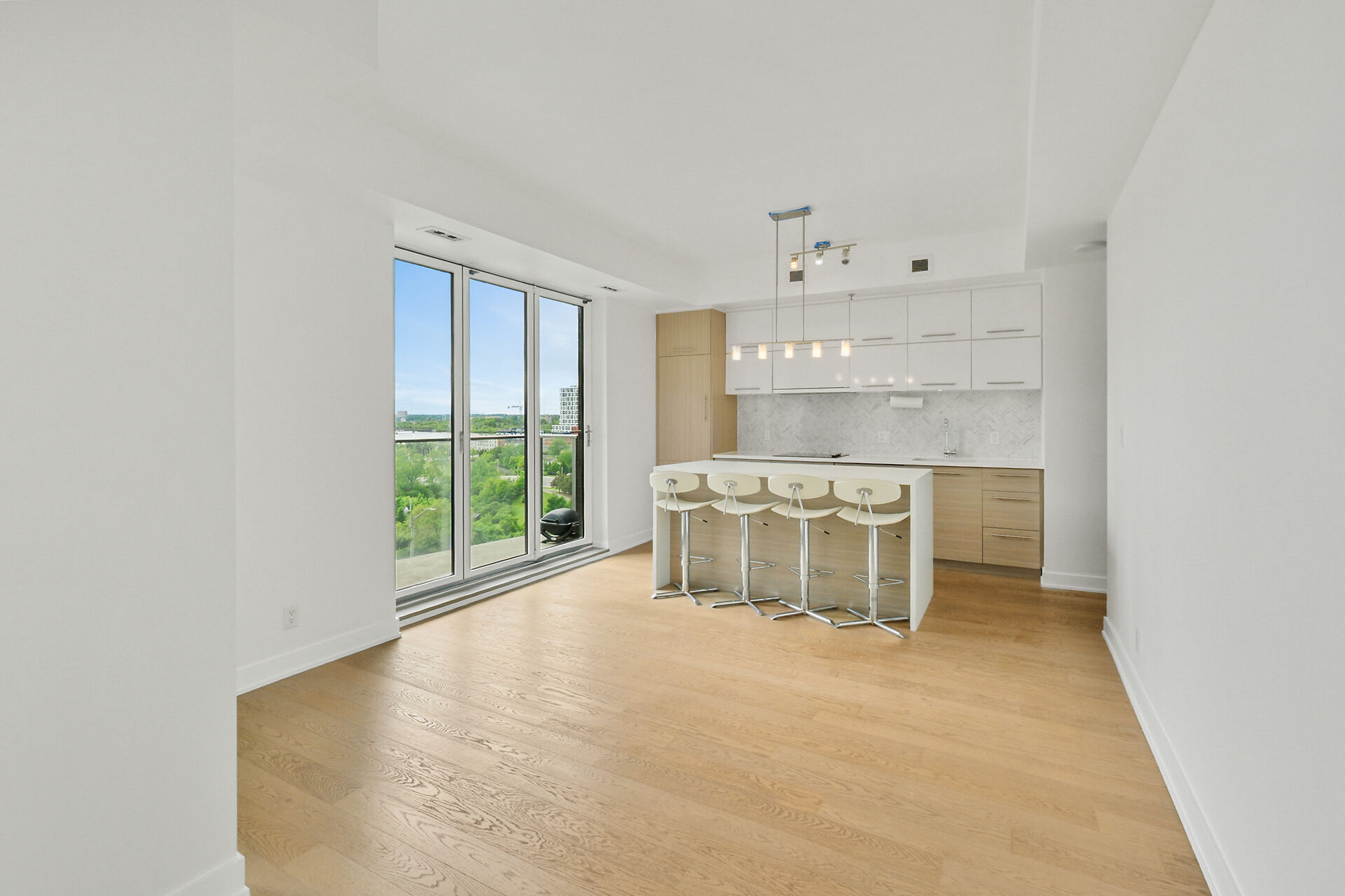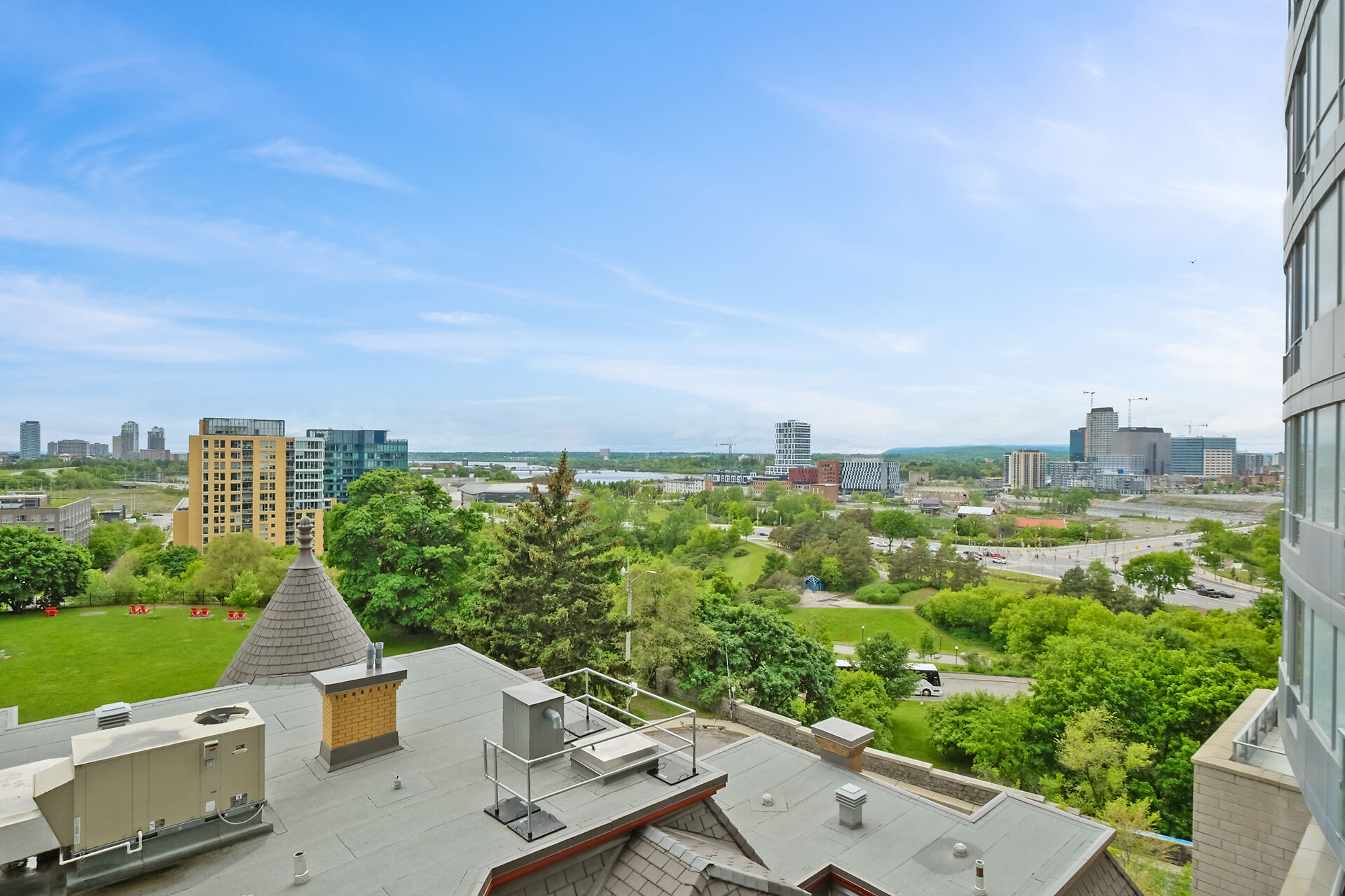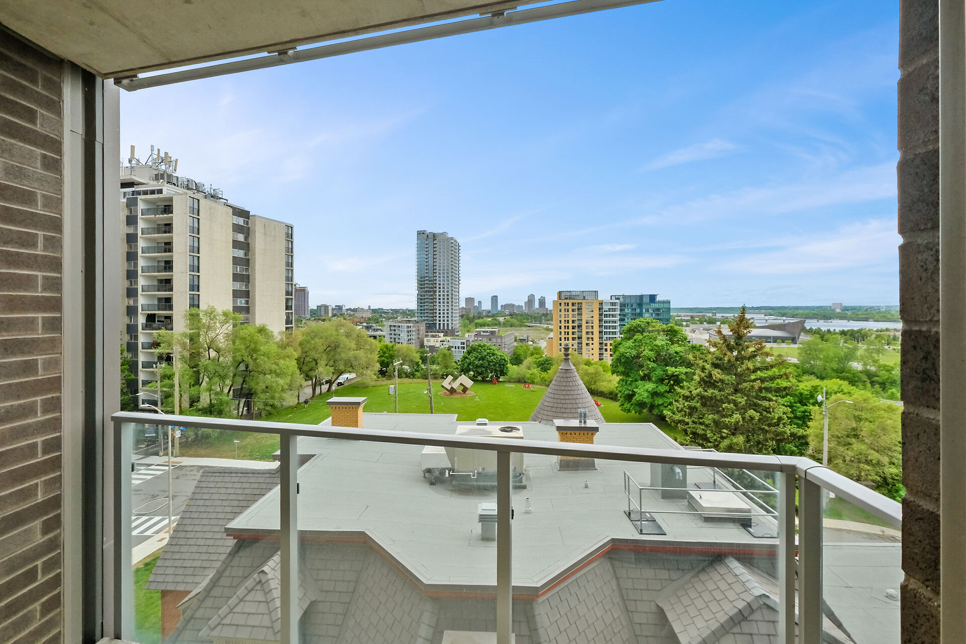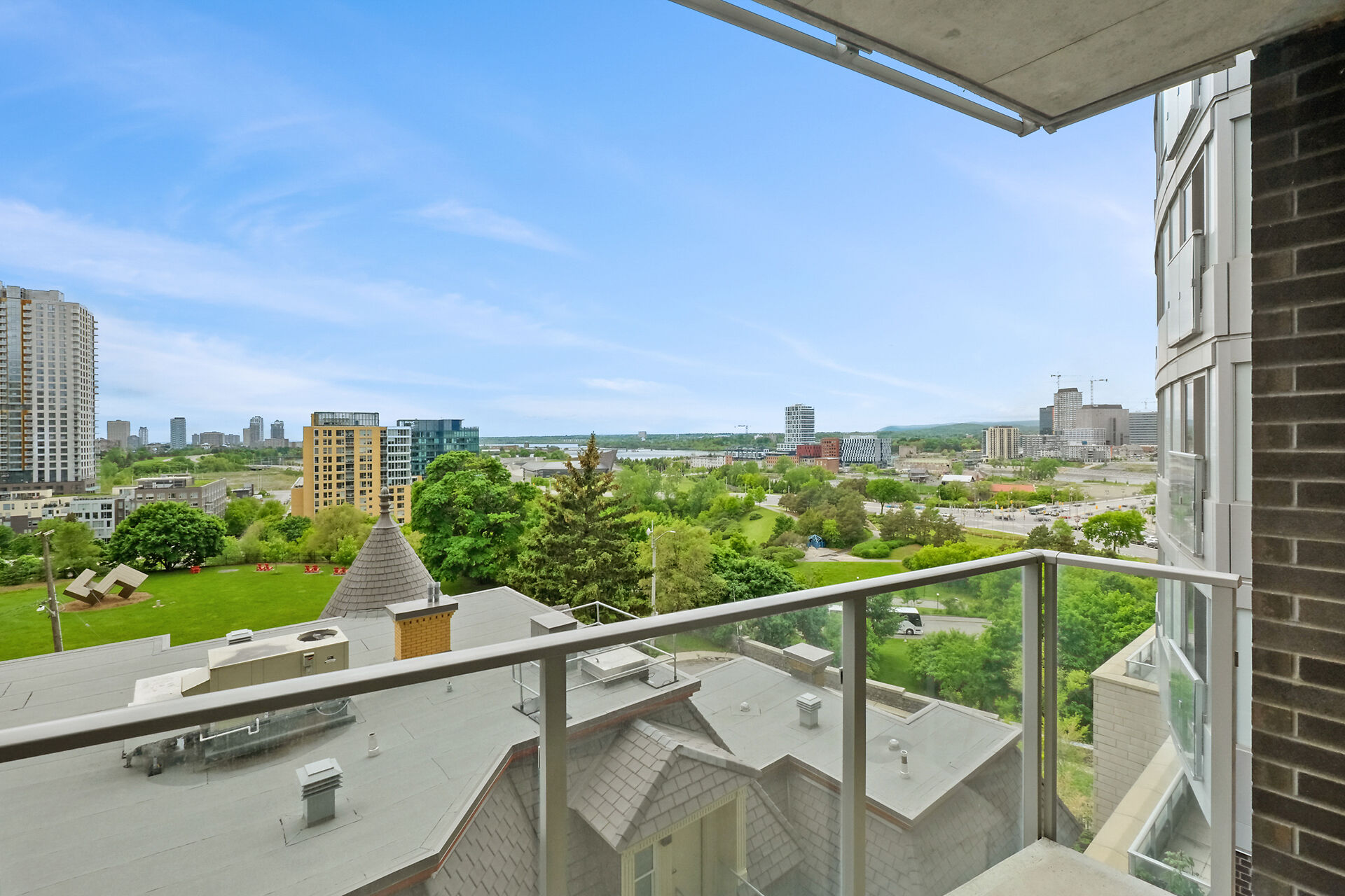 Take in the breathtaking views of the Ottawa River, the Gatineau Hills, and glorious sunsets. The LRT and transit are within easy steps of your front door. The Tempo model is stylishly finished, complete with an open concept kitchen /living area, a bedroom, walk-in-closet, 3 piece bathroom, AND a private den. . The European-styled, integrated kitchen has electric cooktop, stainless steel fronts and plenty of complimenting cabinetry and counterspace. Gleaming kitchen countertops, sparkling ceramic backsplash. The expansive island doubles as a breakfast bar with seating for four. A western exposure bathes the unit in natural daylight. Enjoy a comprehensive range of top-notch amenities!
