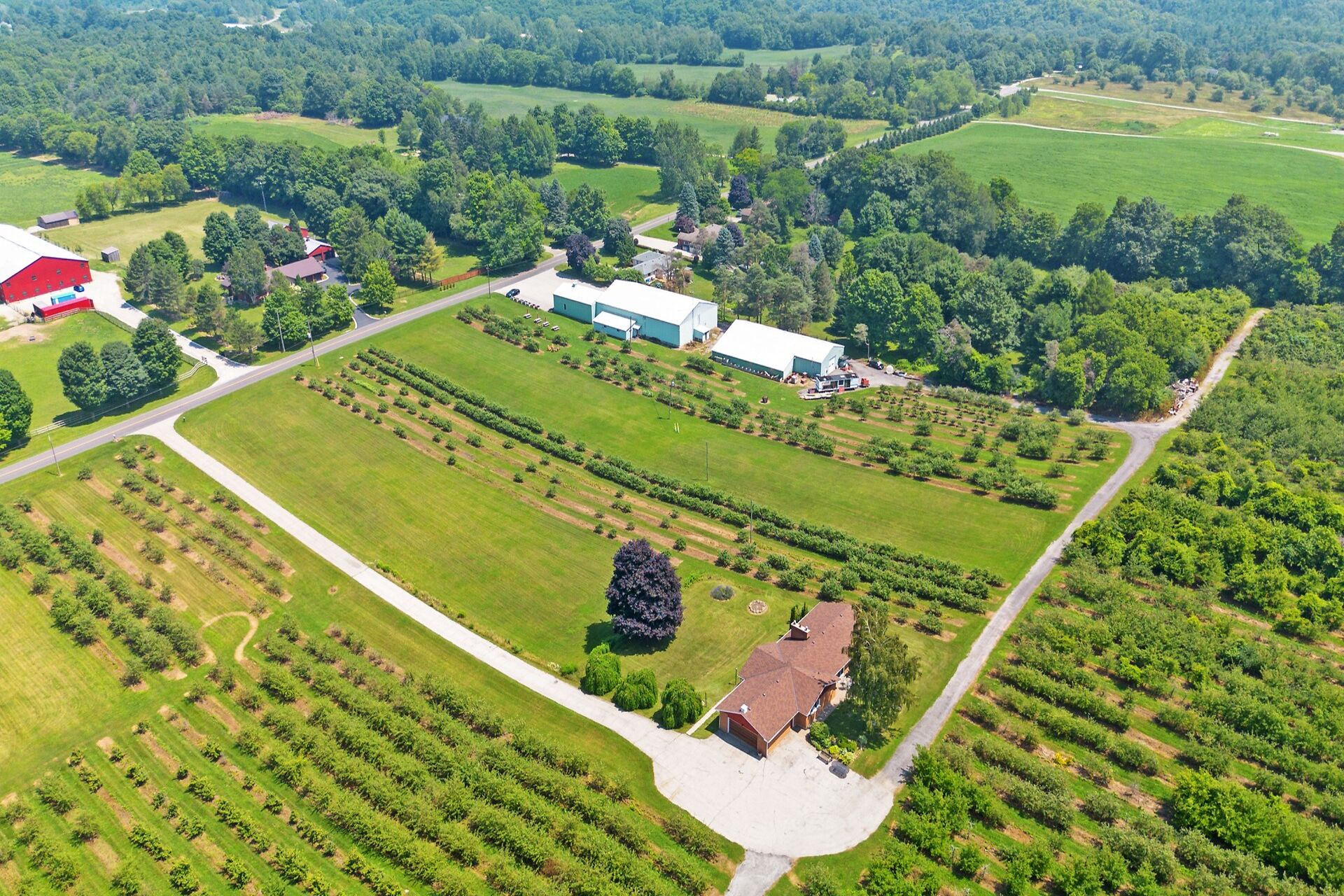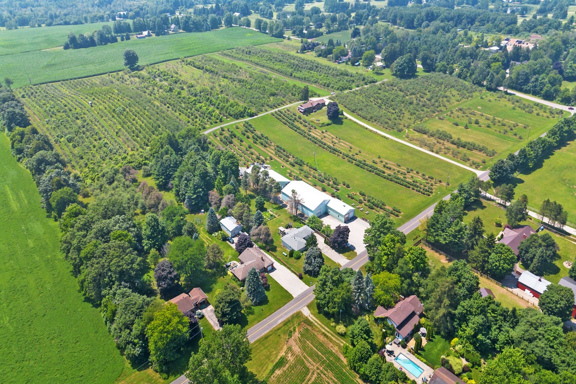 In the heart of a vibrant agri-tourism corridor, this 37+ acre farm has the perfect balance of rural charm & agricultural income. The sandy soil is ideal for 28+ acres planted apple trees with 8+ acres available for veggies, flowers, lavender, hops & specialty crops. The fully licensed cidery, distillery, retail & storage with 15-ft ceilings, shipping, washrooms & ample paved parking. The distillery has cold storage plus more insulated, heated space with drive-in doors for a wide range of permitted uses. A 3+2 bdrm 3 bath bungalow offers housing for workers, income or guests. Bell Fibre, liquor licenses, wholesale & retail network, make this a multi-purpose investment. Live, work and grow—all in one place.