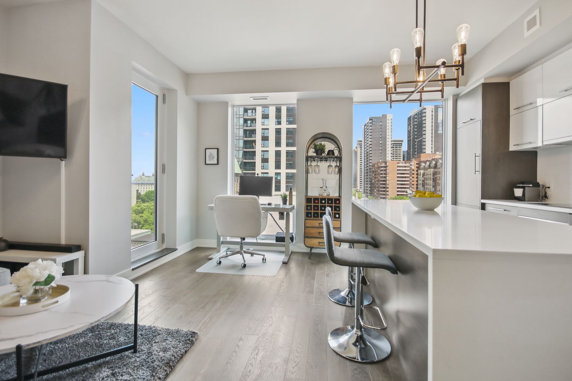 Luxury living never felt so good. This tastefully appointed 1-bedroom, 1-bath condo offers high style with a boutique-hotel vibe & the peace of mind that comes with attentive concierge service. Perched above the city, featuring views of downtown, the Ottawa River, and Gatineau Hills - perfect for watching fireworks and a front row seat to the changing colours of the seasons. Top-tier amenities without leaving the your home: fully equipped gym, sauna, guest suites, party room, boardroom, dog wash, car wash. Steps to Parliament Hill, nightlife, restaurants, transit, Ottawa River pathways. An ideal home base or chic pied-à-terre for stylish, secure downtown living. A wonderful opportunity to call Cathedral Hill home!