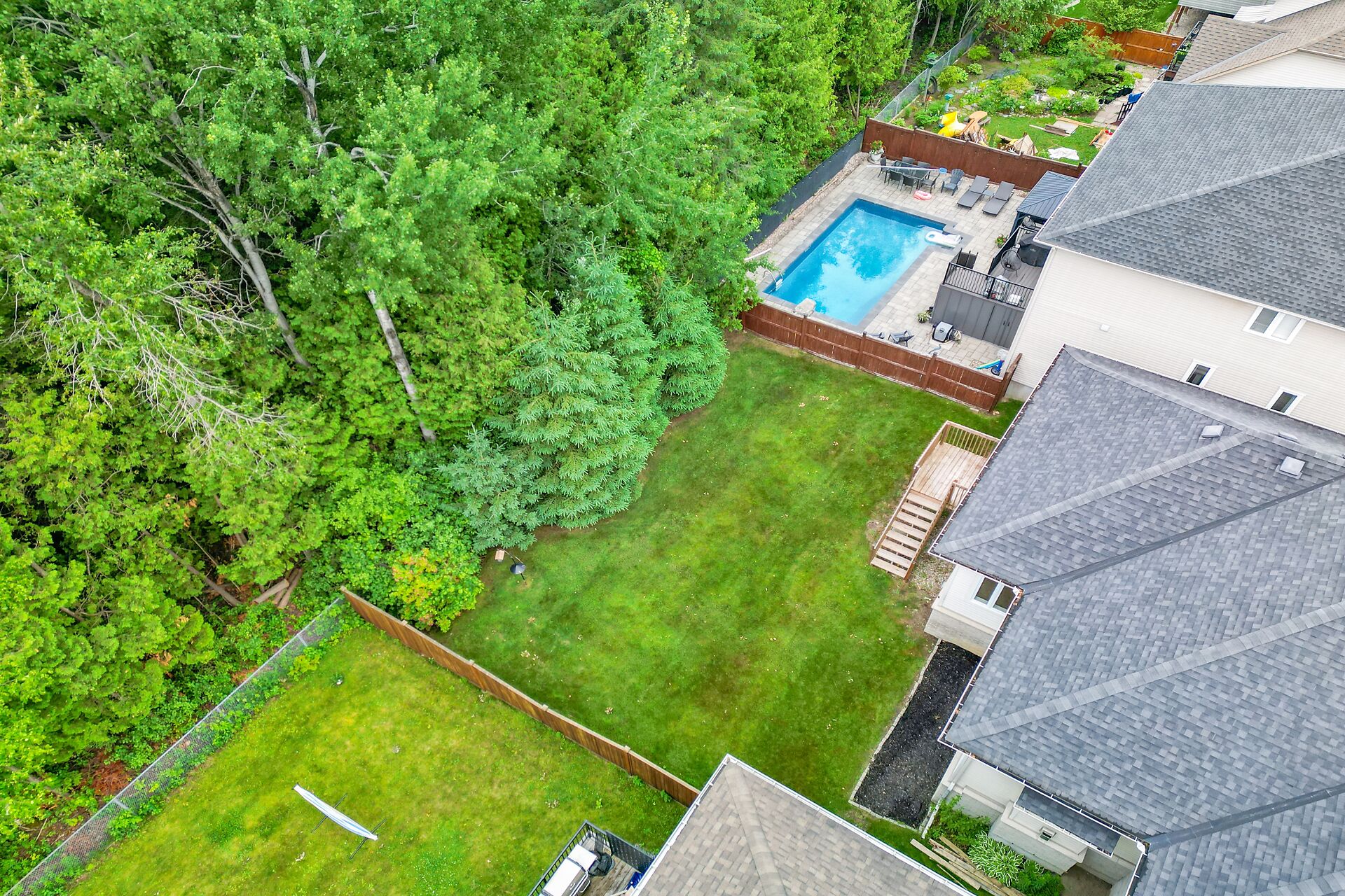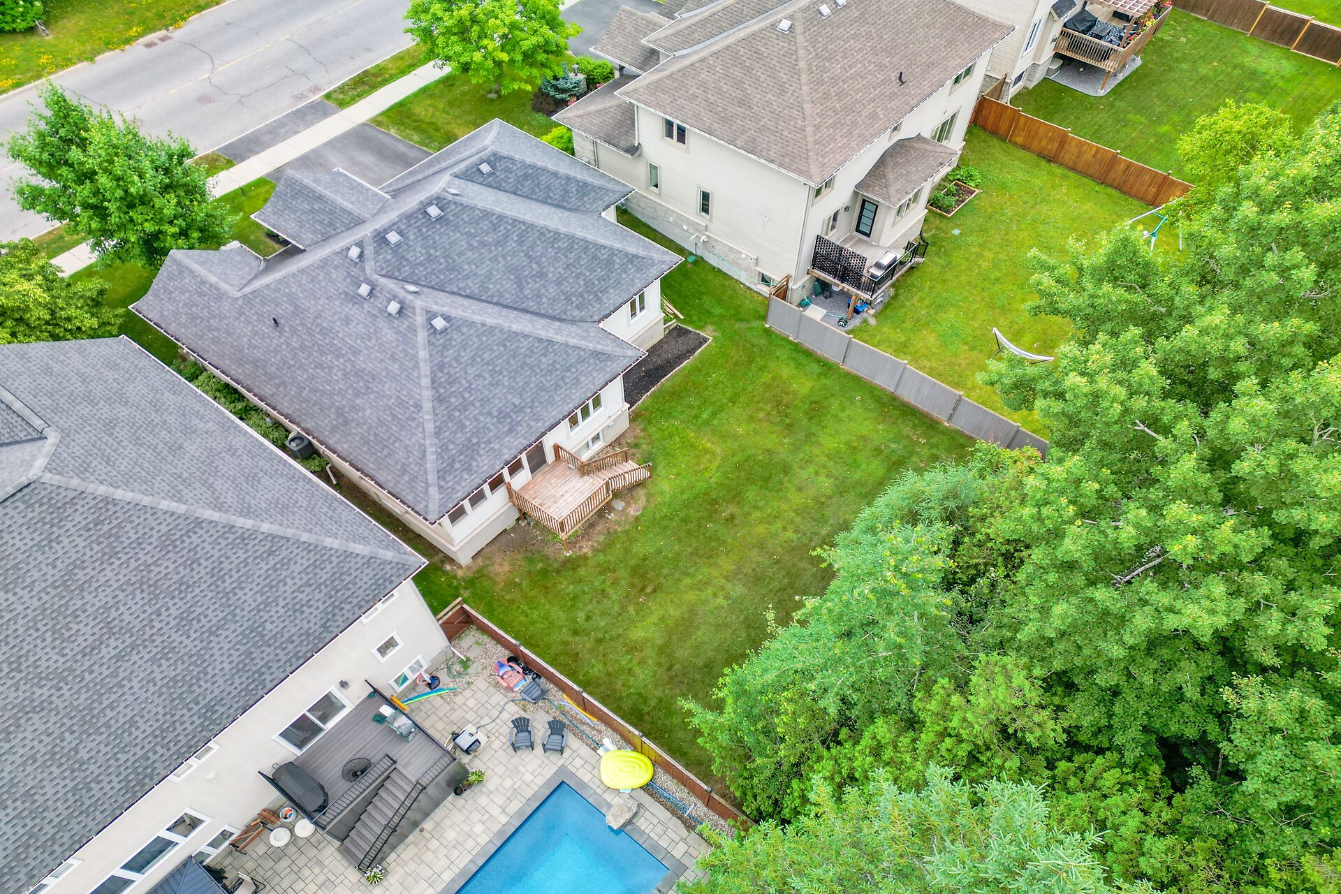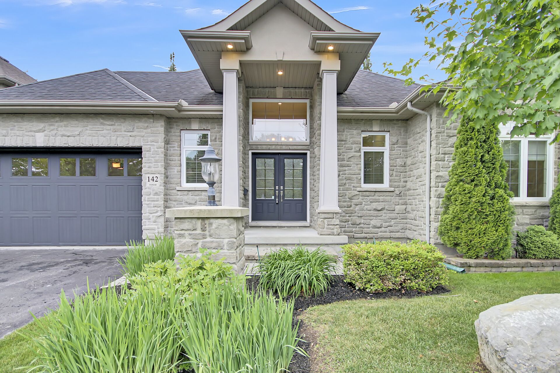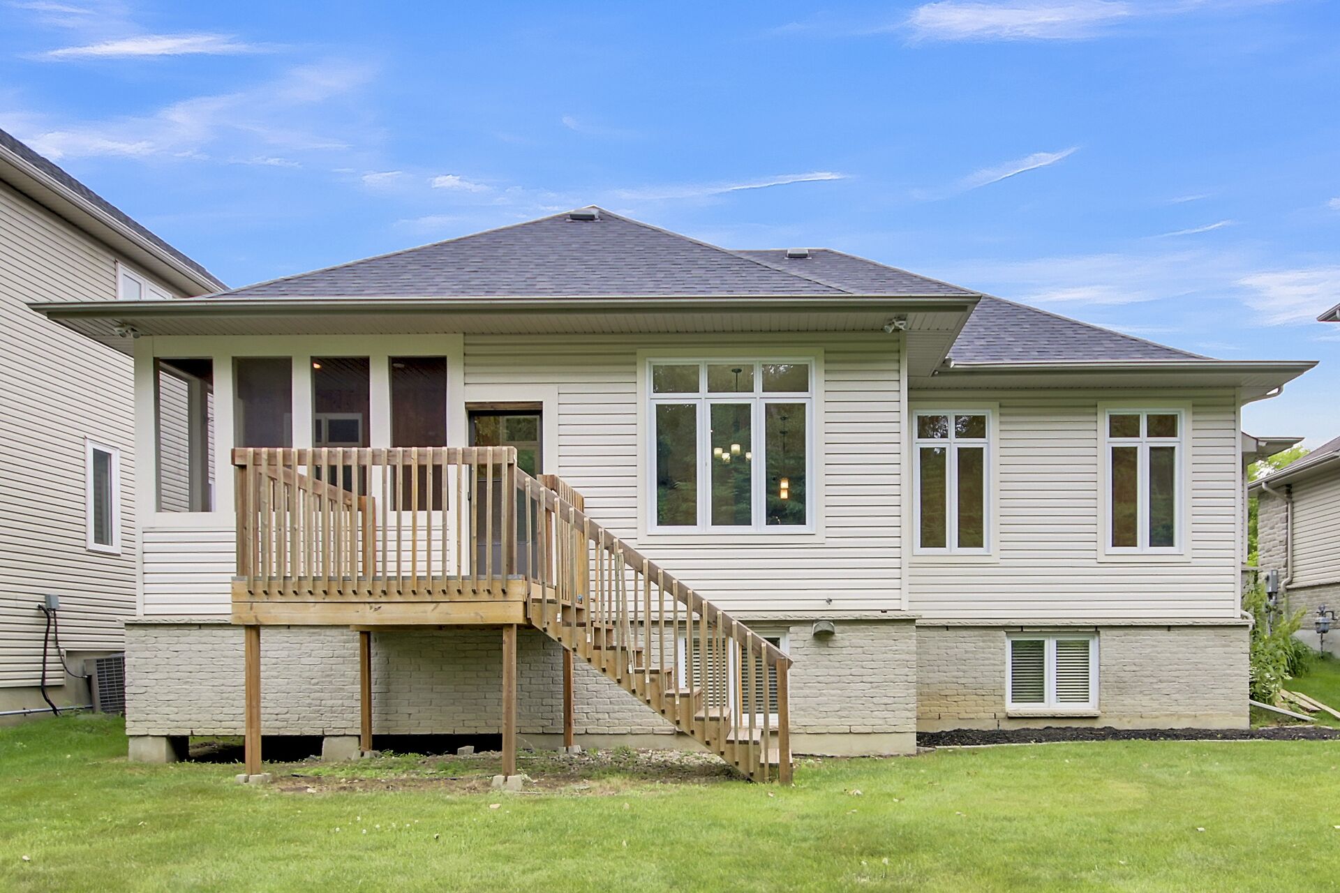Situated on a premium lot w/NO REAR NEIGHBOURS and incredible curb appeal with full stone facade and signature "chalet styled" roof lines... this exceptionally well maintained, original owner kept home features a stunning 2+1 bedrm design that is "THEEE" perfect choice for downsizers, empty nesters or even professional couples!! lofty 11' and 9' ceil,refinished hardwd floors, staircase & handrail,kitchen w/upgraded cabinetry, granite counters,S.S appliances and walk in pantry, eating area has direct access to a 15'x7' screened in porch and separate deck,pool sized yard backing onto private wooded area. Fin.recrm,3rd bedrm,bathrm + storagerm in L/L! Full irrigation system.A must see for bungalow lovers!!