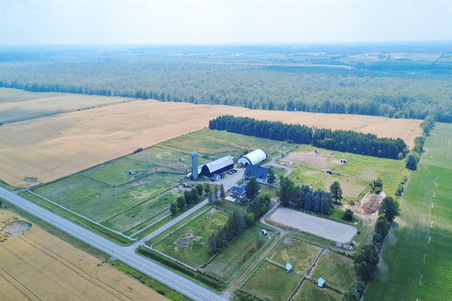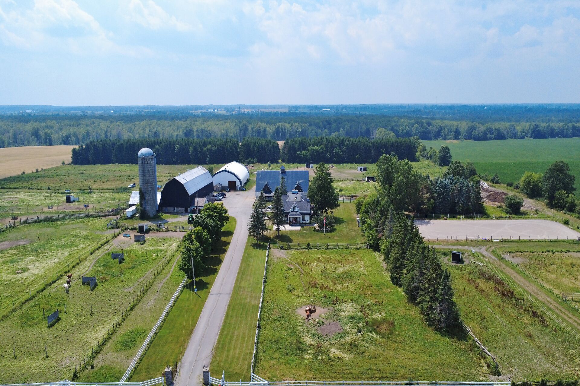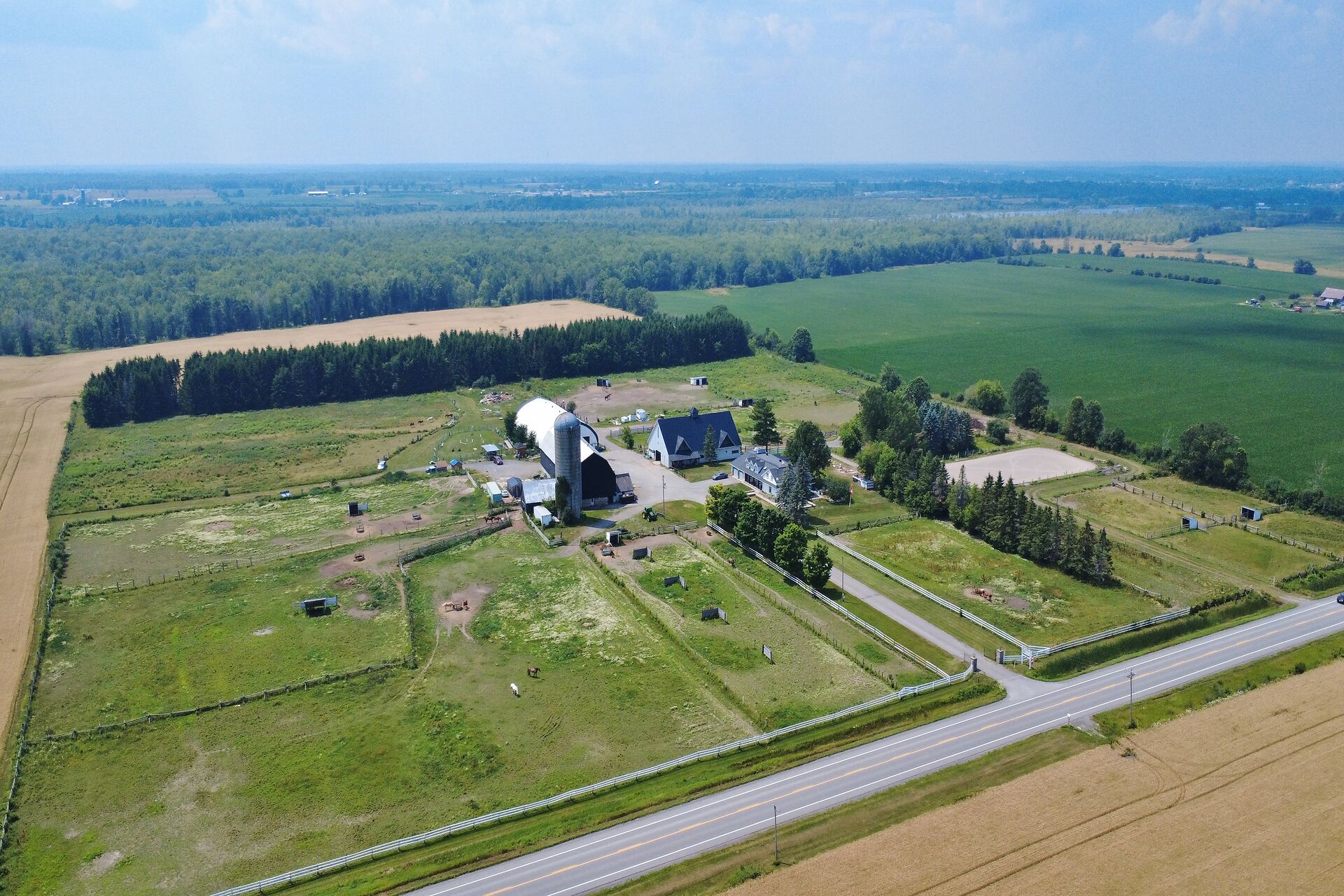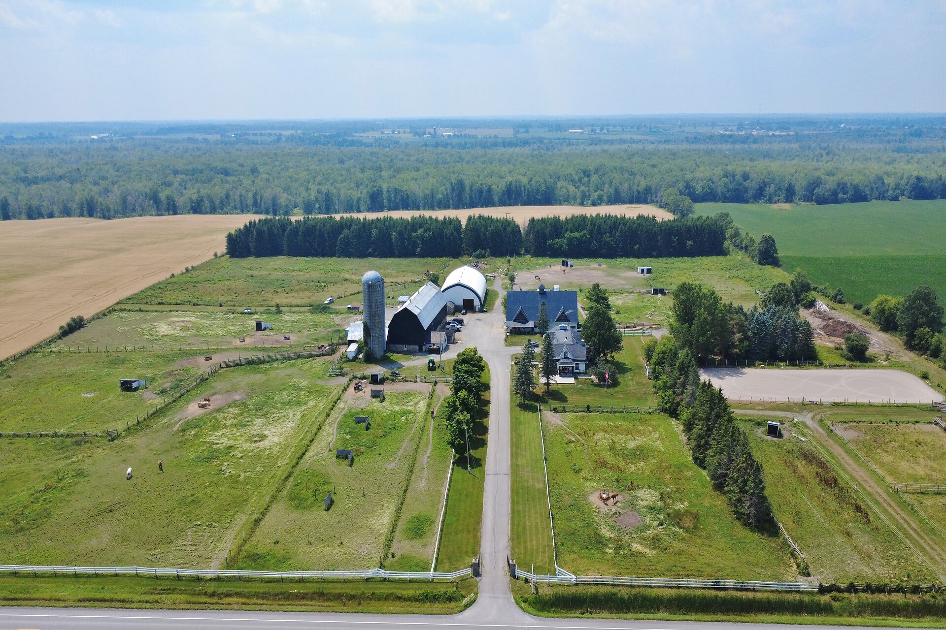 Welcome to FOX HOLLOW FARM! The property is a turn key Equine business with 23 box stalls between the 2 barns including a large foaling stall . Fox Hollow boasts indoor and outdoor riding arenas, 24 paddocks surround the property with 12 shelters/ windbreaks. The century old barn has seen numerous professional upgrades including the stalls, oversized lockers, the back open area for large and small bales, which has been lifted, the foundation redone and there is an automatic water dispenser for the horses. The home boasts over 4600ft2 of finished living space with 5 bedrooms on the 2nd level. Large rooms throughout including a boarders lounge for the riders and staff to enjoy.