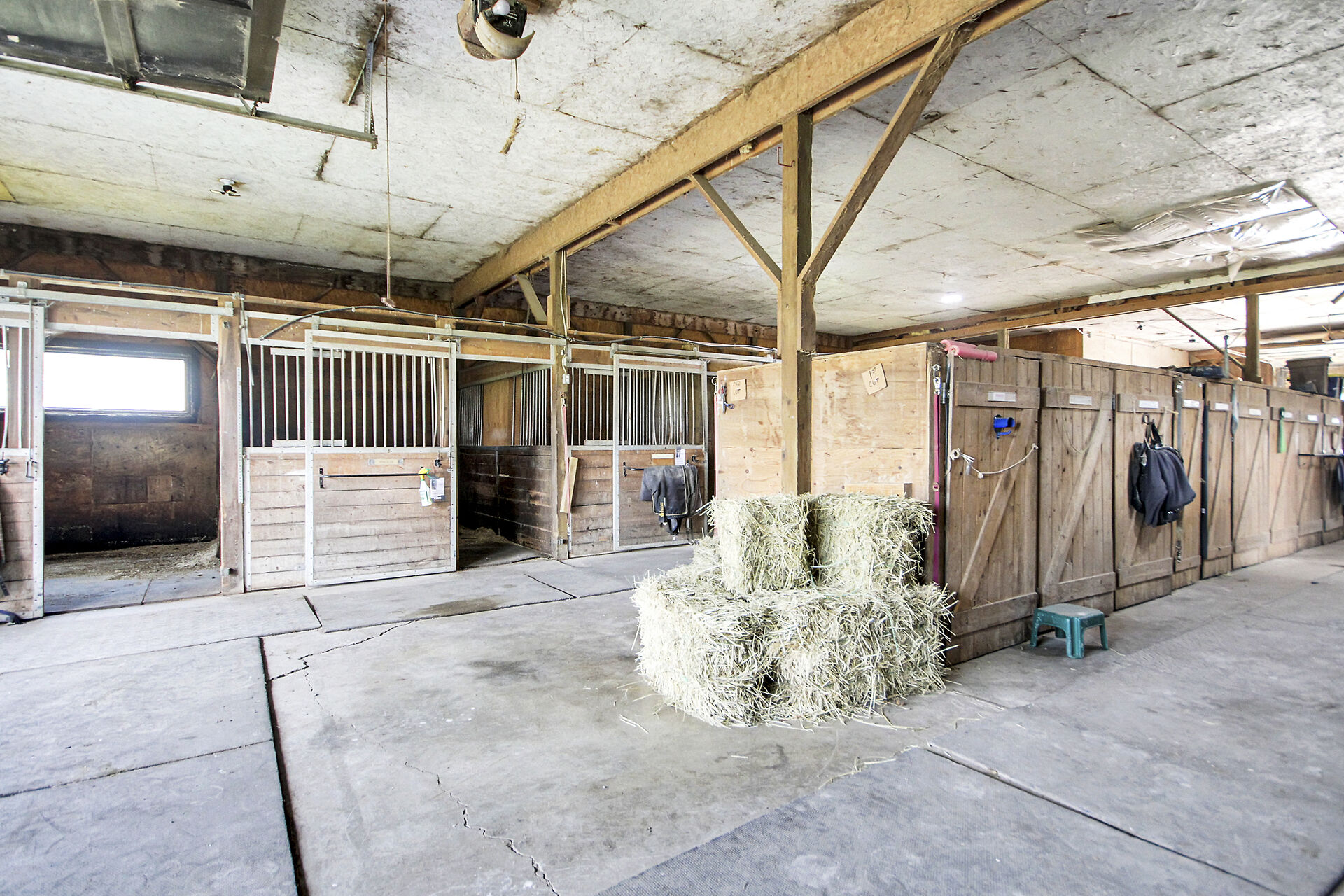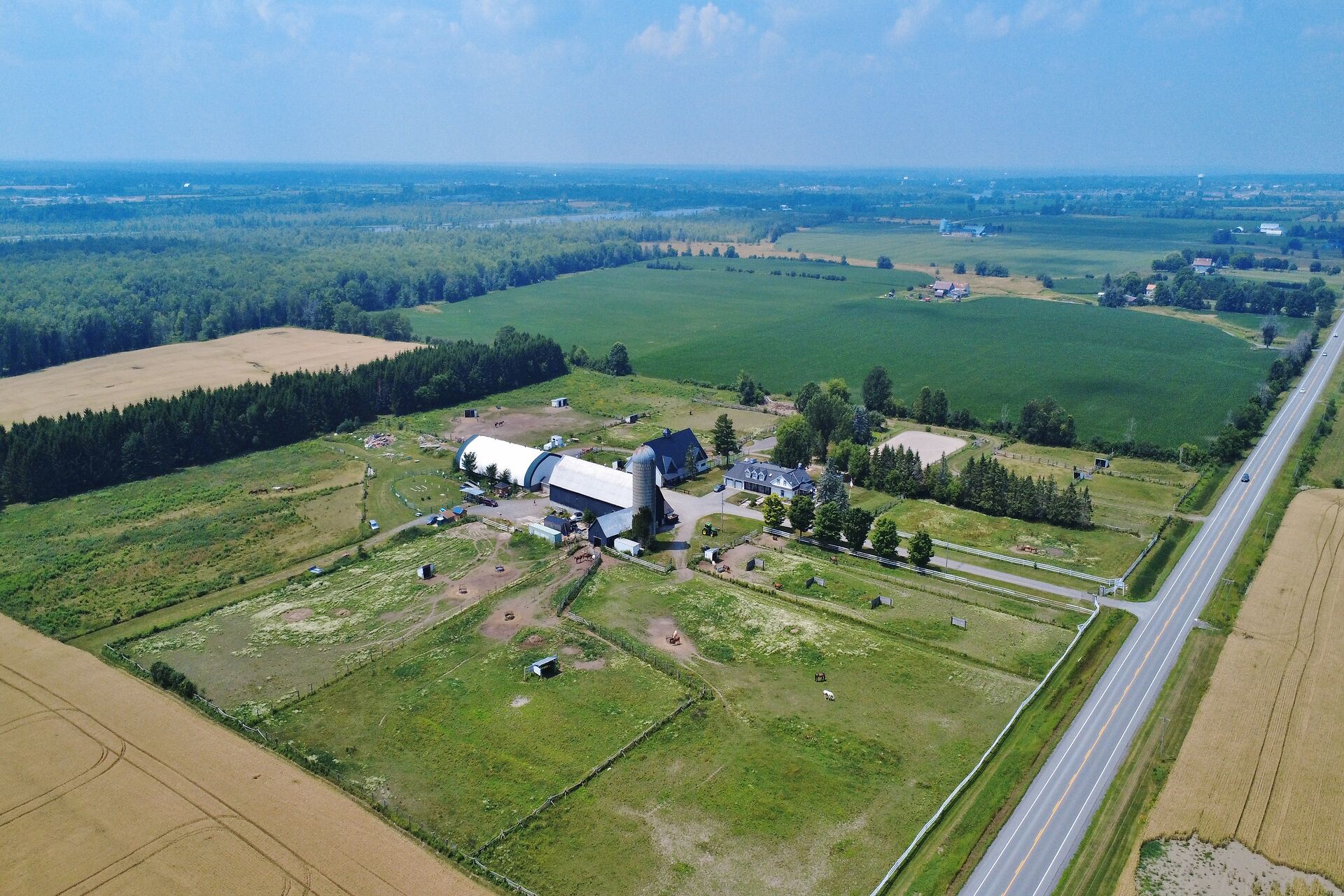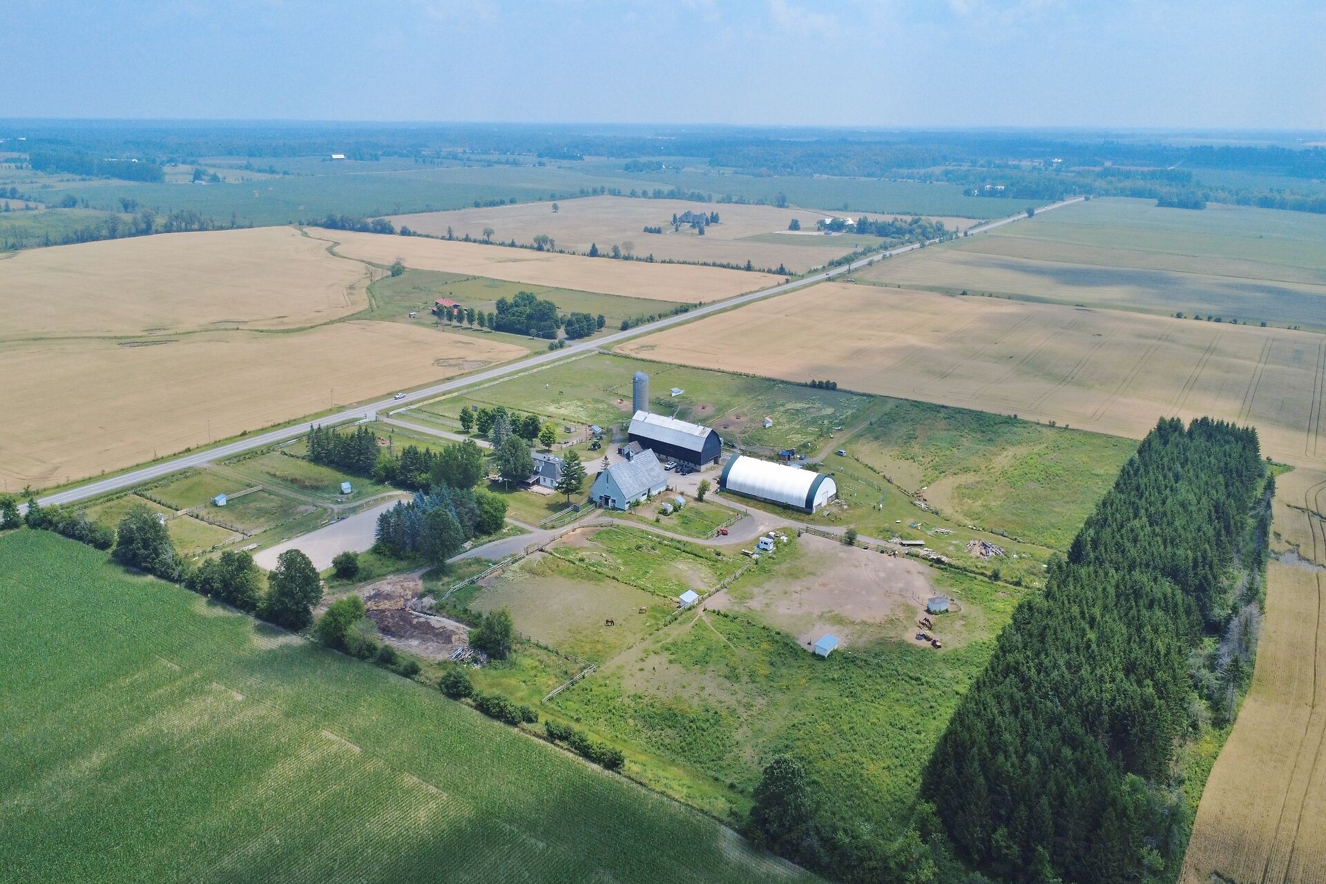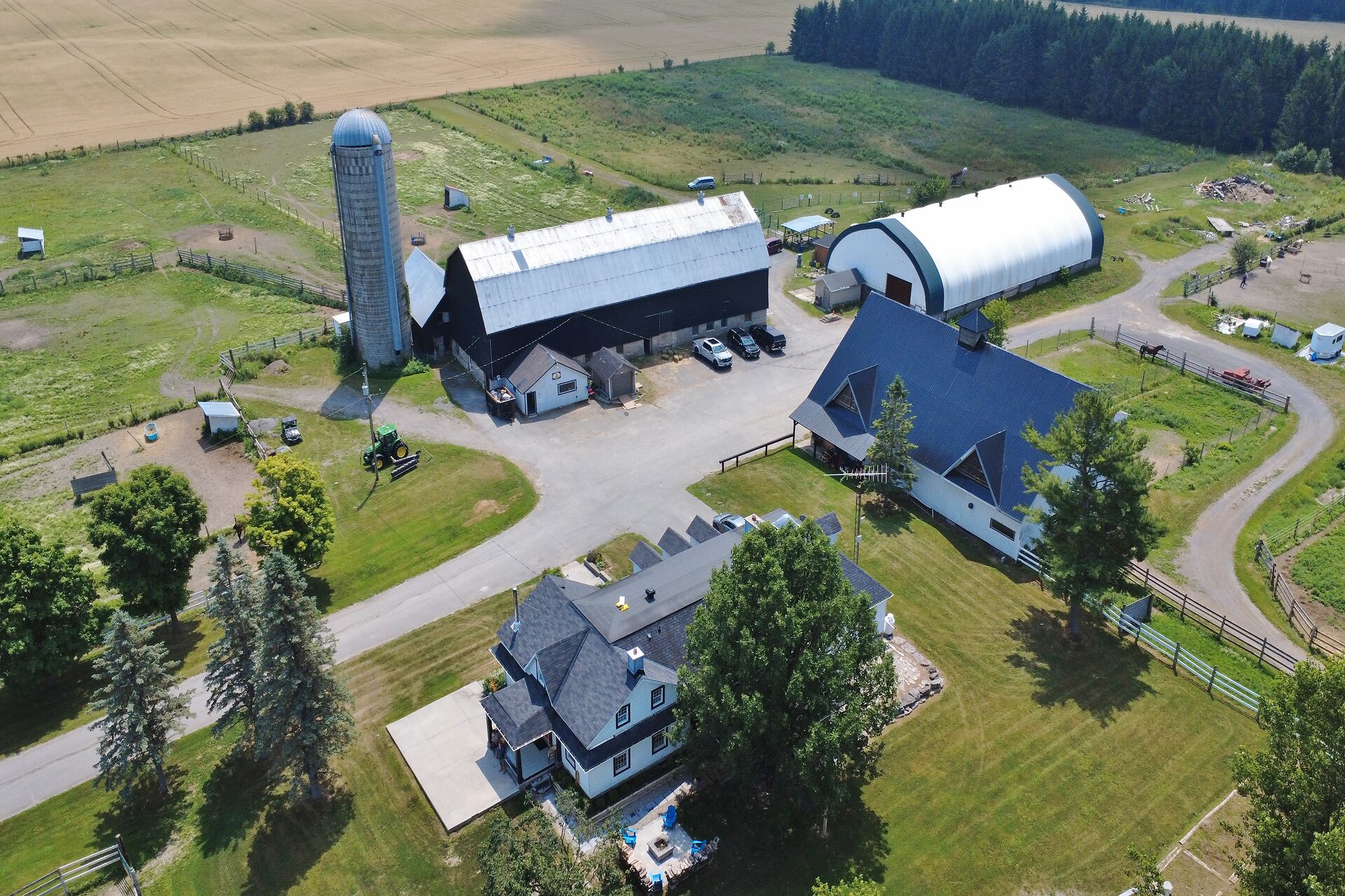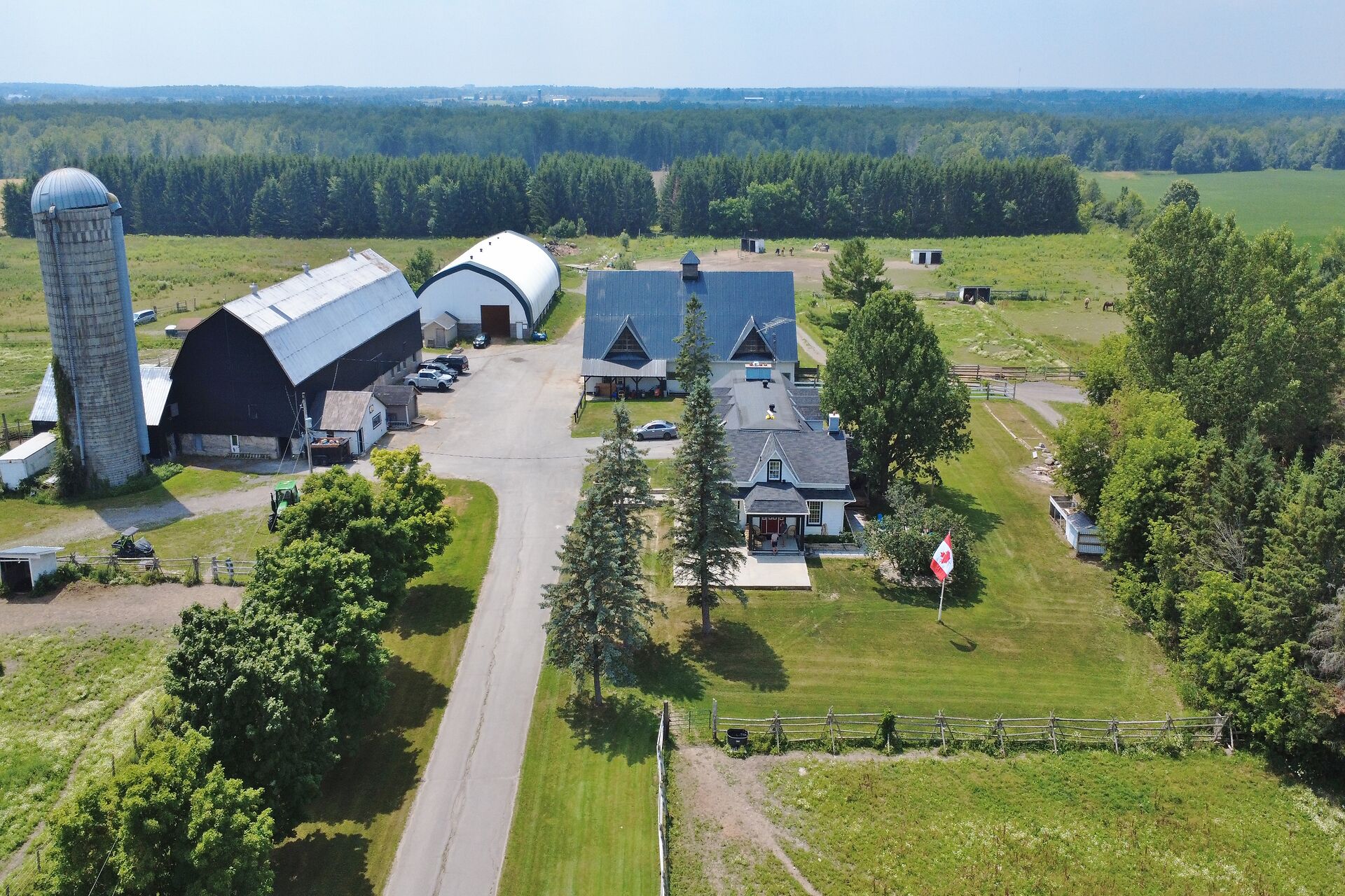 Welcome to FOX HOLLOW FARM! The property is a turn key Equine business with 23 box stalls between the 2 barns including a large foaling stall . Fox Hollow boasts indoor and outdoor riding arenas, 24 paddocks surround the property with 12 shelters/ windbreaks. The century old barn has seen numerous professional upgrades including the stalls, oversized lockers, the back open area for large and small bales, which has been lifted, the foundation redone and there is an automatic water dispenser for the horses. The home boasts over 4600ft2 of finished living space with 5 bedrooms on the 2nd level. Large rooms throughout including a boarders lounge for the riders and staff to enjoy.