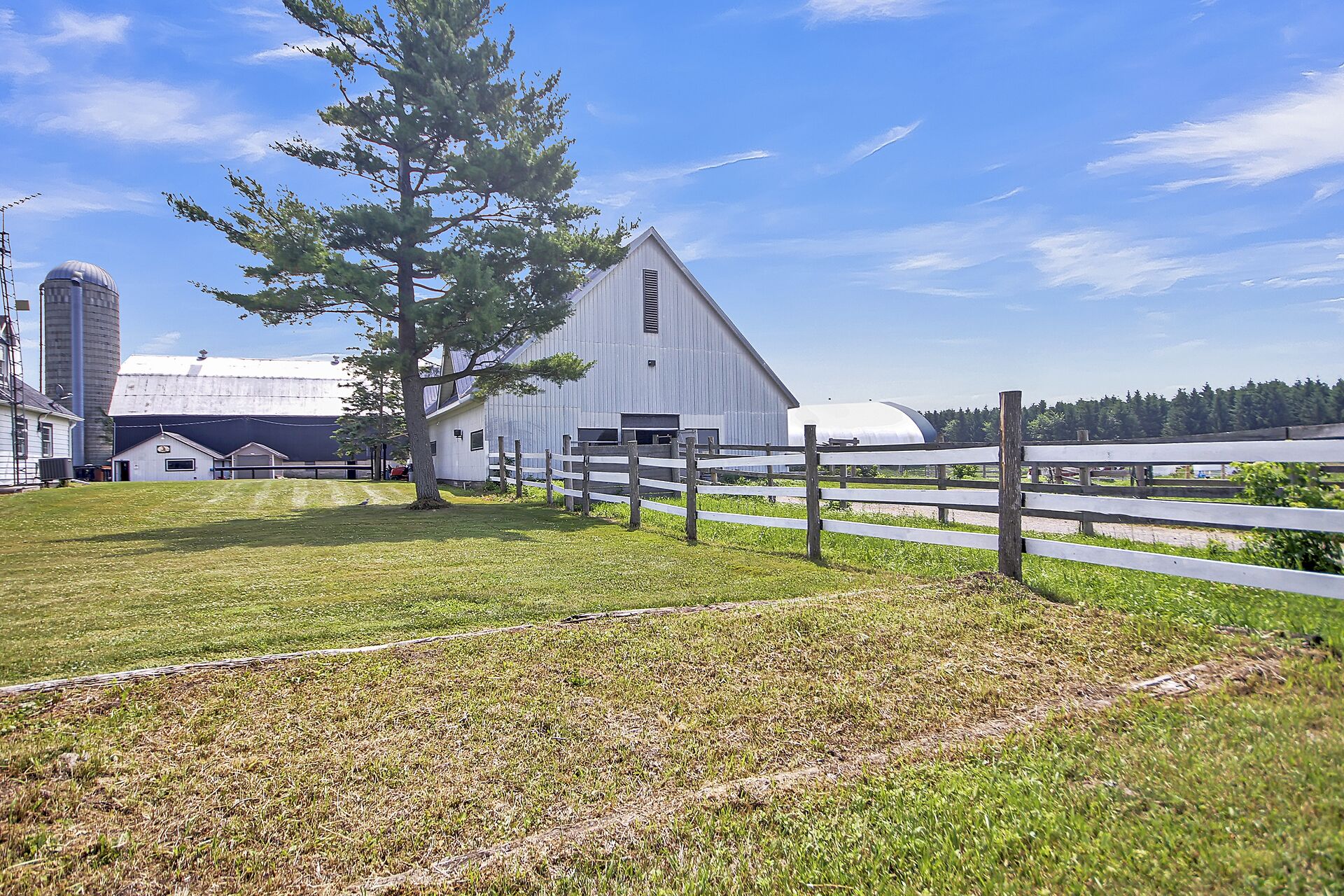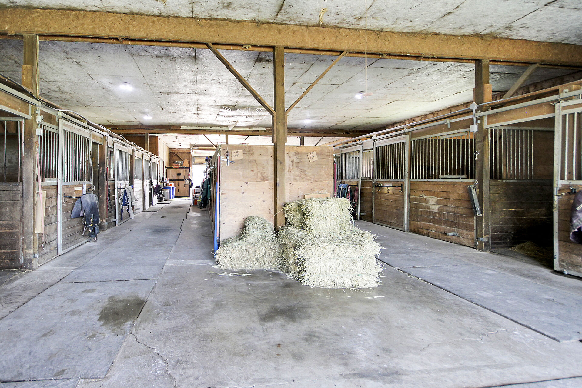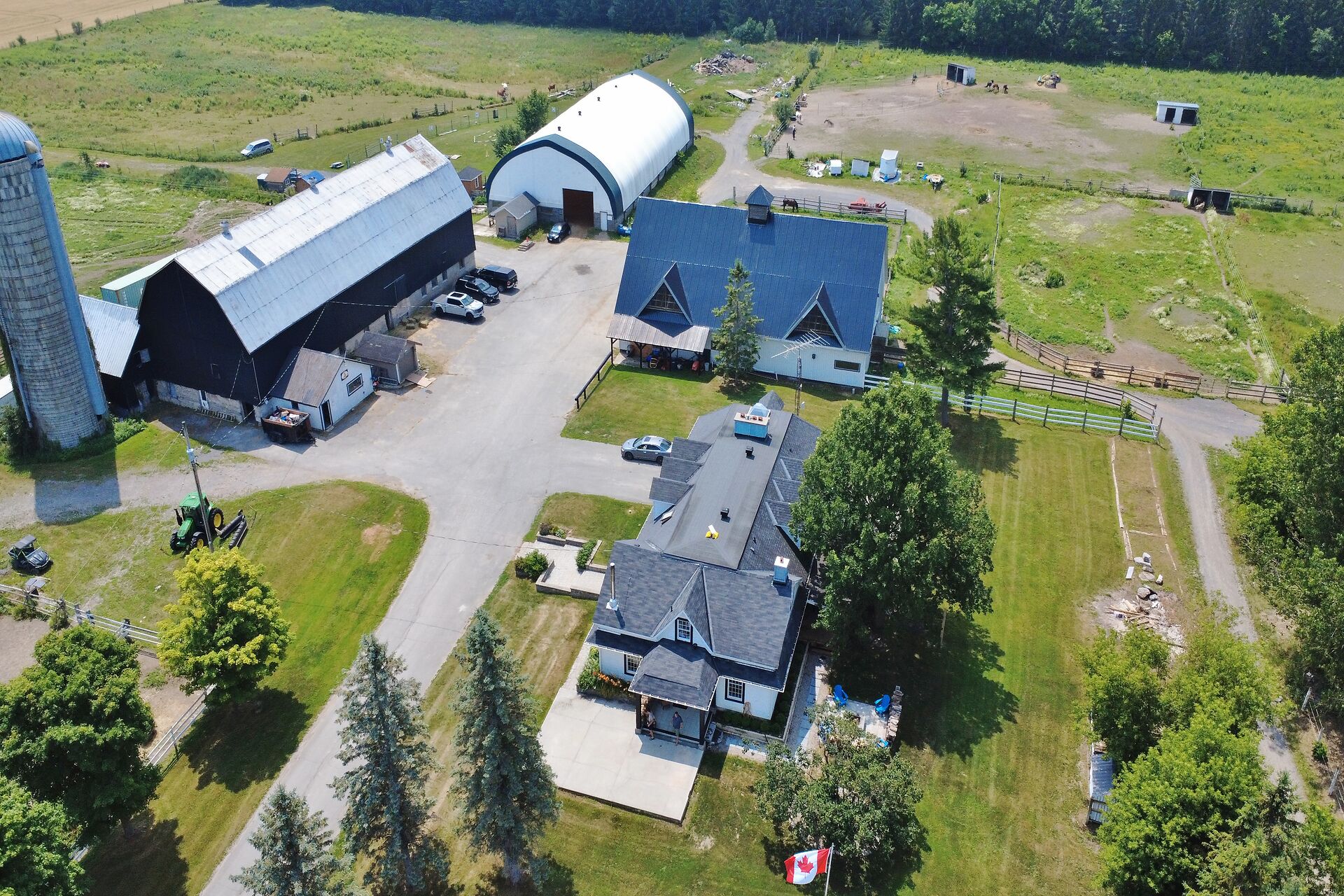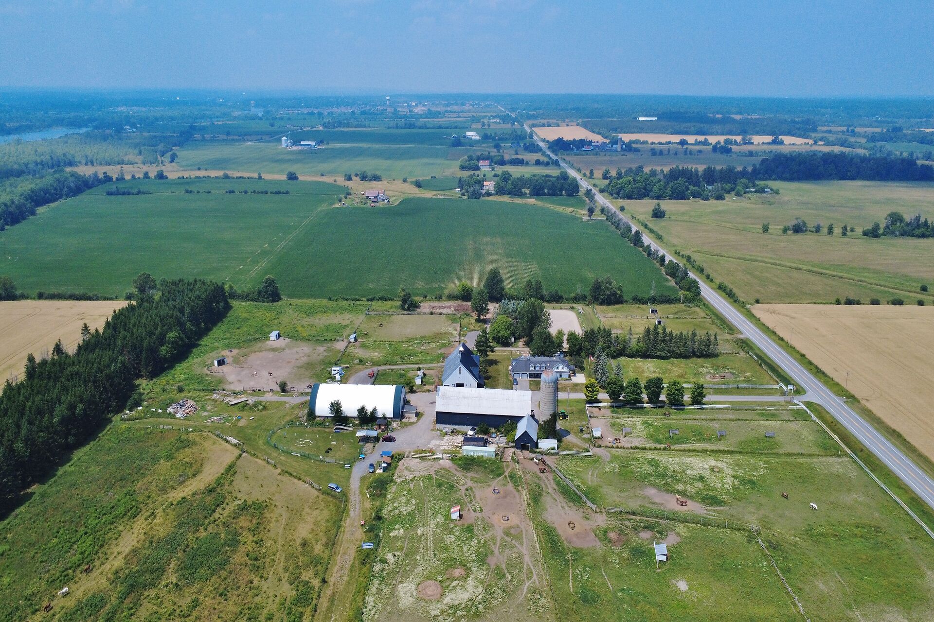 Welcome to FOX HOLLOW FARM! The property is a turn key Equine business with 23 box stalls between the 2 barns including a large foaling stall . Fox Hollow boasts indoor and outdoor riding arenas, 24 paddocks surround the property with 12 shelters/ windbreaks. The century old barn has seen numerous professional upgrades including the stalls, oversized lockers, the back open area for large and small bales, which has been lifted, the foundation redone and there is an automatic water dispenser for the horses. The home boasts over 4600ft2 of finished living space with 5 bedrooms on the 2nd level. Large rooms throughout including a boarders lounge for the riders and staff to enjoy.