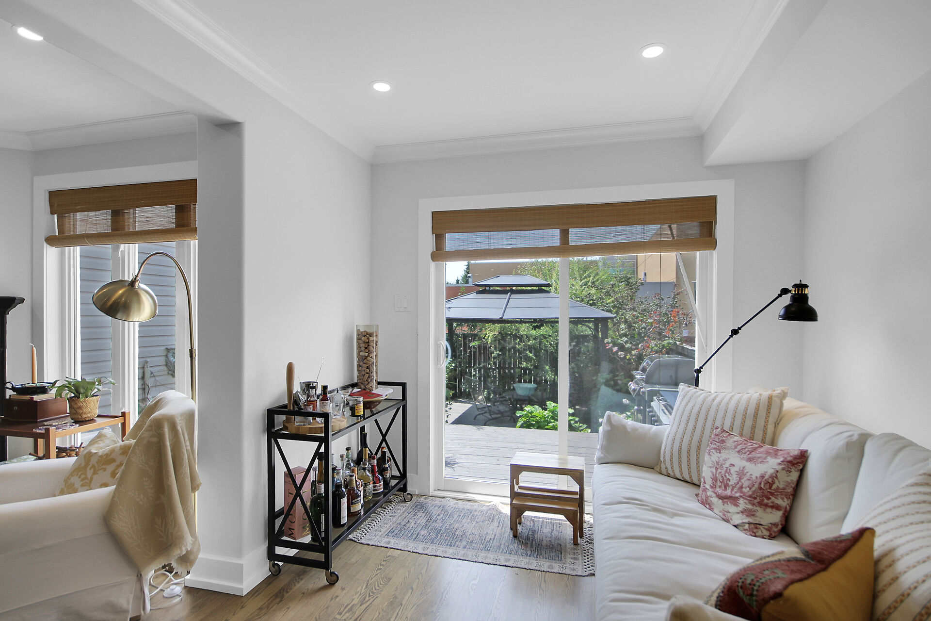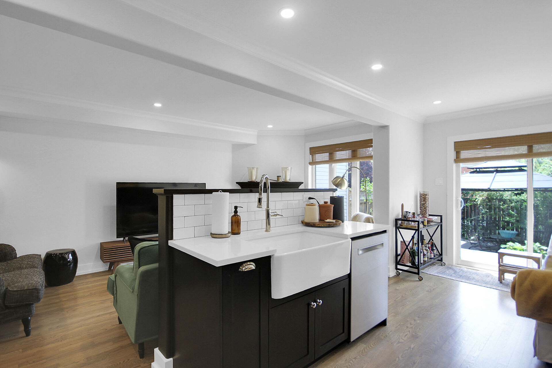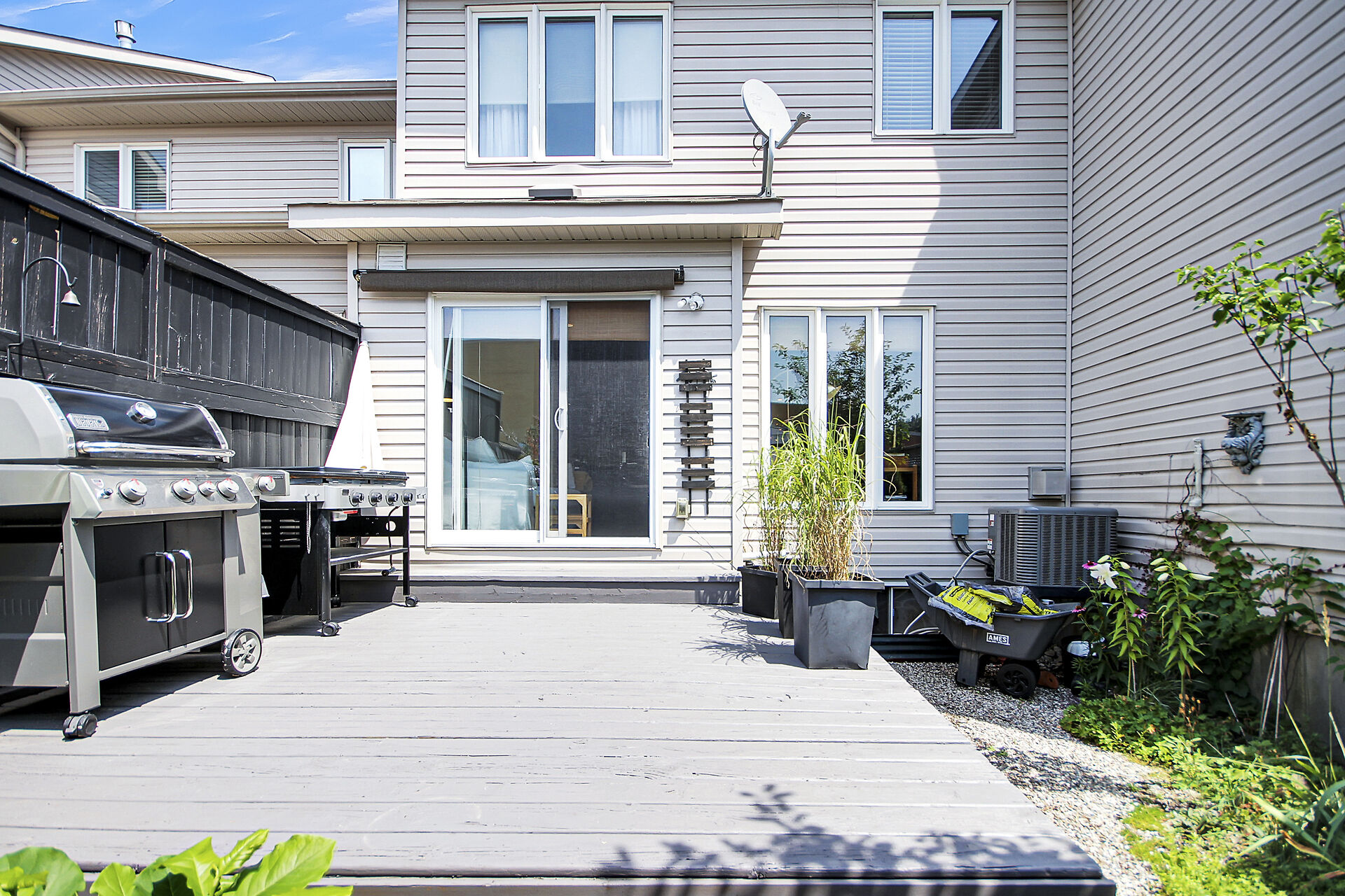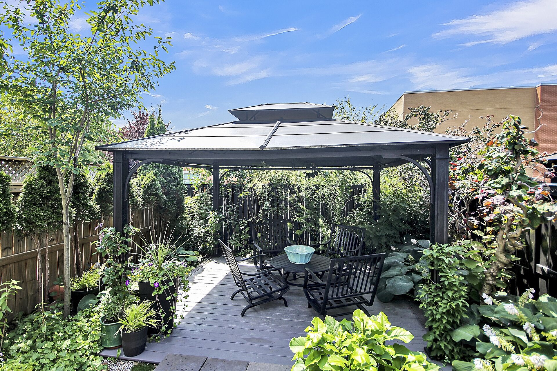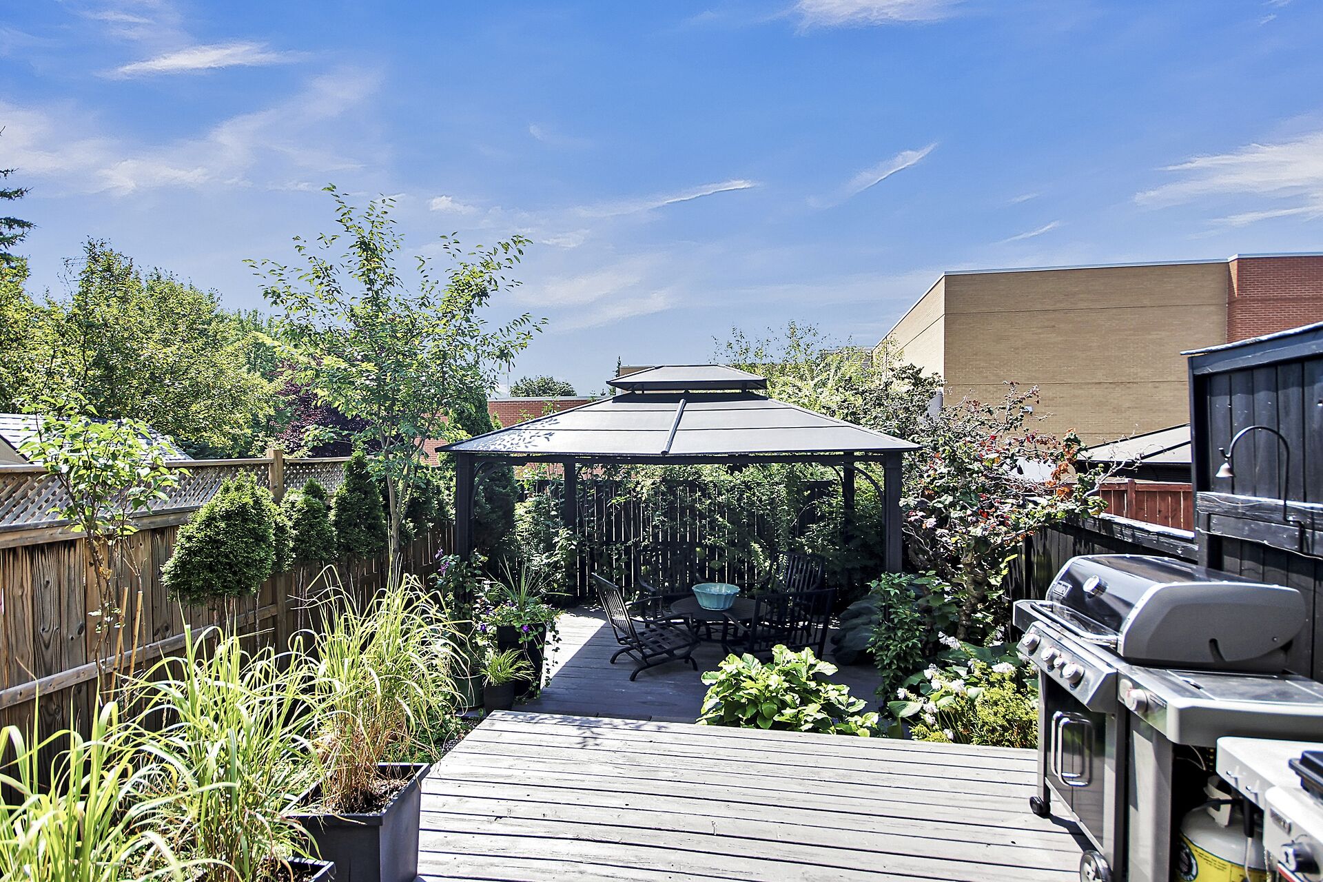 Beautifully updated family home located on a private crescent. Backyard is a tranquil oasis with large deck, oversized gazebo & amazing plants. Ground floor, an expansive open plan, has hardwood & pot lights throughout gas fireplace & tall windows. Show-stopping modern kitchen has dramatic custom cabinets, white quartz counters, a coveted farmhouse sink & high-end appliances. Bright adjoining breakfast/sitting area leads to the deck. Upstairs features three generous bedrooms. Principal bedroom boasts a walk-in closet & updated ensuite. The basement has been furnished with another complete modern bathroom. There is a large recreation room and two generous storage areas. This home has all that a family needs.
