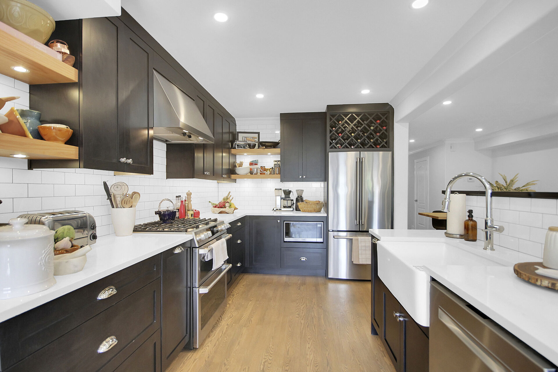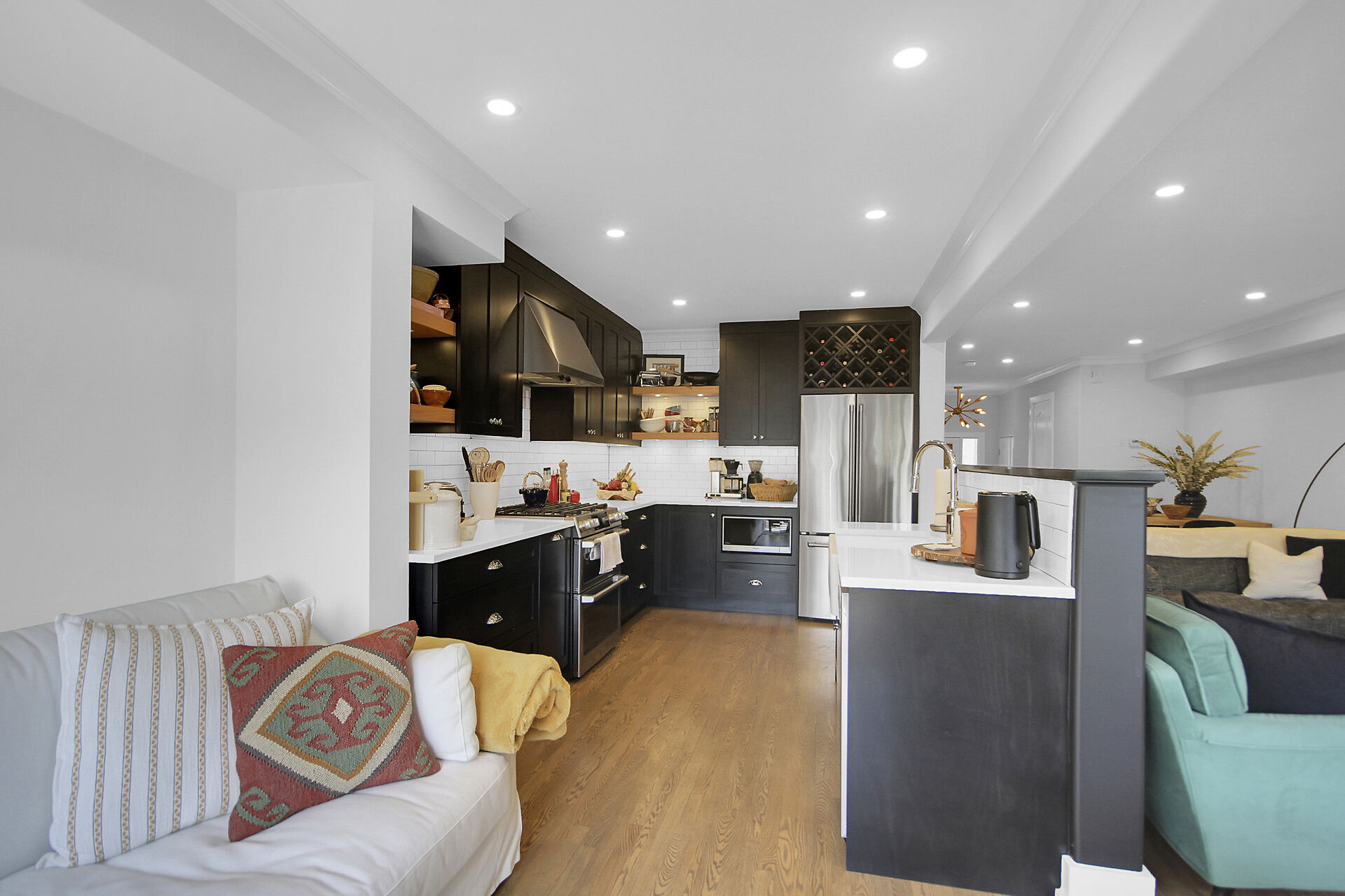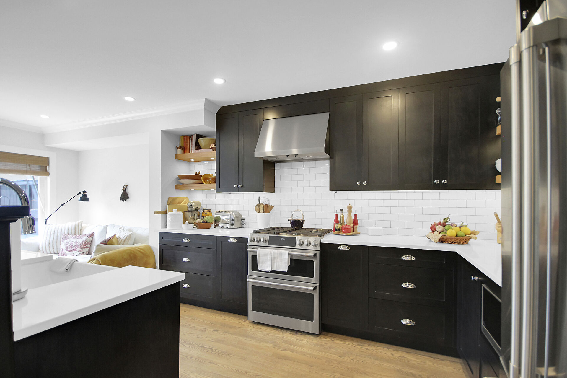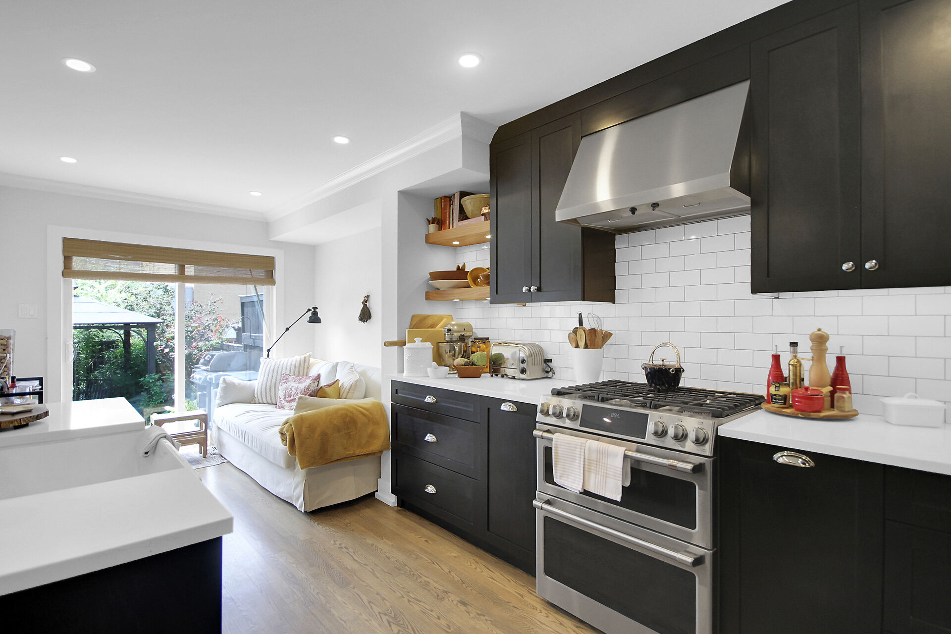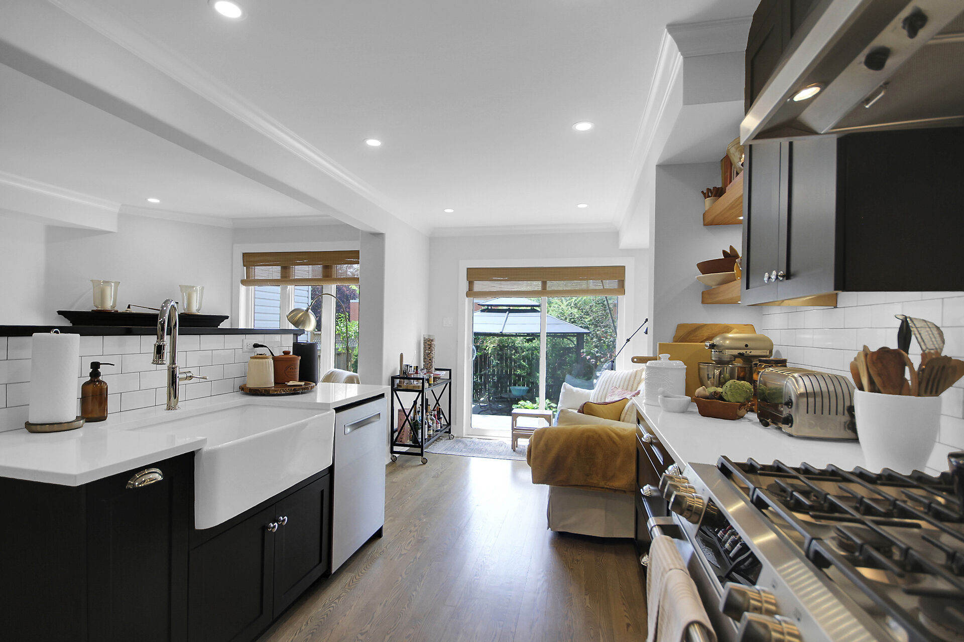 Beautifully updated family home located on a private crescent. Backyard is a tranquil oasis with large deck, oversized gazebo & amazing plants. Ground floor, an expansive open plan, has hardwood & pot lights throughout gas fireplace & tall windows. Show-stopping modern kitchen has dramatic custom cabinets, white quartz counters, a coveted farmhouse sink & high-end appliances. Bright adjoining breakfast/sitting area leads to the deck. Upstairs features three generous bedrooms. Principal bedroom boasts a walk-in closet & updated ensuite. The basement has been furnished with another complete modern bathroom. There is a large recreation room and two generous storage areas. This home has all that a family needs.