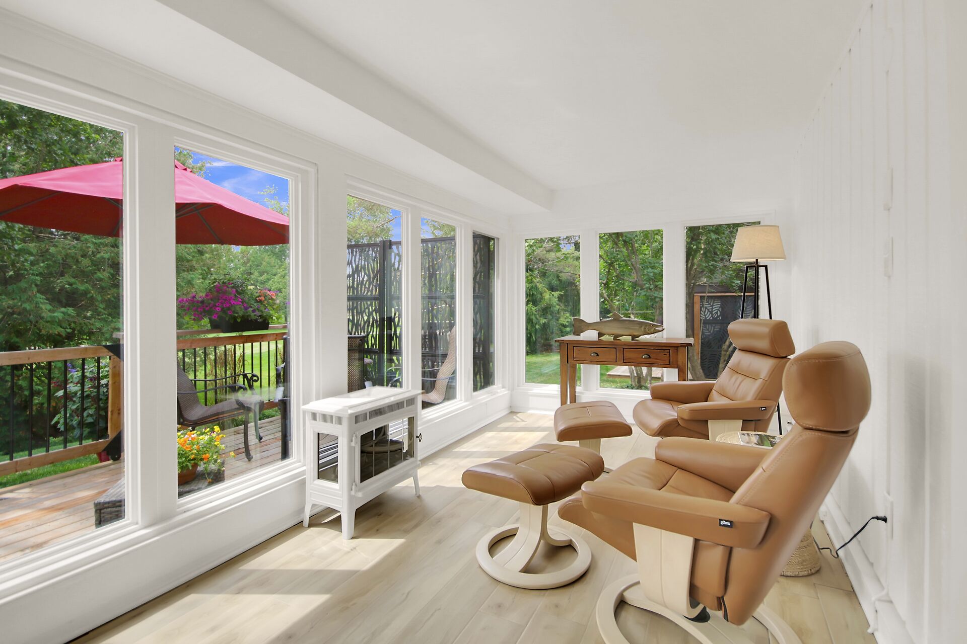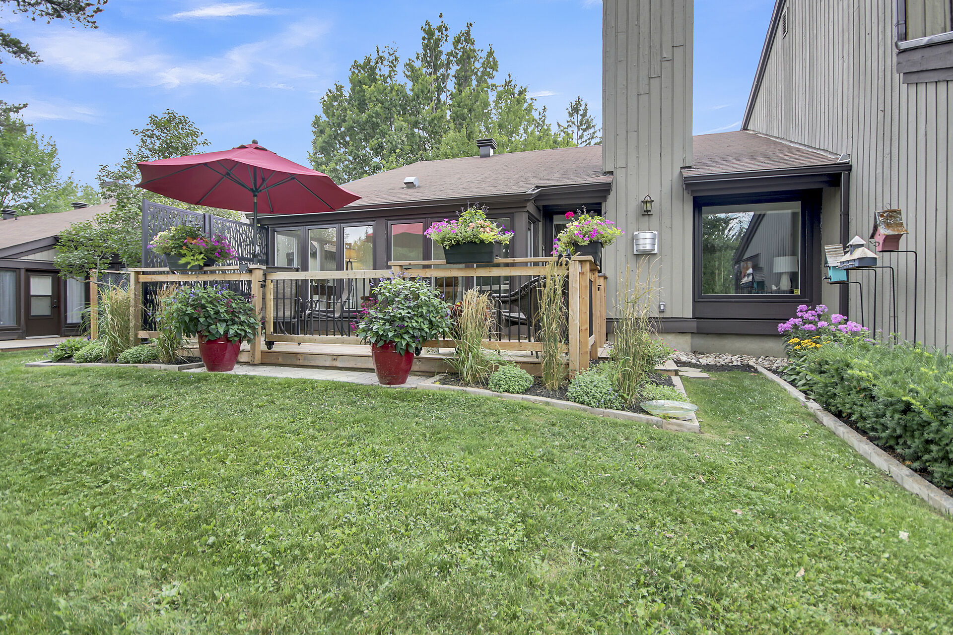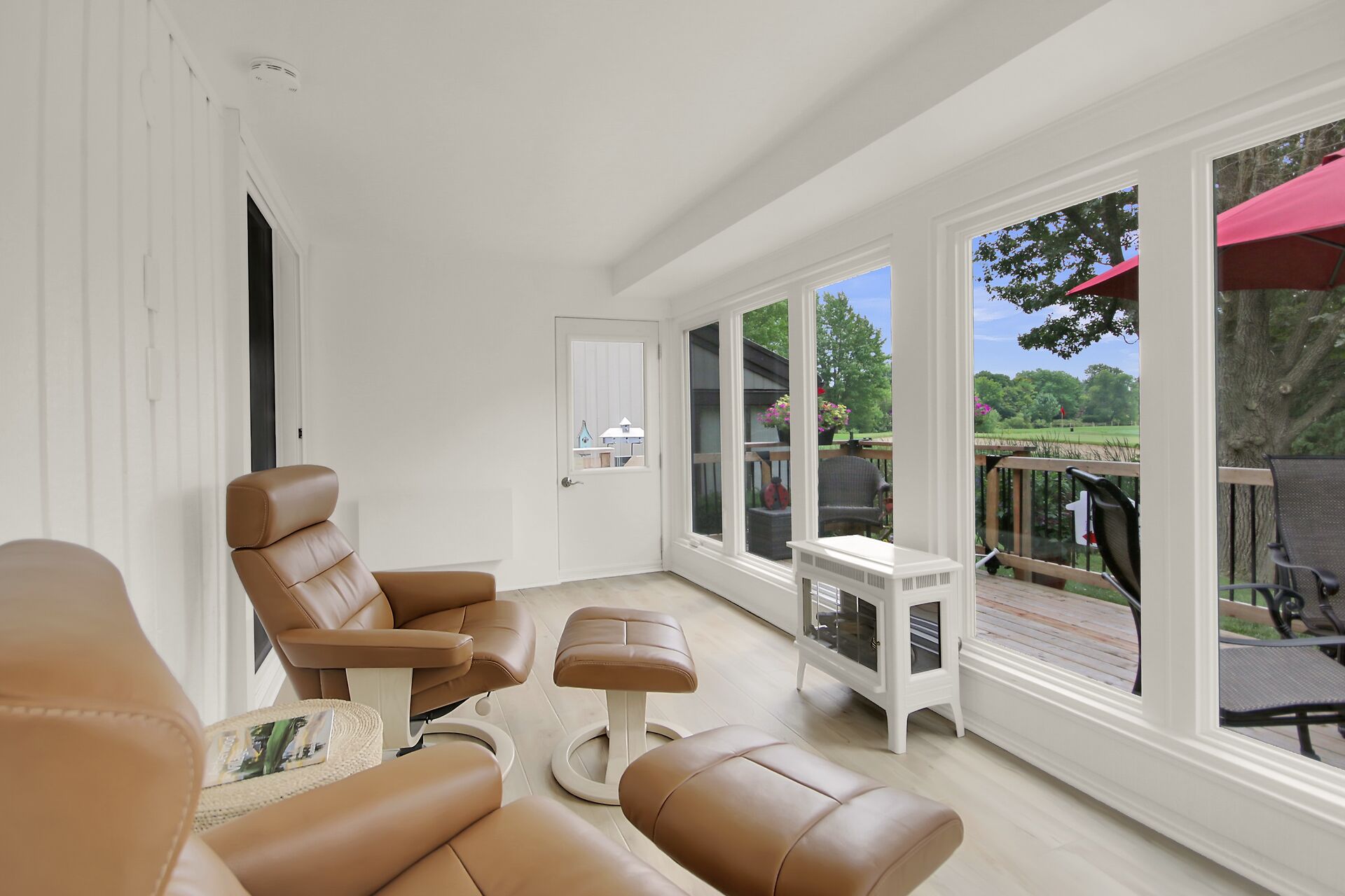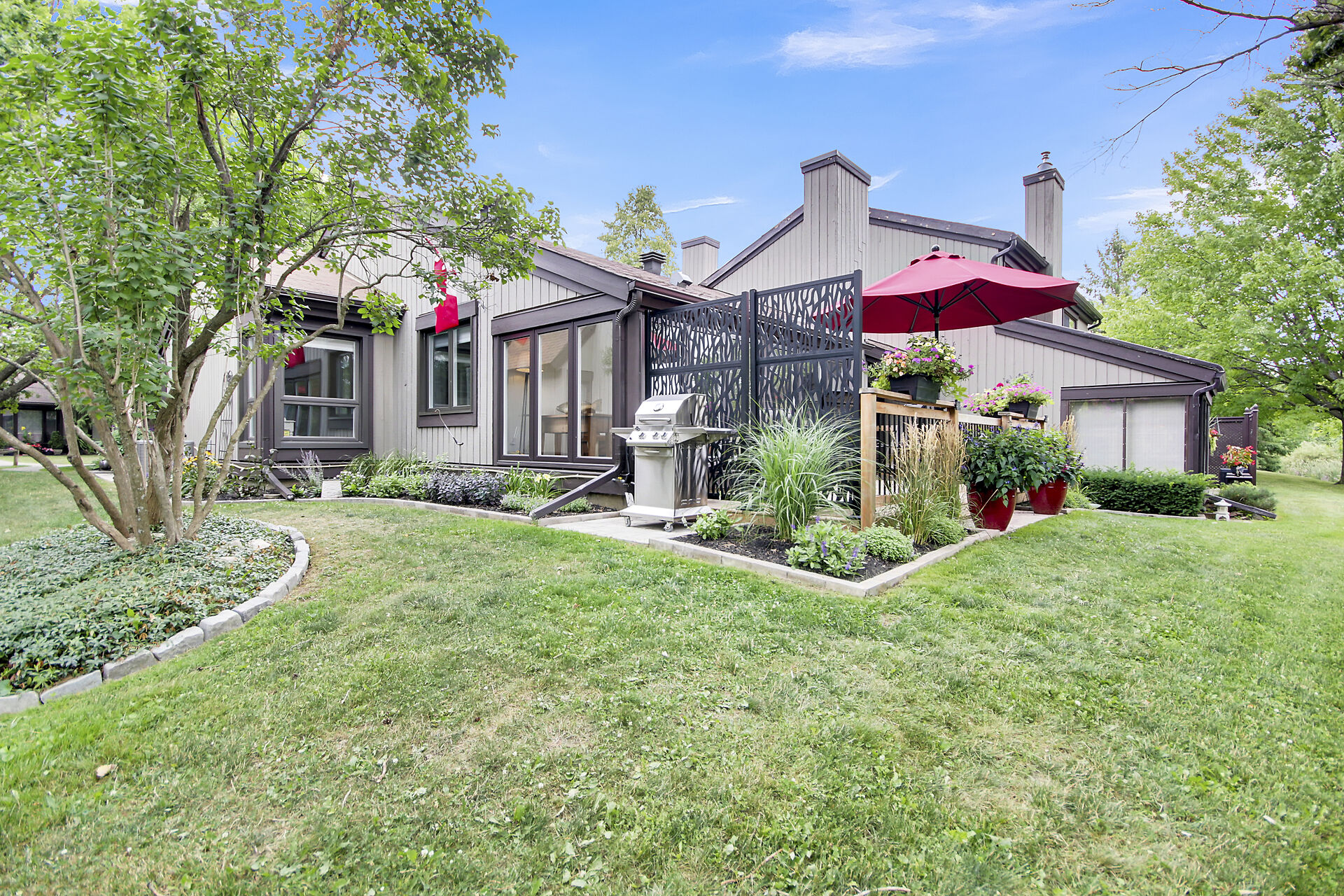 A Day & A Life @ the Links!! Stunning Renovated 2 Bedroom + Den Bungalow backing on the 1st green at Amberwood Golf Course - A truly Rare Find! Secluded quiet park-like condo development in Amberwood Village with units nestled in the trees & this one has a Stellar VIEWs from an All-Season Sunporch & Fenced-In SunDeck w/ Natural Gas BBQ HookUp - This beauty is loaded with upgrades ($150K) and is Impeccable - Open Concept Living with Refinished Birch Hardwood Floors, Pot Lights , Stunning Gas Fireplace is a focal point of the Great Room - Brand New Quality Custom Kitchen w/ Quartz counters, Stunning Backsplash & Hi-End Appliances - Primary Bedroom is Spacious and Dreamy with its Corner Window & Ensuite Bath - A Dream