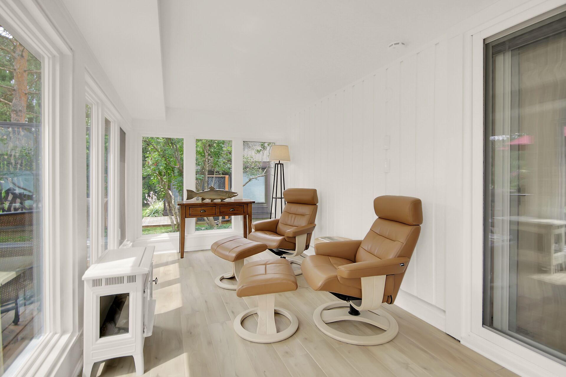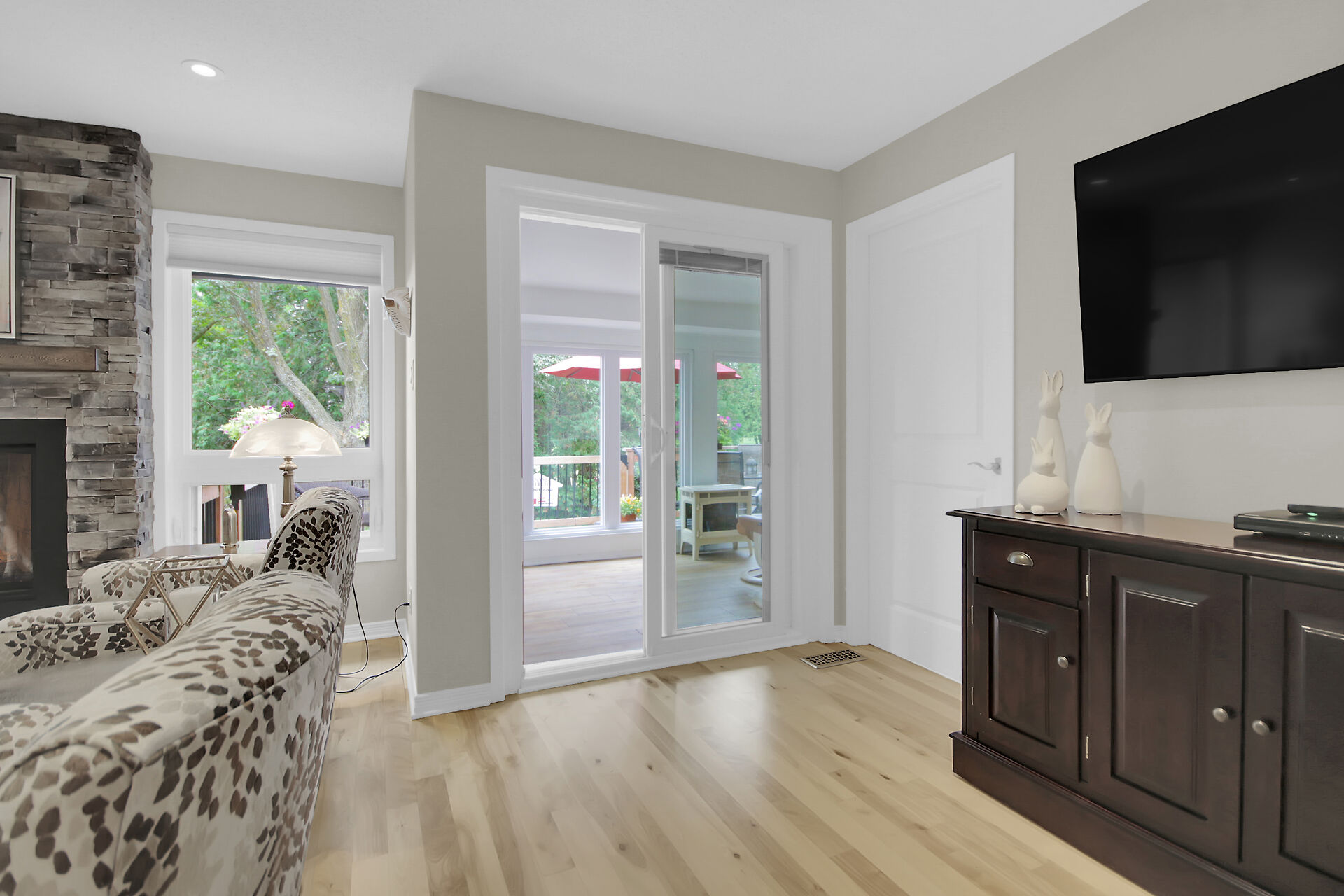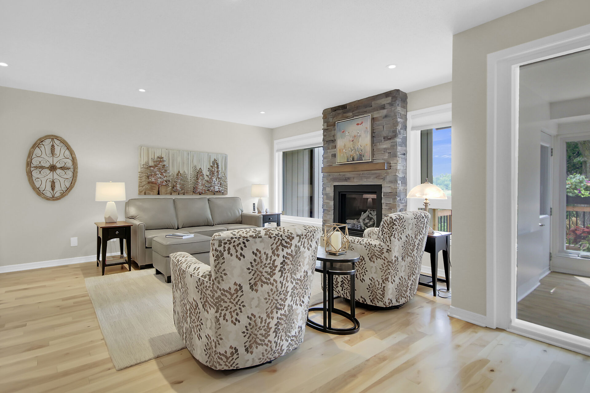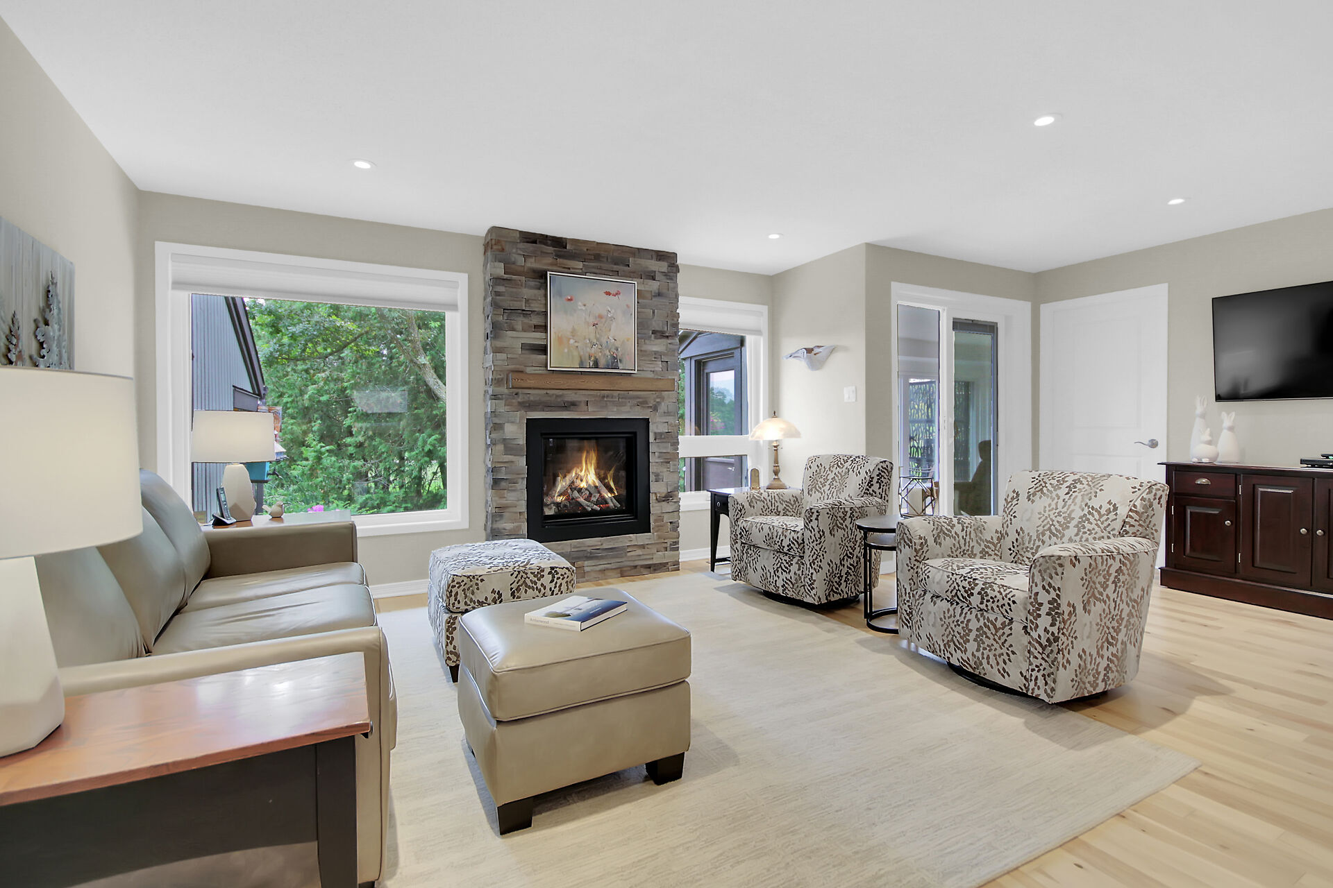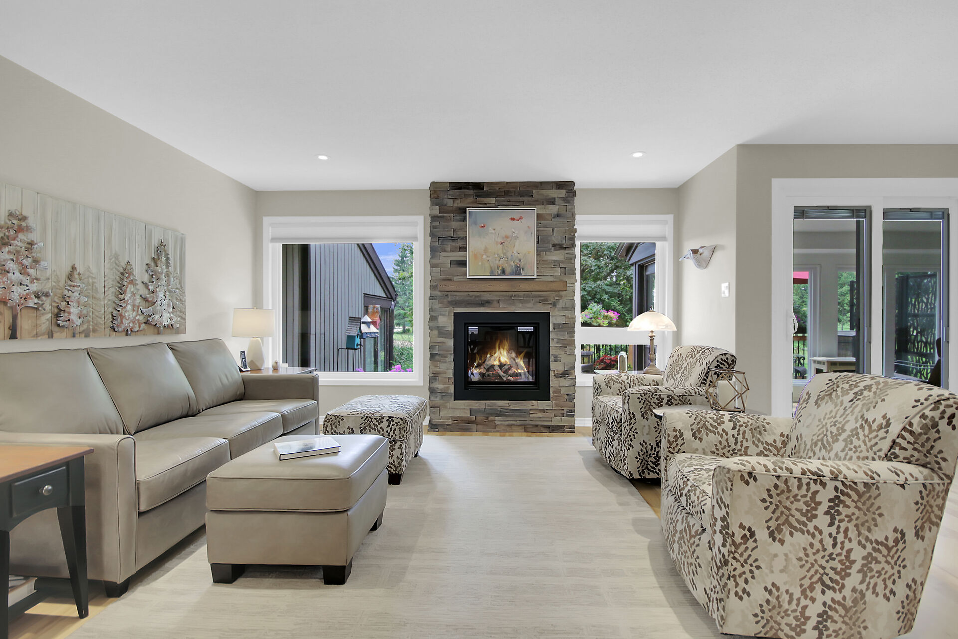 A Day & A Life @ the Links!! Stunning Renovated 2 Bedroom + Den Bungalow backing on the 1st green at Amberwood Golf Course - A truly Rare Find! Secluded quiet park-like condo development in Amberwood Village with units nestled in the trees & this one has a Stellar VIEWs from an All-Season Sunporch & Fenced-In SunDeck w/ Natural Gas BBQ HookUp - This beauty is loaded with upgrades ($150K) and is Impeccable - Open Concept Living with Refinished Birch Hardwood Floors, Pot Lights , Stunning Gas Fireplace is a focal point of the Great Room - Brand New Quality Custom Kitchen w/ Quartz counters, Stunning Backsplash & Hi-End Appliances - Primary Bedroom is Spacious and Dreamy with its Corner Window & Ensuite Bath - A Dream