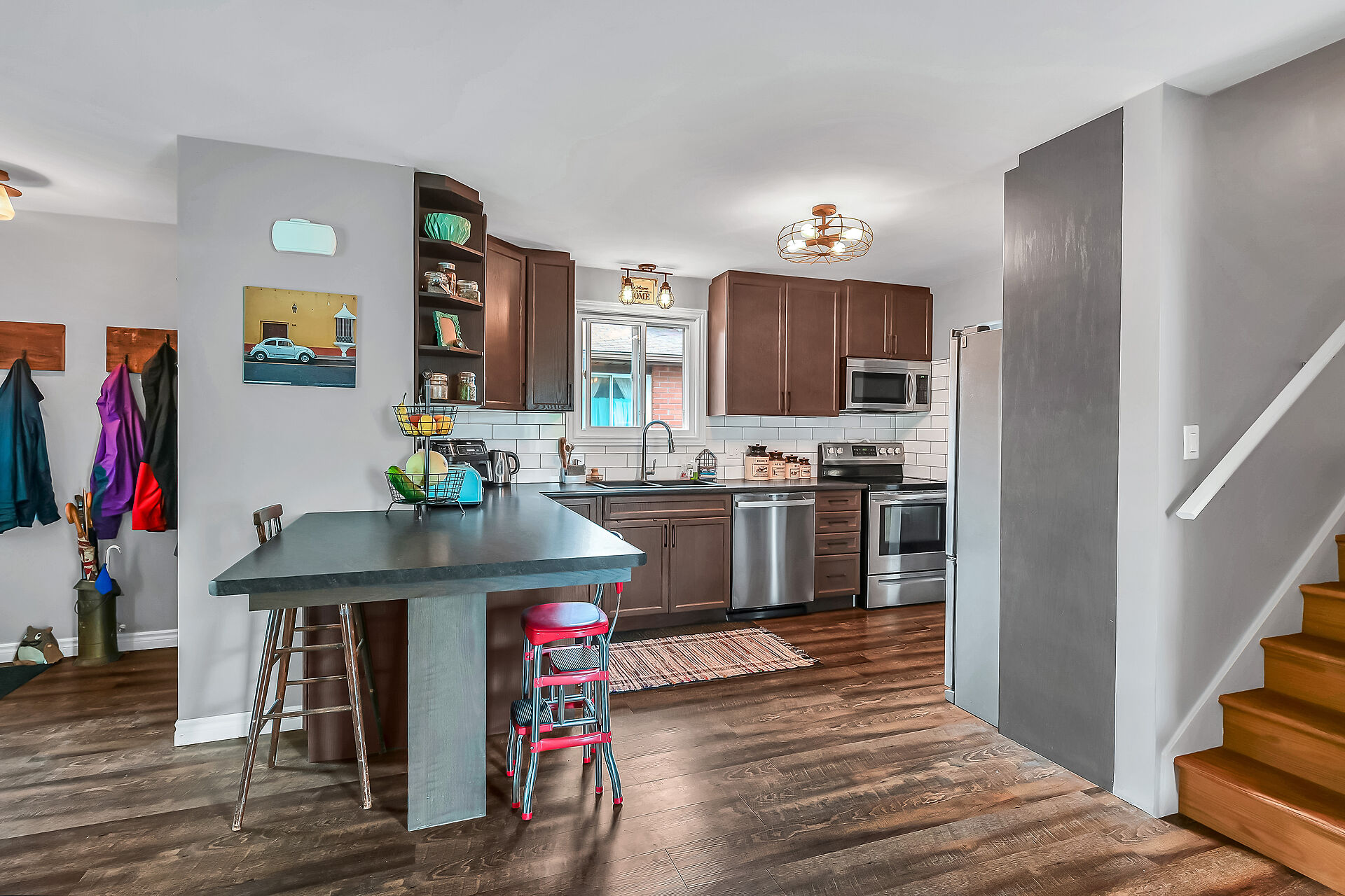Welcome to this beautifully renovated 4-level backsplit in the quiet, family-friendly community of Townsend—just 40 minutes to Hamilton, Brantford, and Hwy 403. Step through newer double doors into a spacious foyer with barn board accents. The open-concept main floor features laminate flooring, oversized windows, updated lighting, & a stunning 2020-renovated kitchen with peninsula, soft-close cabinets, stainless appliances & coffee bar. Upstairs: 3 bedrooms & a renovated 4-piece bath. A side entrance offers in-law suite potential. The lower level has a bright family room with fireplace, 2-piece bath & laundry. The basement offers storage, utility space & a bonus room. Metal roof and fenced yard complete the package.