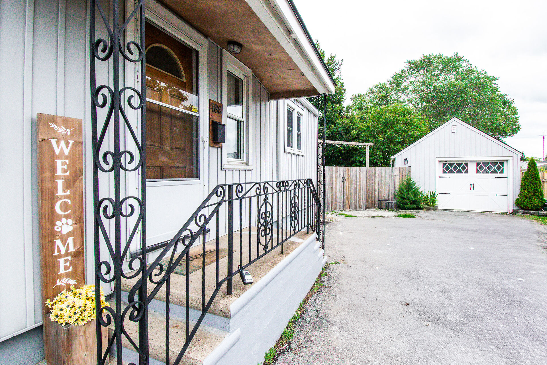 "WELL CARED FOR DETACHED 1.5 STOREY HOME WITH 3+1 BEDROOMS, 1-4PC BATH, APPROX 1900 SQ FT OF LIVING AREA, WITH IN-LAW POTENTIAL, FINISHED BASEMENT, DETACHED 1.5 CAR GARAGE WITH LARGE DOUBLE DRIVE GREAT FOR APPROX 8 VEHICLES, BEAUTIFUL PRIVATE LANDSCAPED FENCED BACK YARD WITH DECK GREAT FOR CHILDREN & PETS IS PRICED TO SELL" Welcome to 188 West Side Road in Port Colborne, as you approach you will see a large double wide drive and detached 1.5 car garage. Enter in thru the side door and you are greeted with a generous size & bright living room area with wood fireplace (not used) with door leading to large front porch area. Off the living room you have 2 spacious sized bedrooms with separate closets and 4 pc bath separ