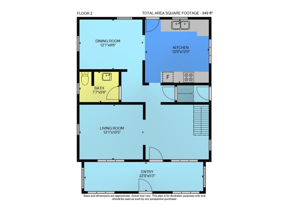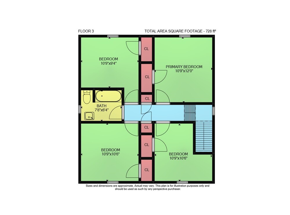 Floor 2: 849 sq ft, Floor 3: 728 sq ft,