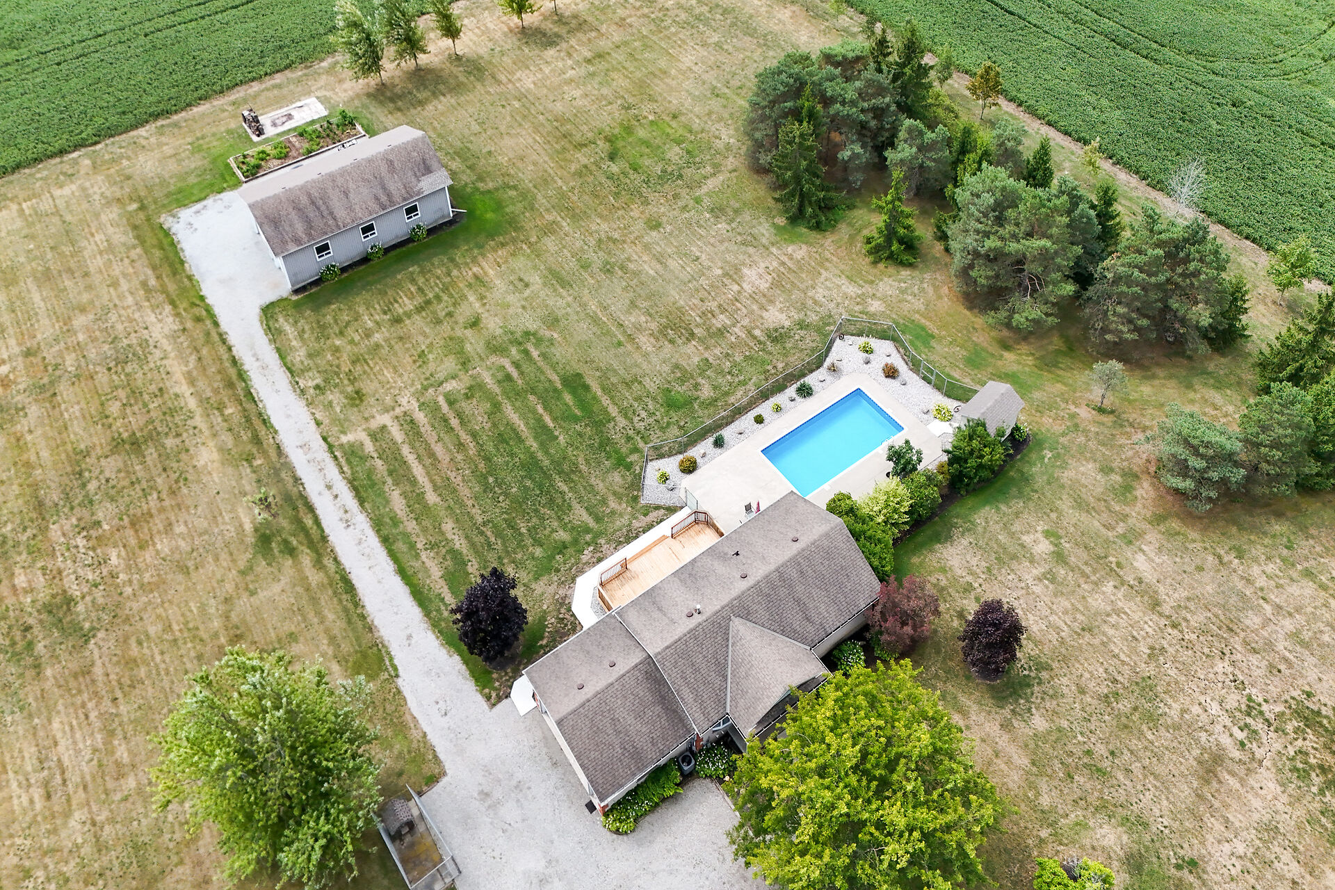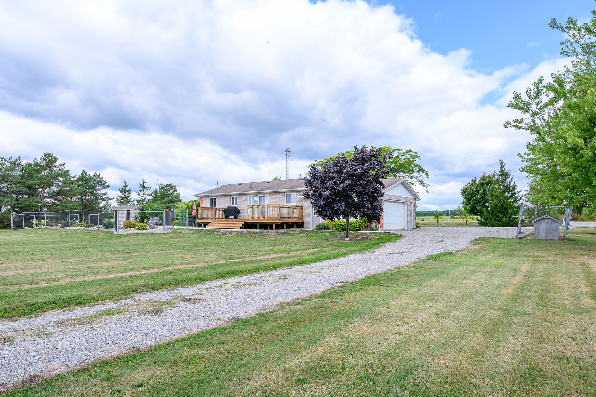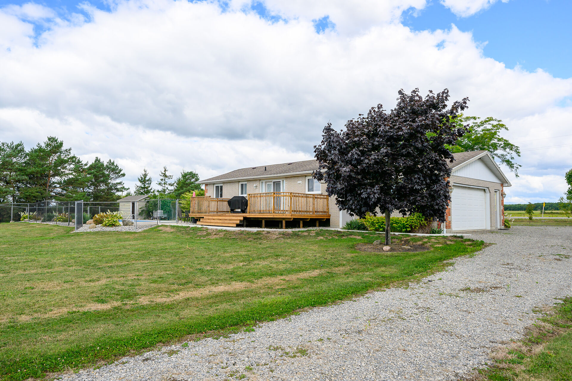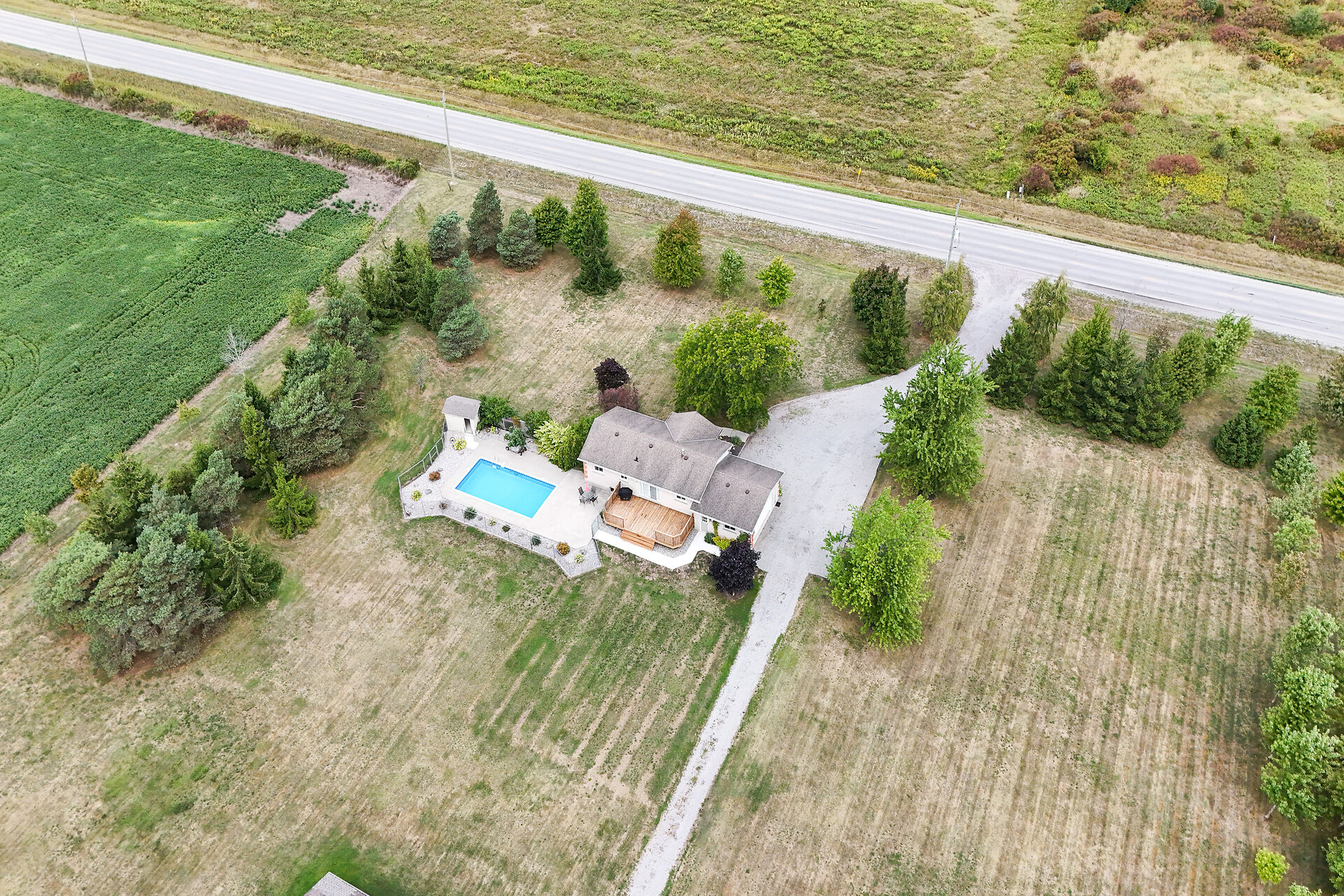 Stunning raised brick bungalow on 3.93 acres! Offering 1,078 sq ft plus a fully finished lower level, this home features a bright living room with bay window, kitchen with quartz counters, oak cabinets & coffee bar, dining room with garden doors to a 14' x 32' deck, 3 bedrooms & updated 4-pc bath. Basement includes a huge rec room with gas fireplace, 4th bedroom, 3-pc bath, laundry & cold cellar. Updates: furnace/AC (2023), windows/doors (last 10 yrs), roof (2008), water pump (2025). Enjoy the 16' x 32' inground pool, patio & fire pit. Bonus 30' x 50' workshop (2008) with mezzanine & 2 overhead doors. Double insulated garage. Central vac & BBQ hookup. 10 min to Dunnville, 15 to Cayuga!