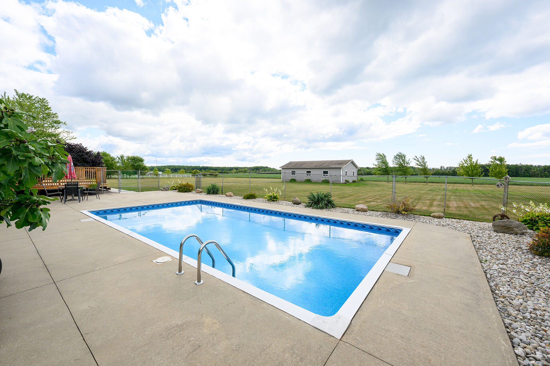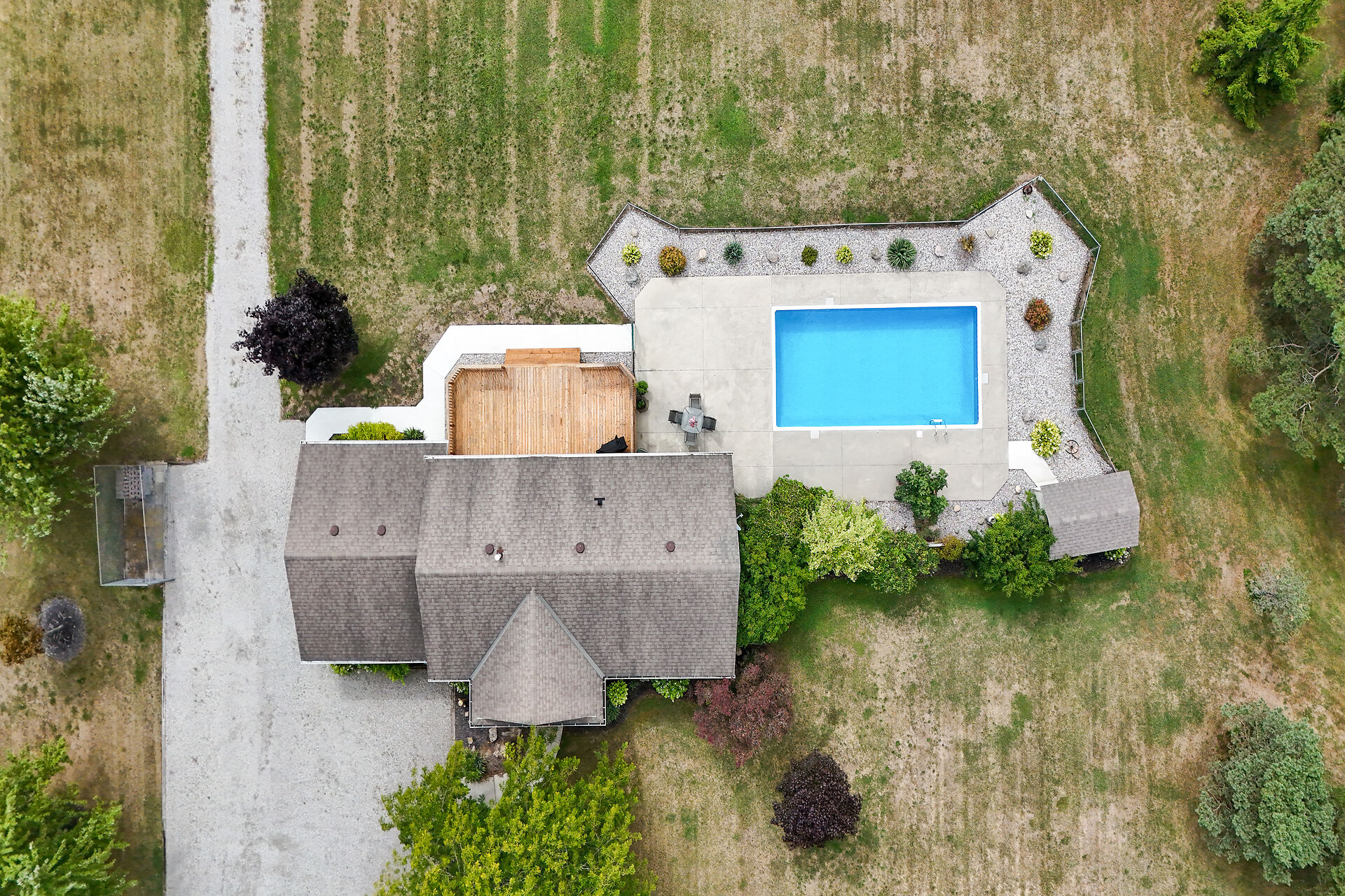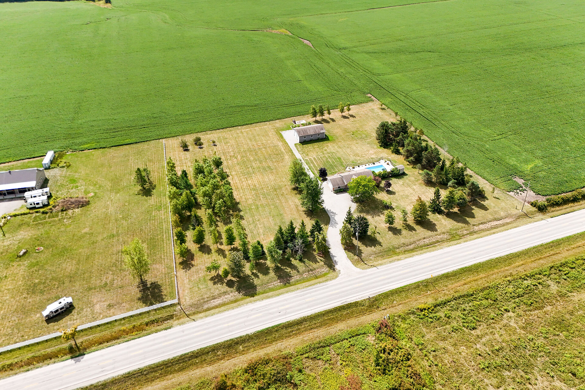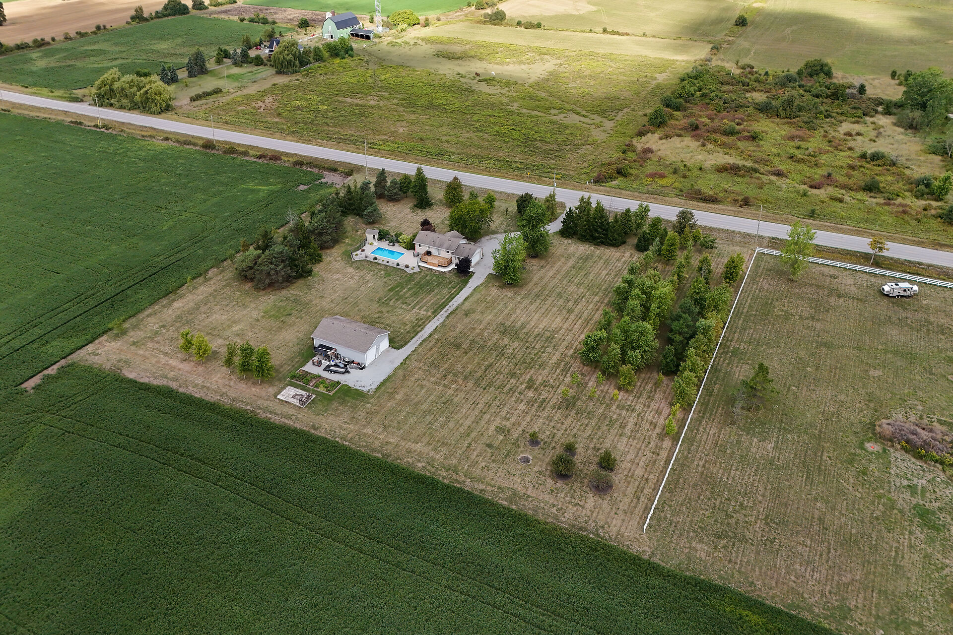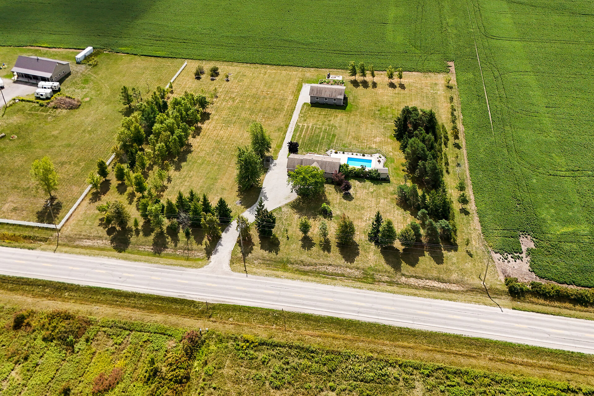 Stunning raised brick bungalow on 3.93 acres! Offering 1,078 sq ft plus a fully finished lower level, this home features a bright living room with bay window, kitchen with quartz counters, oak cabinets & coffee bar, dining room with garden doors to a 14' x 32' deck, 3 bedrooms & updated 4-pc bath. Basement includes a huge rec room with gas fireplace, 4th bedroom, 3-pc bath, laundry & cold cellar. Updates: furnace/AC (2023), windows/doors (last 10 yrs), roof (2008), water pump (2025). Enjoy the 16' x 32' inground pool, patio & fire pit. Bonus 30' x 50' workshop (2008) with mezzanine & 2 overhead doors. Double insulated garage. Central vac & BBQ hookup. 10 min to Dunnville, 15 to Cayuga!