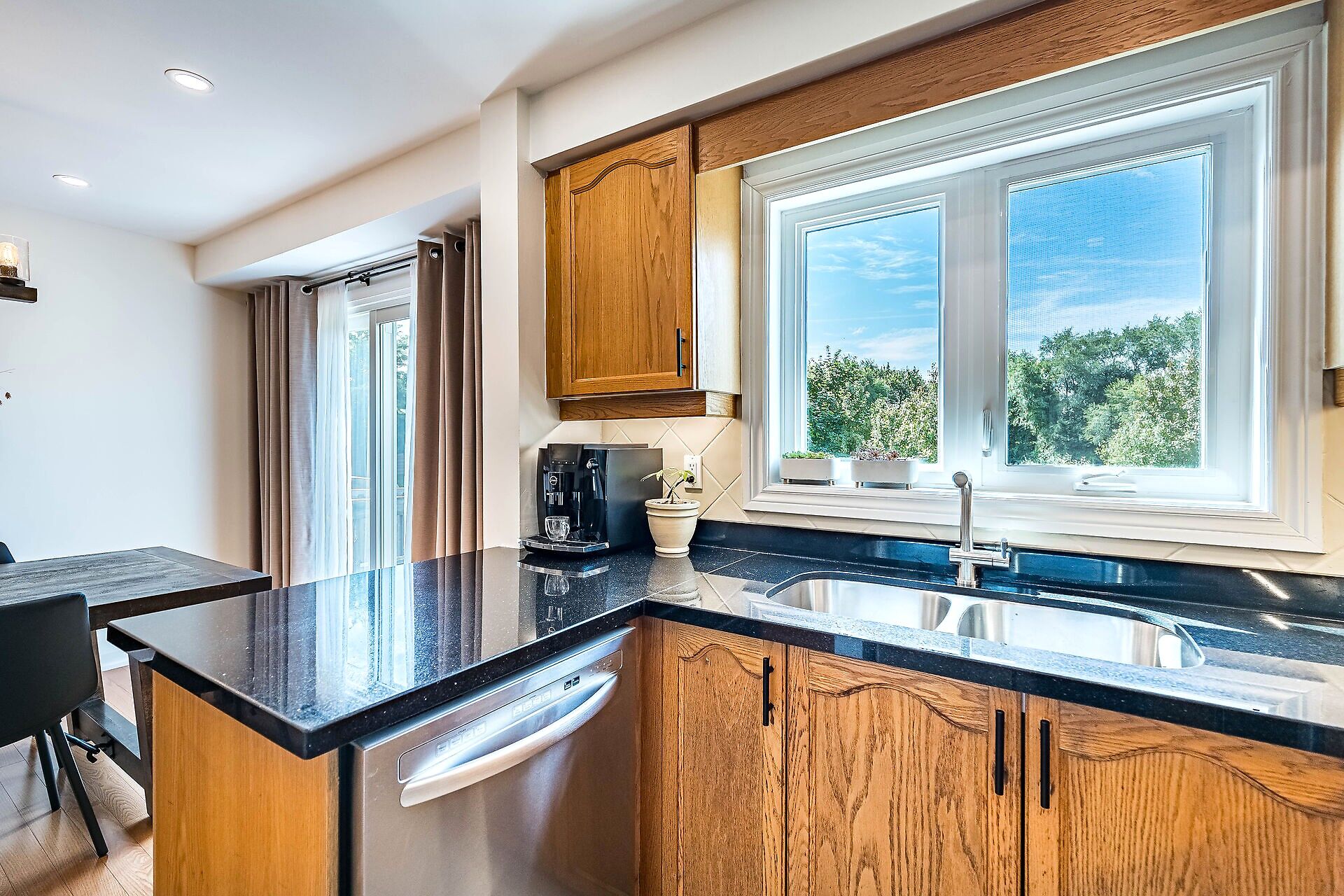 This tastefully-renovated, updated home offers turnkey living, stylish improvements & modern decor! The inviting, wide-open living/dining room enjoys a new sliding door to a sunny patio & lush-green backyard with NO houses behind! Perfect for entertaining! The updated kitchen enjoys the warmth of wood cabinets, black granite counters & stainless-steel appliances. The primary bedroom offers a walk-in closet & upgraded 3-pc ensuite! The sizable 2nd & 3rd bedrooms share a lovely 4-pc bath! And the lower level enjoys a comfy rec room with engineered flooring & fireplace. Plus, there's a laundry room & pantry. This sweet home also includes an upgraded oak staircase; custom cabinetry thruout, new windows & new front door!
