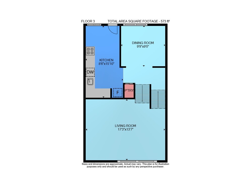 Floor 2: 94 sq ft, Floor 3: 573 sq ft,