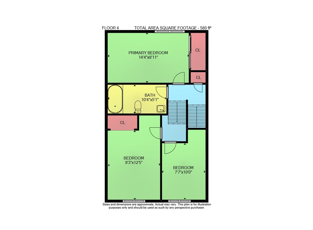 Floor 4: 580 sq ft, Floor 1: 265 sq ft