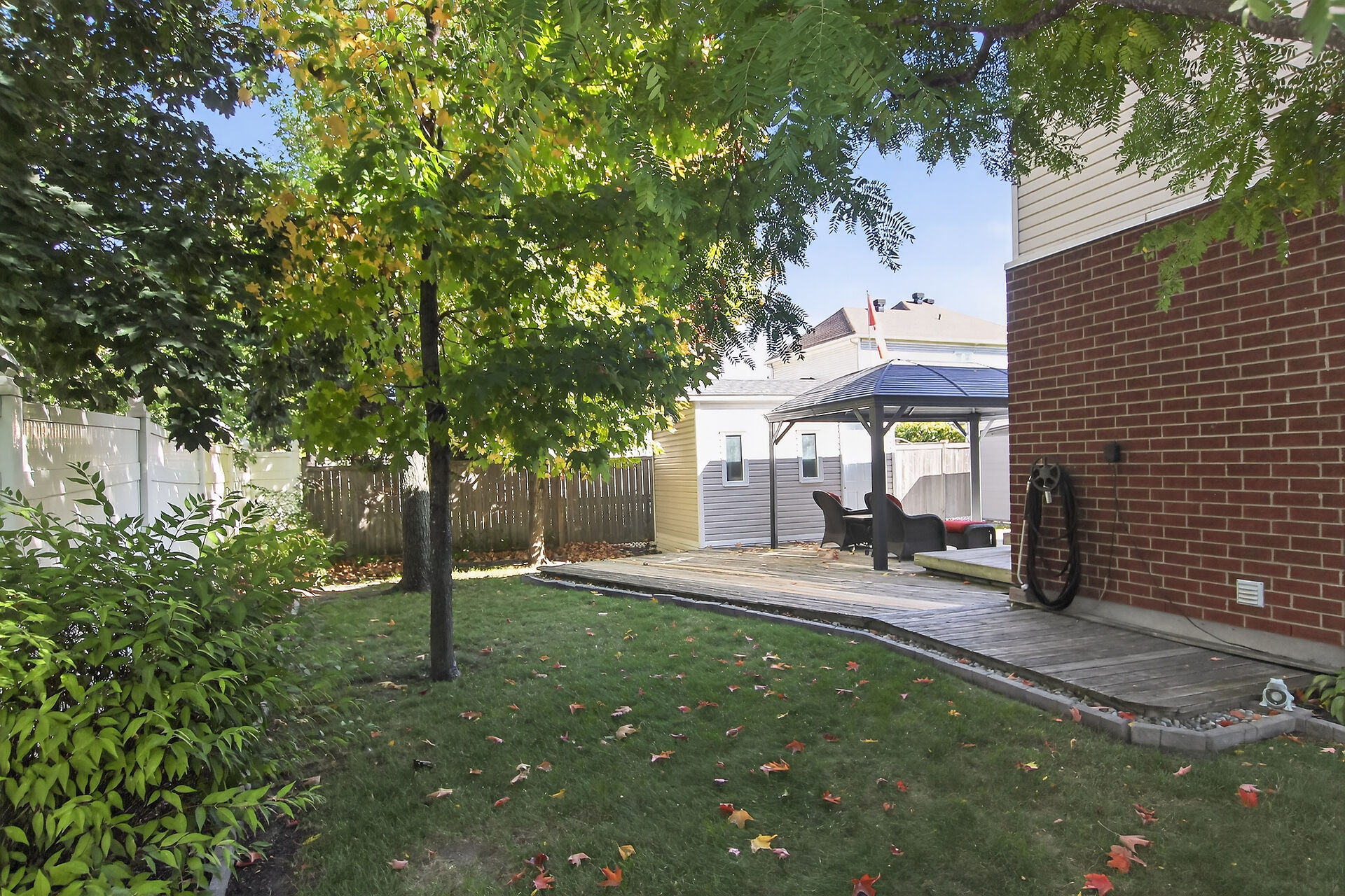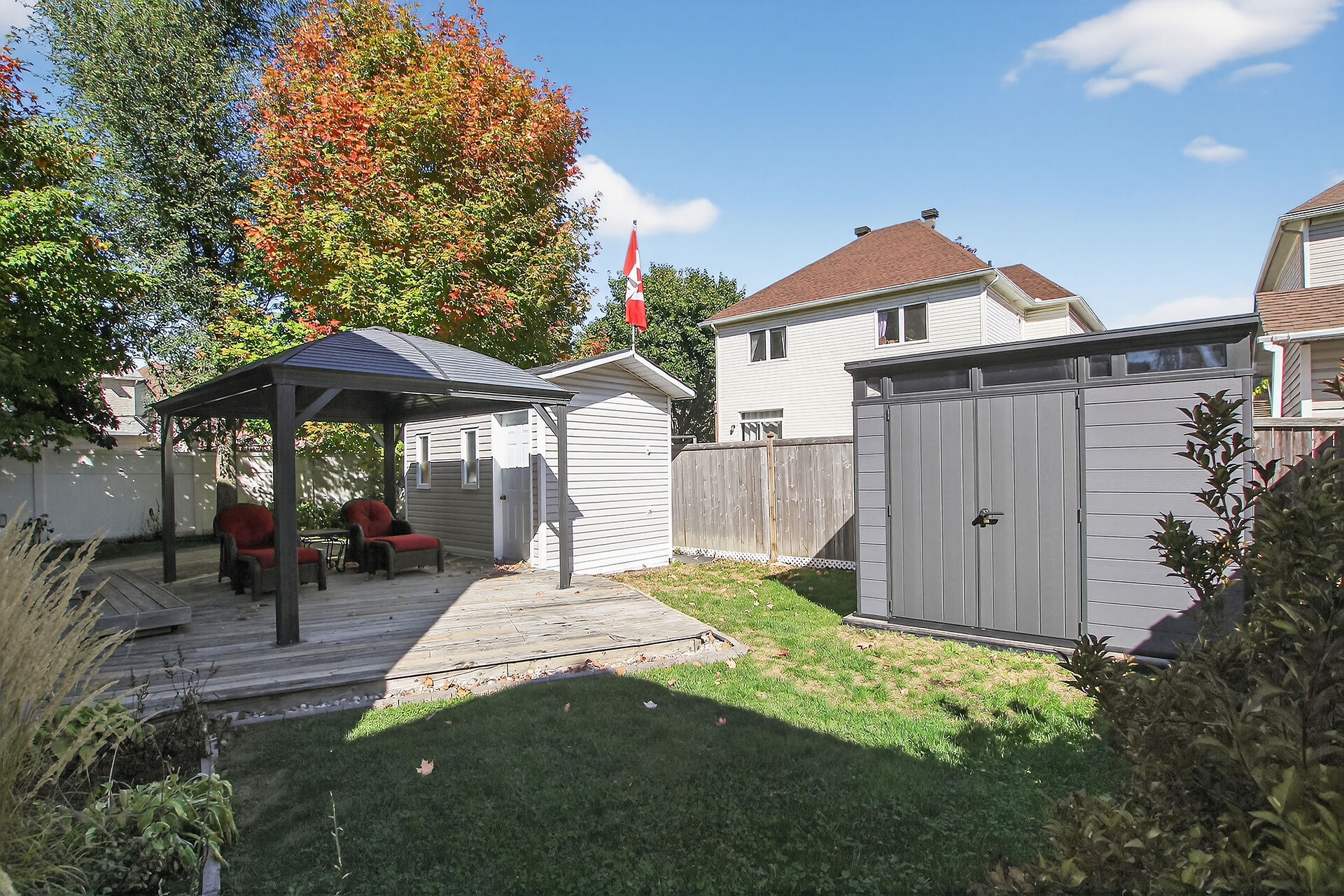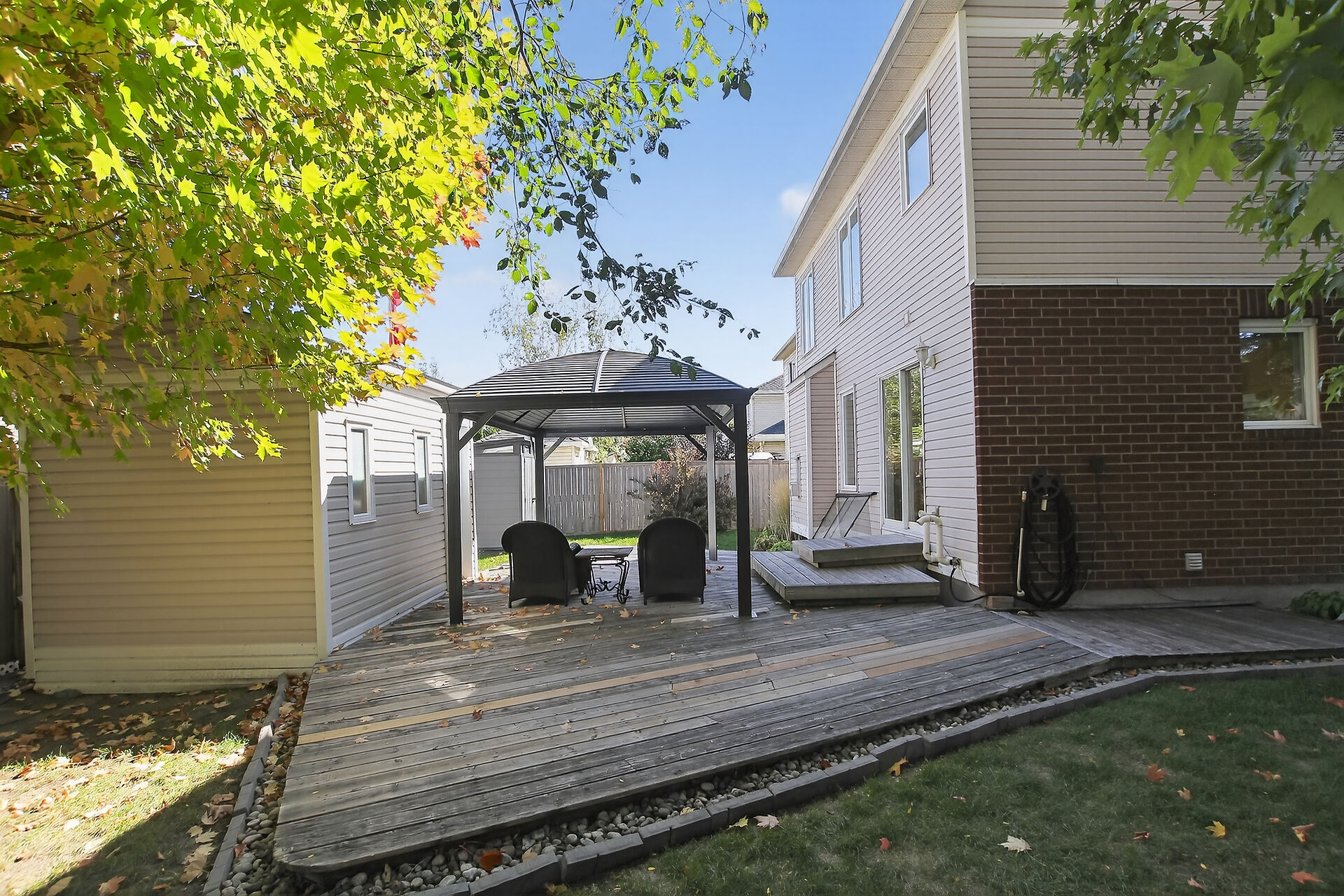 Stop the Car! Welcome to this wonderful, corner-lot single-family home with over 1750 sq. ft. Plenty of room for the whole family, including formal living room, dining room, a family room & eat-in kitchen, powder room all on the main floor with hardwood flooring. Enjoy the natural light in this home with nice oversized windows. Inside entry to the single car garage is a must! Upstairs, note the hardwood flooring continues throughout. A generous primary bedroom features an ensuite & walk in closet. 2 more nice sized bedroom complete this level. The basement is finished with laundry on this level. Outback offers, a fully fenced backyard with a large deck, lovely gazebo, BBQ hook up, 3 sheds for all your yard supplies