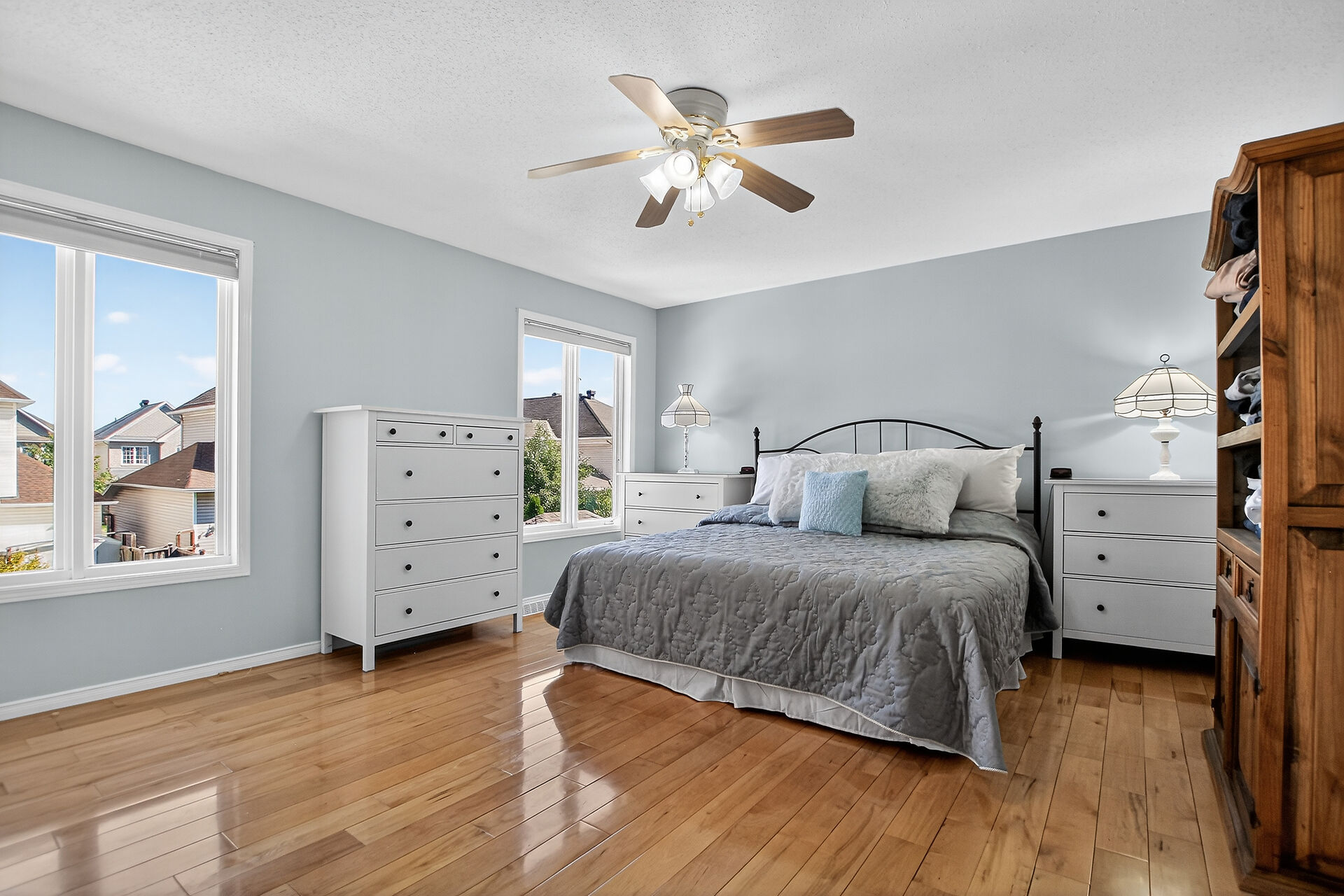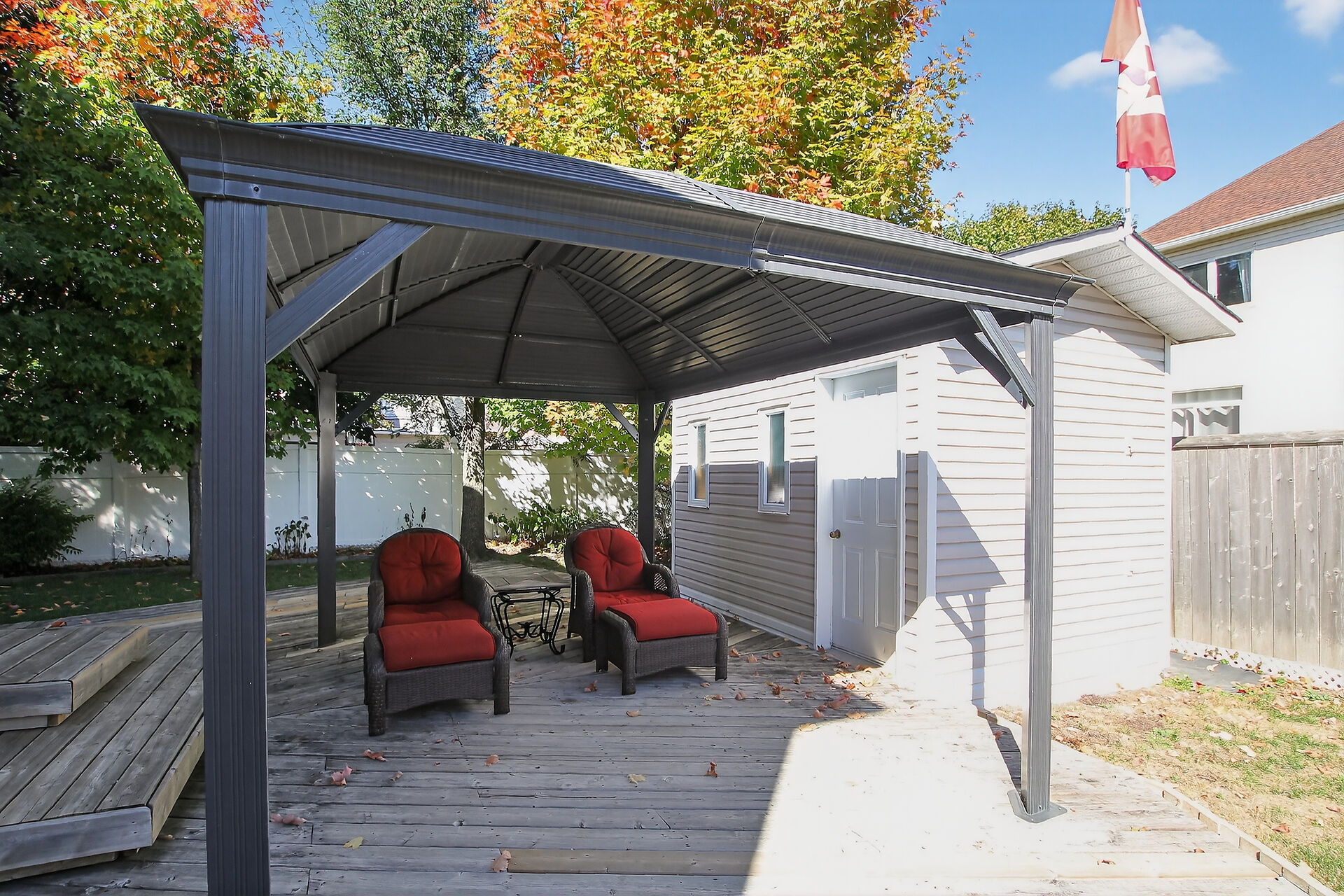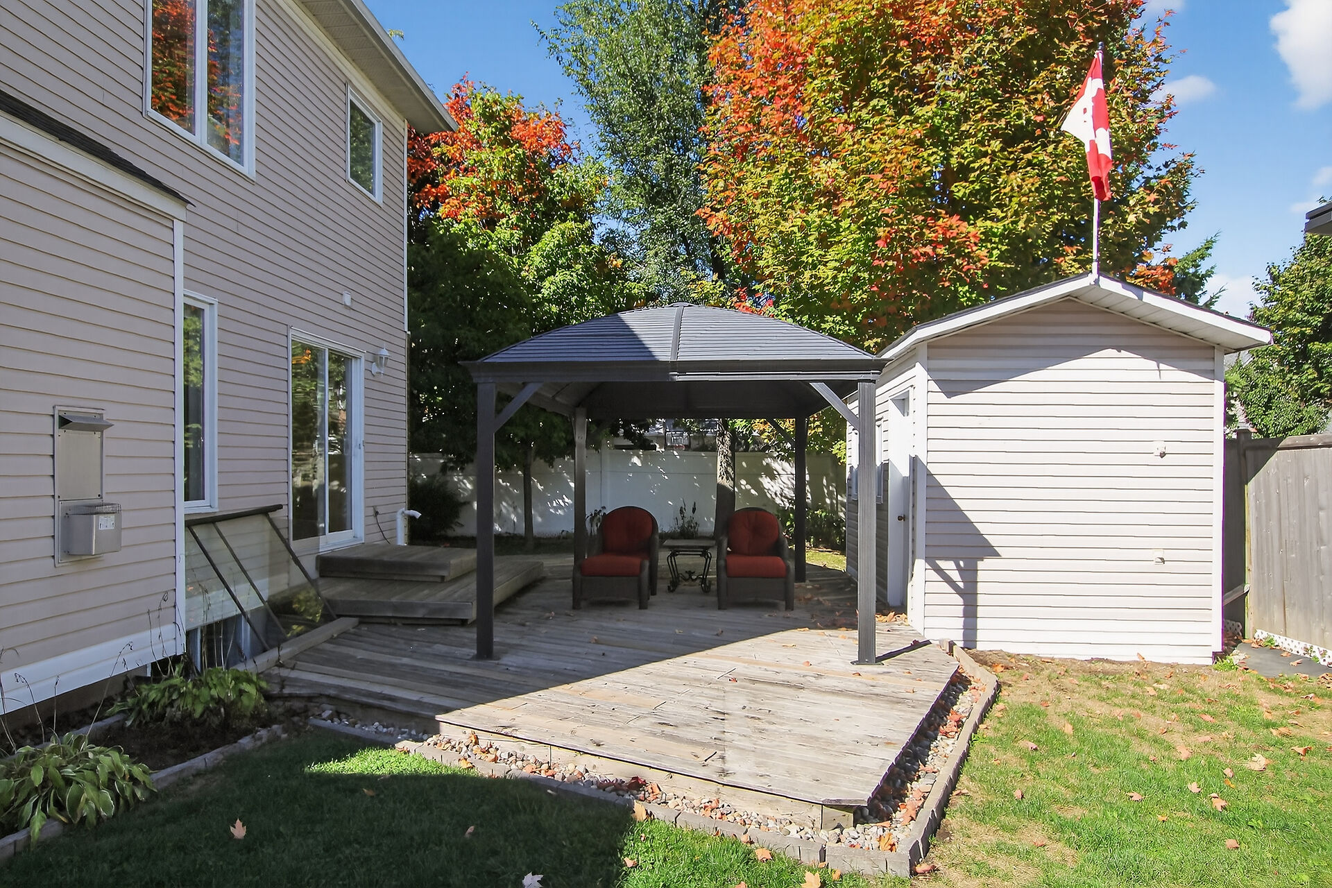 Stop the Car! Welcome to this wonderful, corner-lot single-family home with over 1750 sq. ft. Plenty of room for the whole family, including formal living room, dining room, a family room & eat-in kitchen, powder room all on the main floor with hardwood flooring. Enjoy the natural light in this home with nice oversized windows. Inside entry to the single car garage is a must! Upstairs, note the hardwood flooring continues throughout. A generous primary bedroom features an ensuite & walk in closet. 2 more nice sized bedroom complete this level. The basement is finished with laundry on this level. Outback offers, a fully fenced backyard with a large deck, lovely gazebo, BBQ hook up, 3 sheds for all your yard supplies