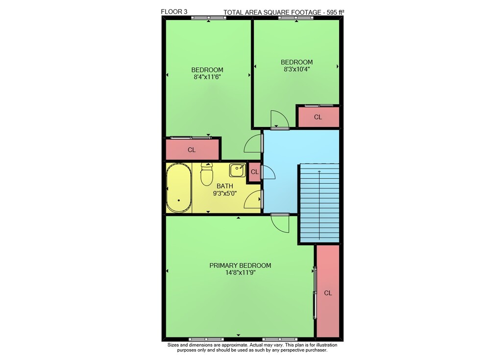Floor 2: 578 sq ft, Floor 3: 595 sq ft,